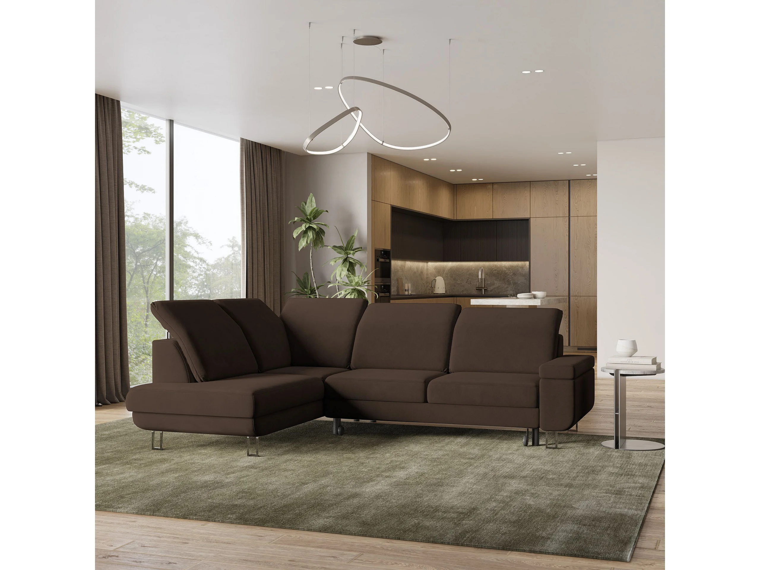 Hoekbank LERMA van fluweel met slaapfunctie Braun