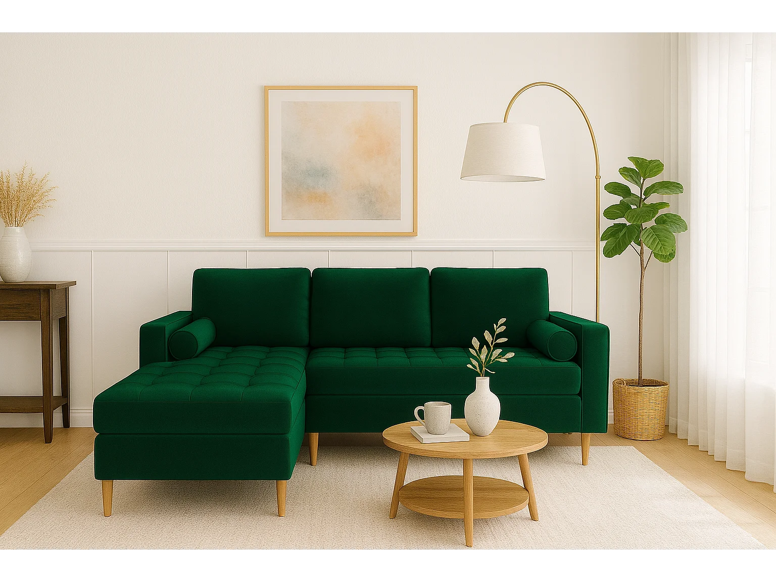 Hoekbank links MONZA met slaapfunctie 246x172 cm – flessengroen Monolith 37