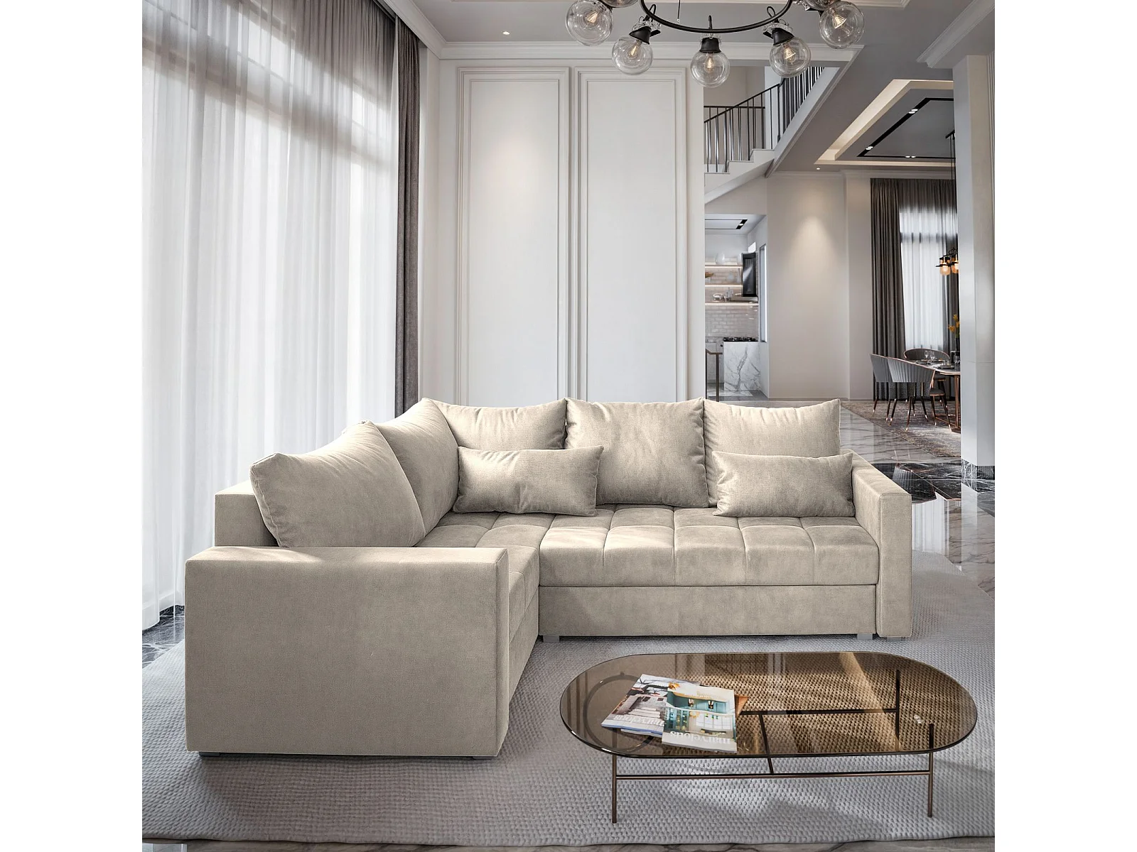Hoekbank LIRENO van fluweel met slaapfunctie Beige