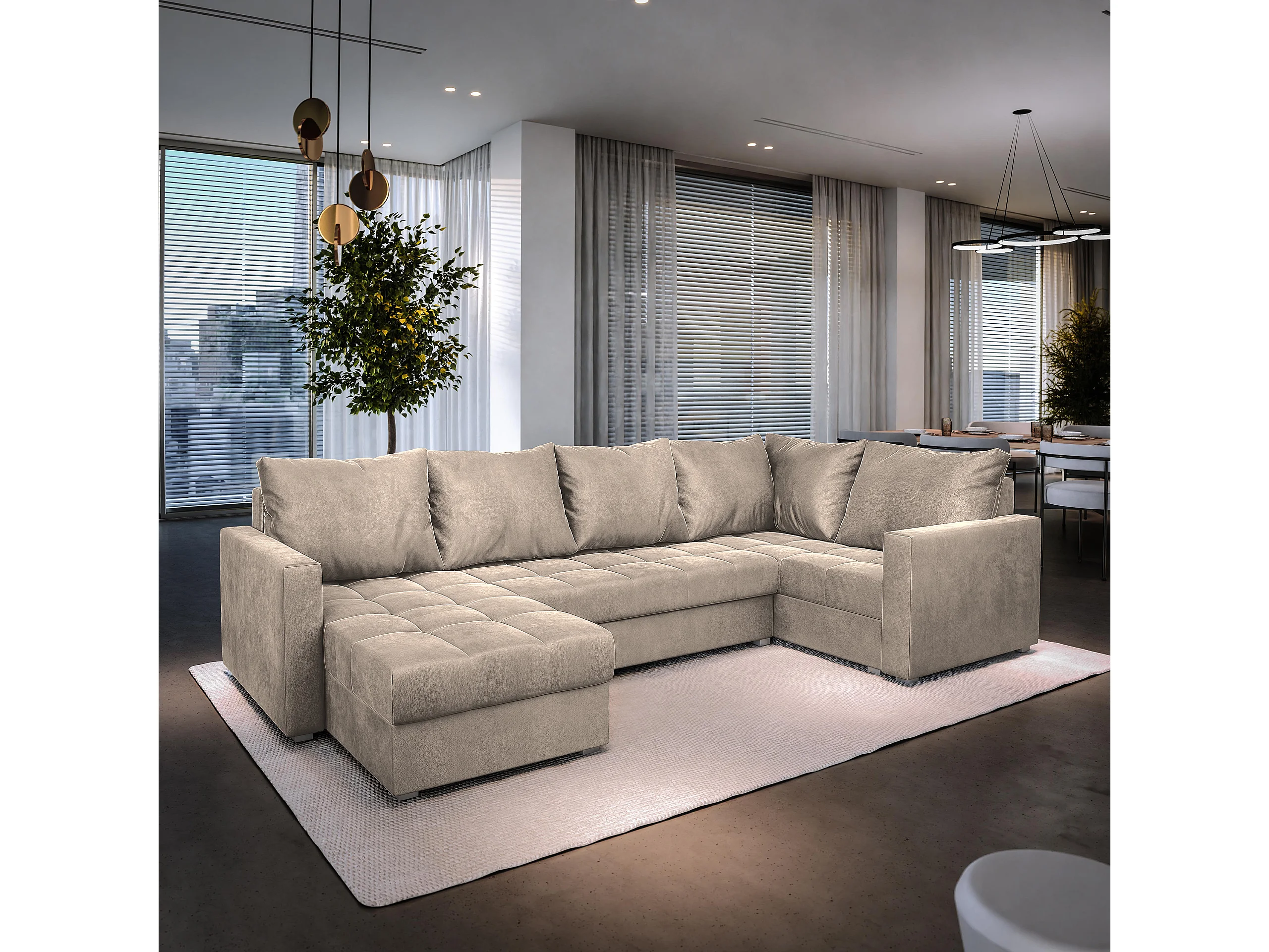 Hoekbank LORIVO van fluweel met slaapfunctie Beige