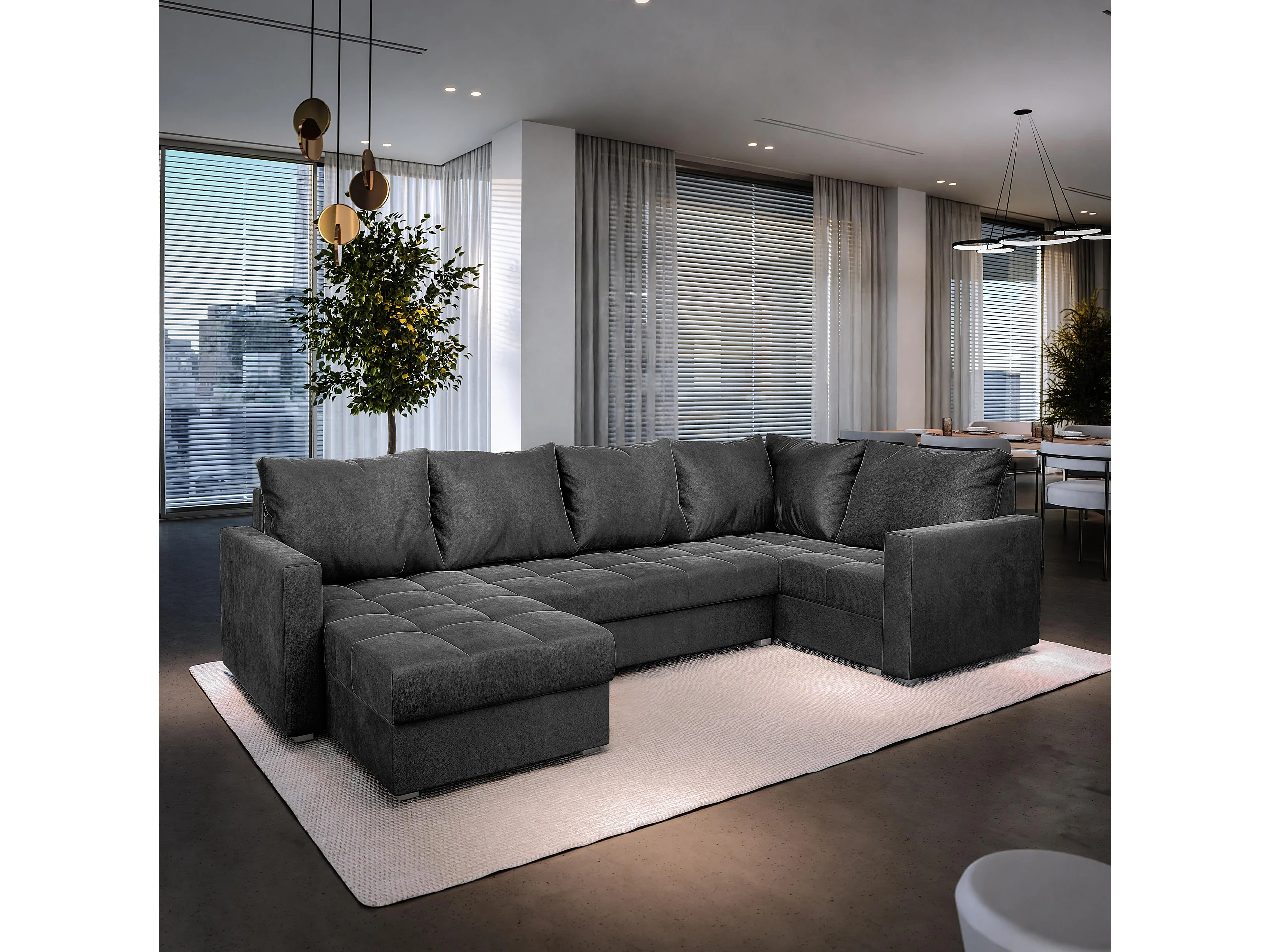 Hoekbank LORIVO van fluweel met slaapfunctie Grau
