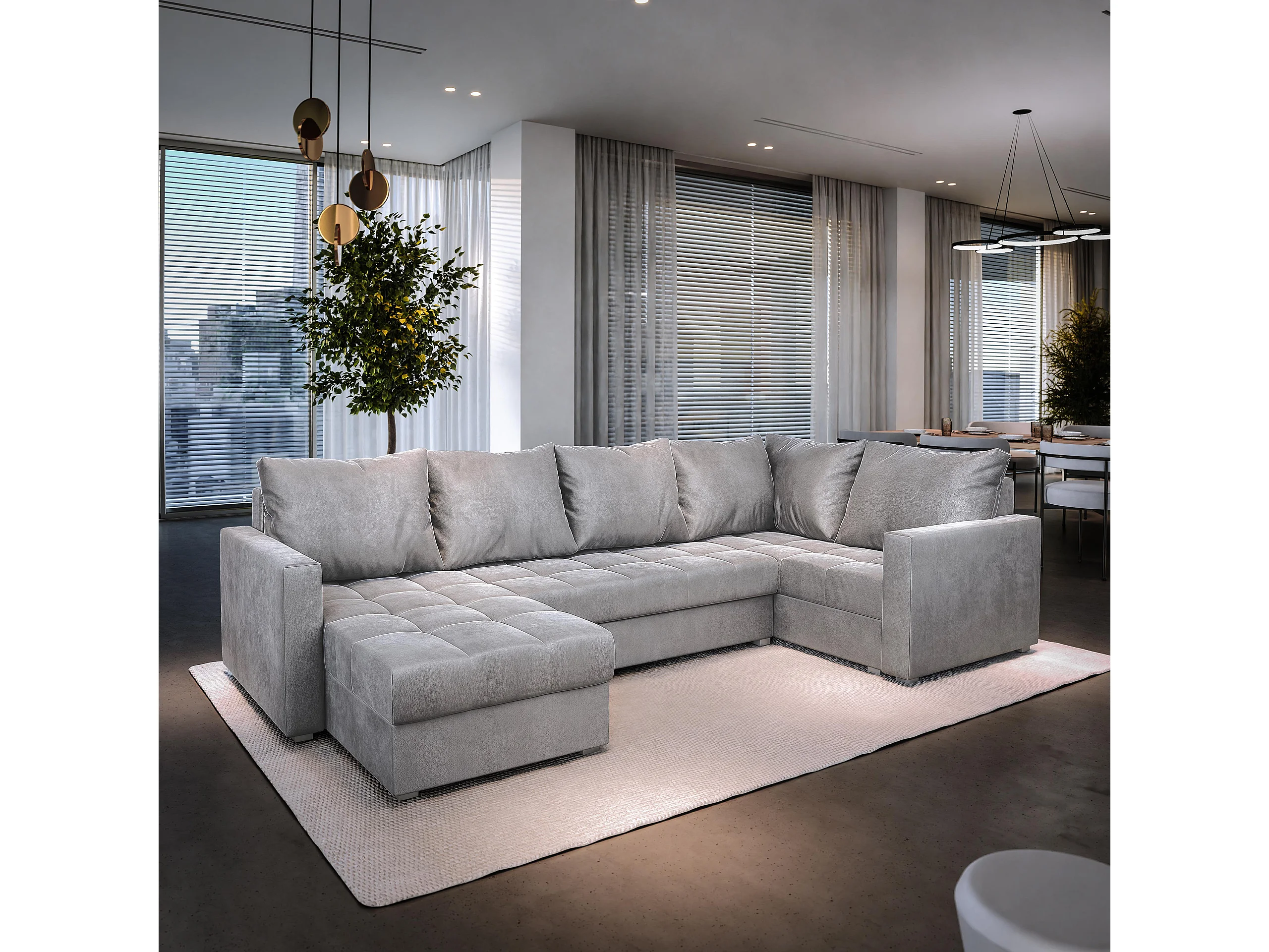 Hoekbank LORIVO van fluweel met slaapfunctie Hellgrau