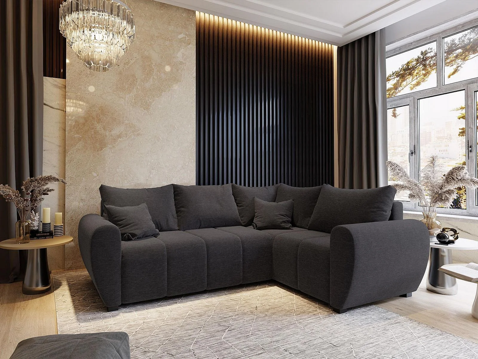 Hoekbank MADISON van fluweel met slaapfunctie Grau