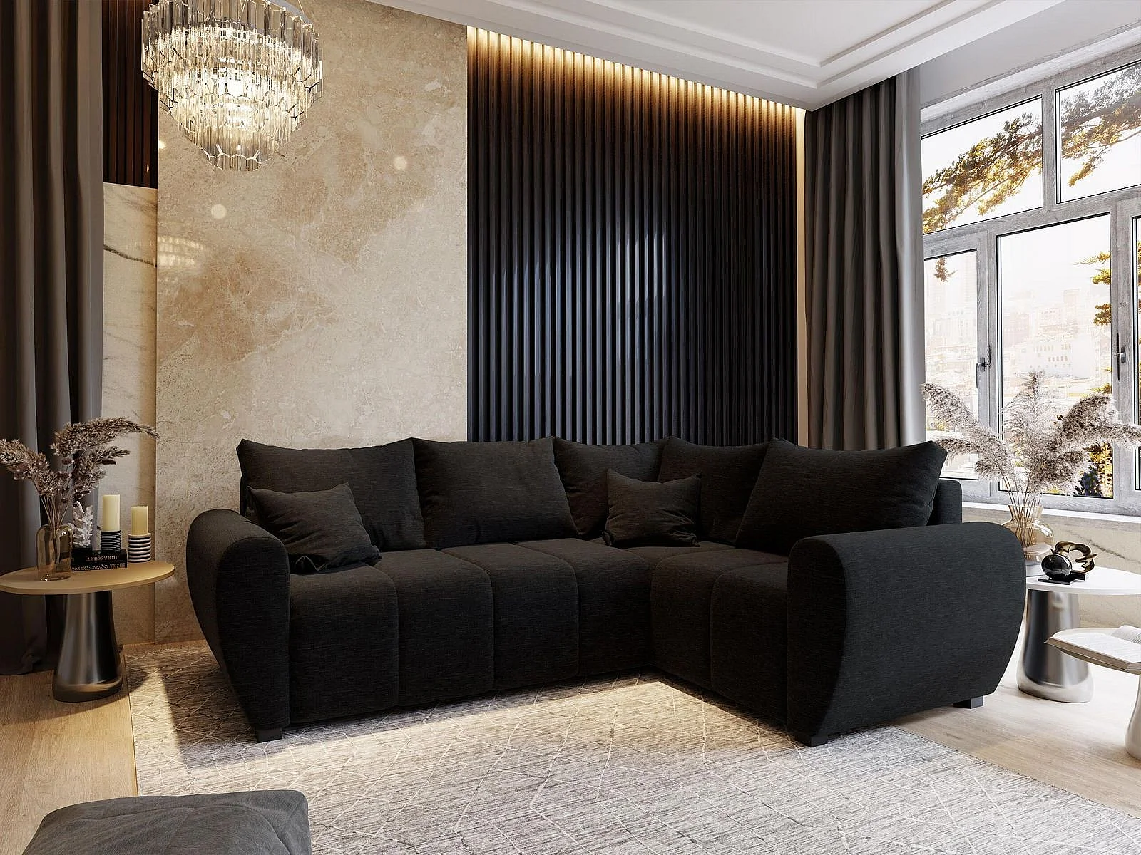 Hoekbank MADISON van fluweel met slaapfunctie Schwarz