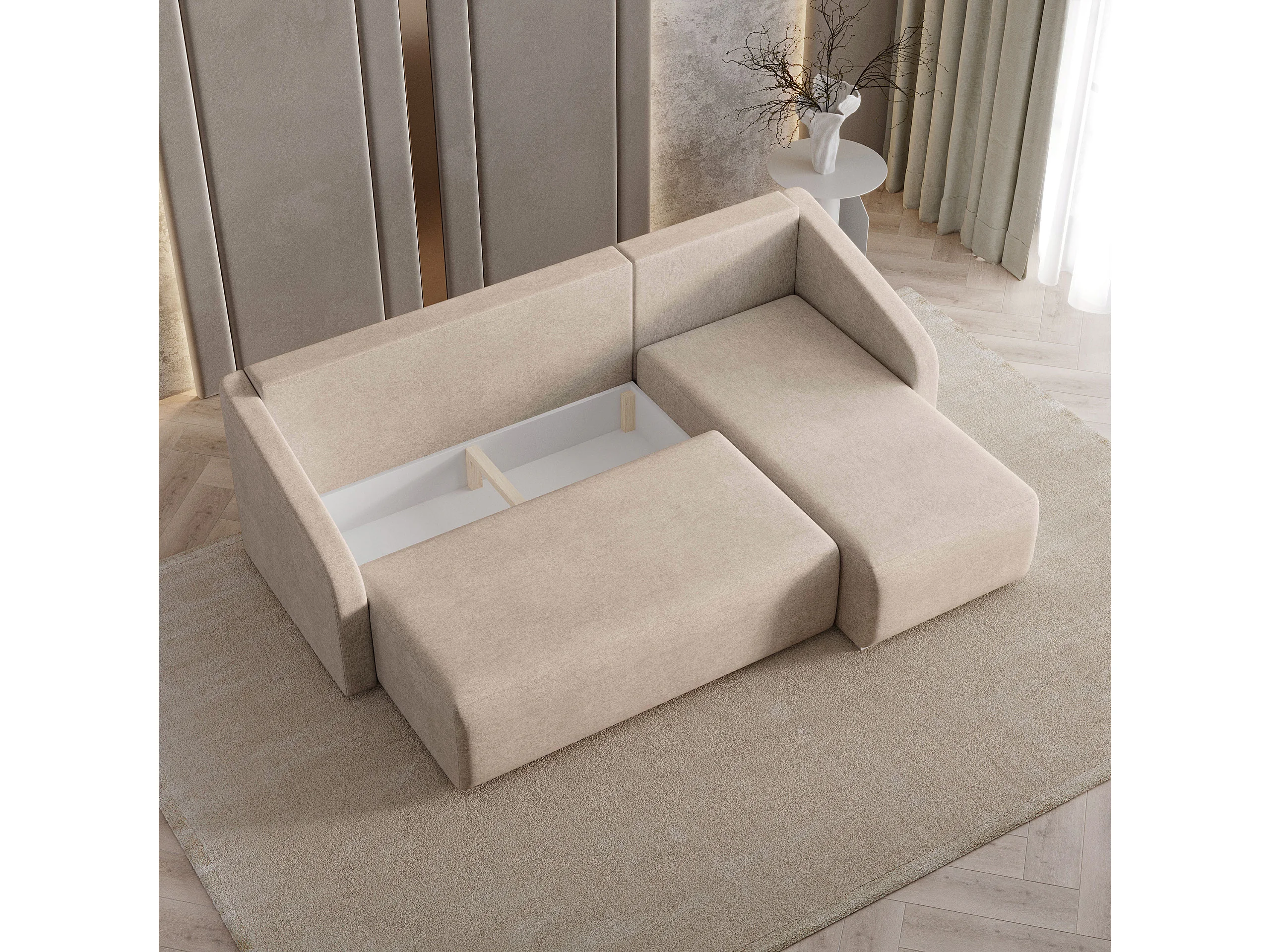 Hoekbank MARELLO van fluweel met slaapfunctie Beige