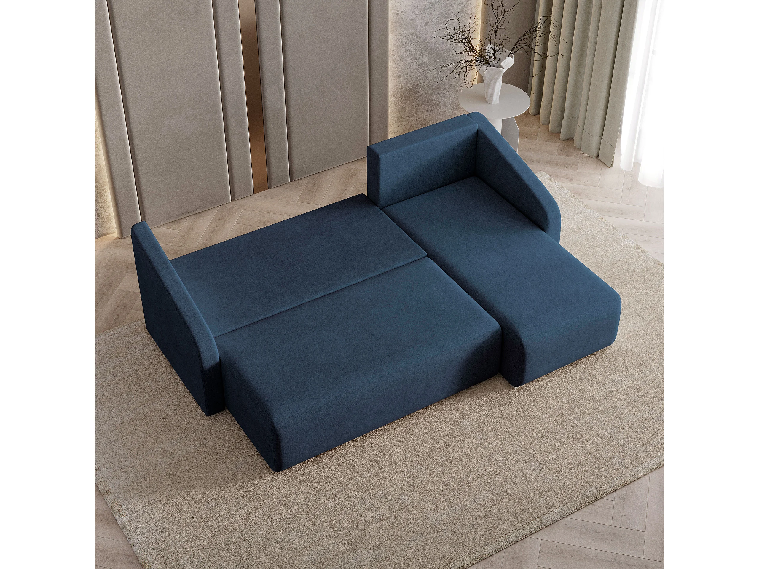Hoekbank MARELLO van fluweel met slaapfunctie Blau
