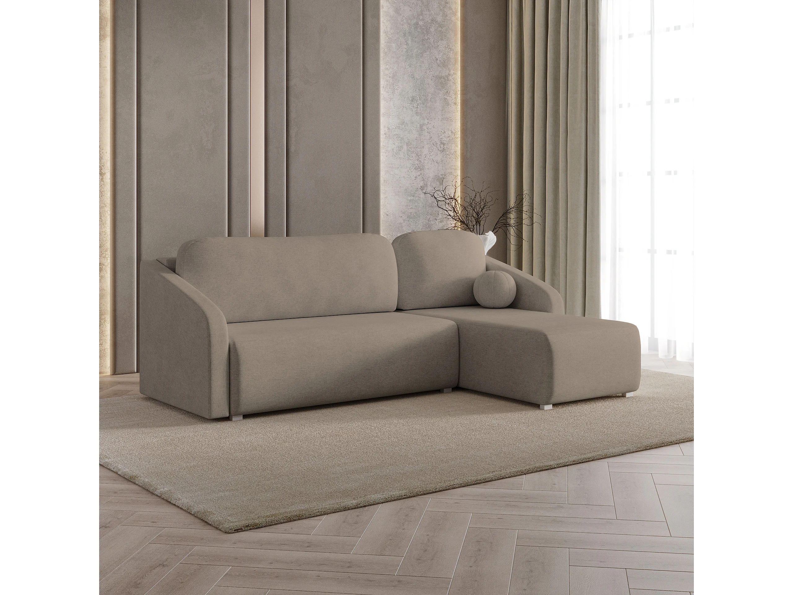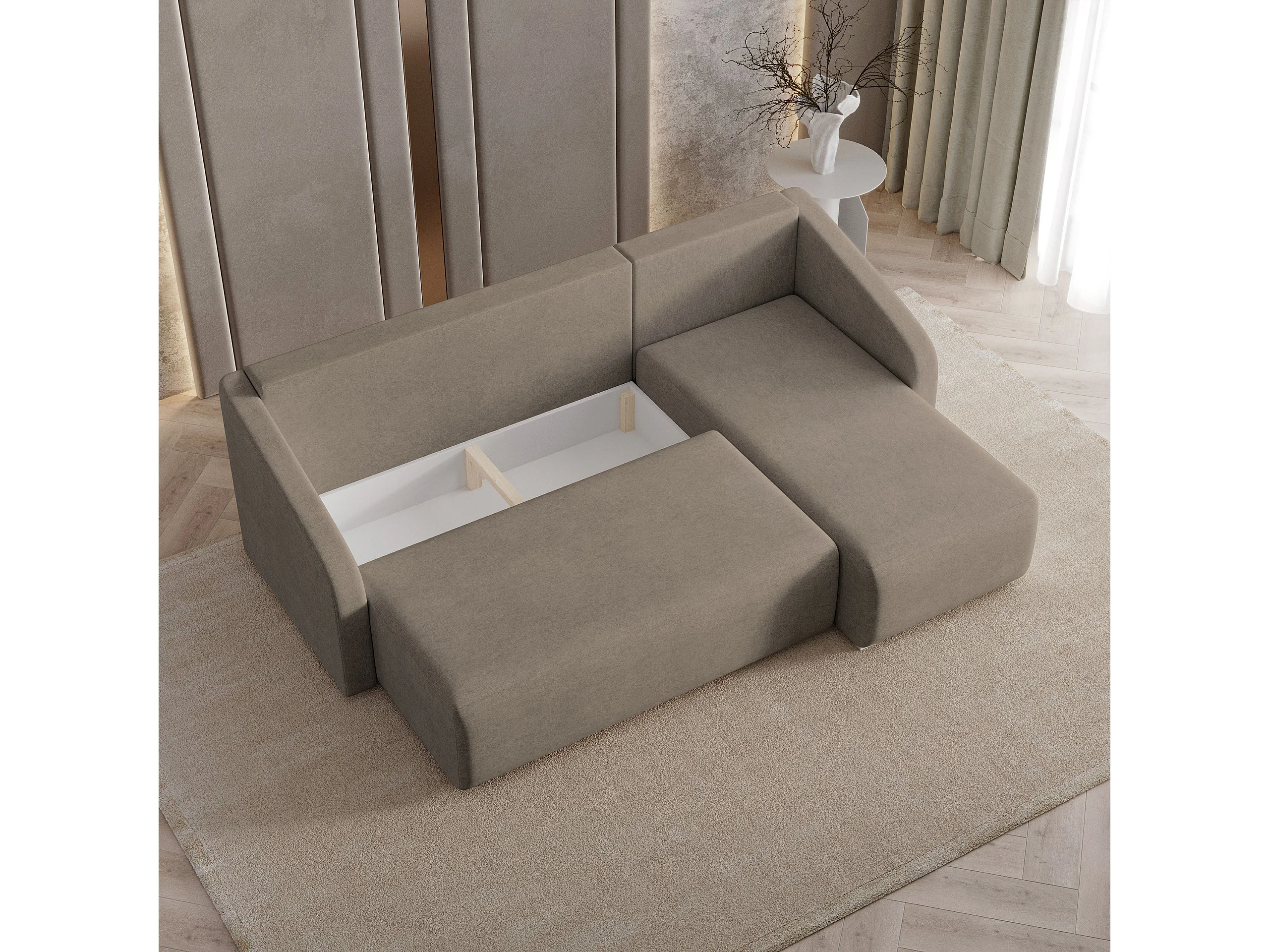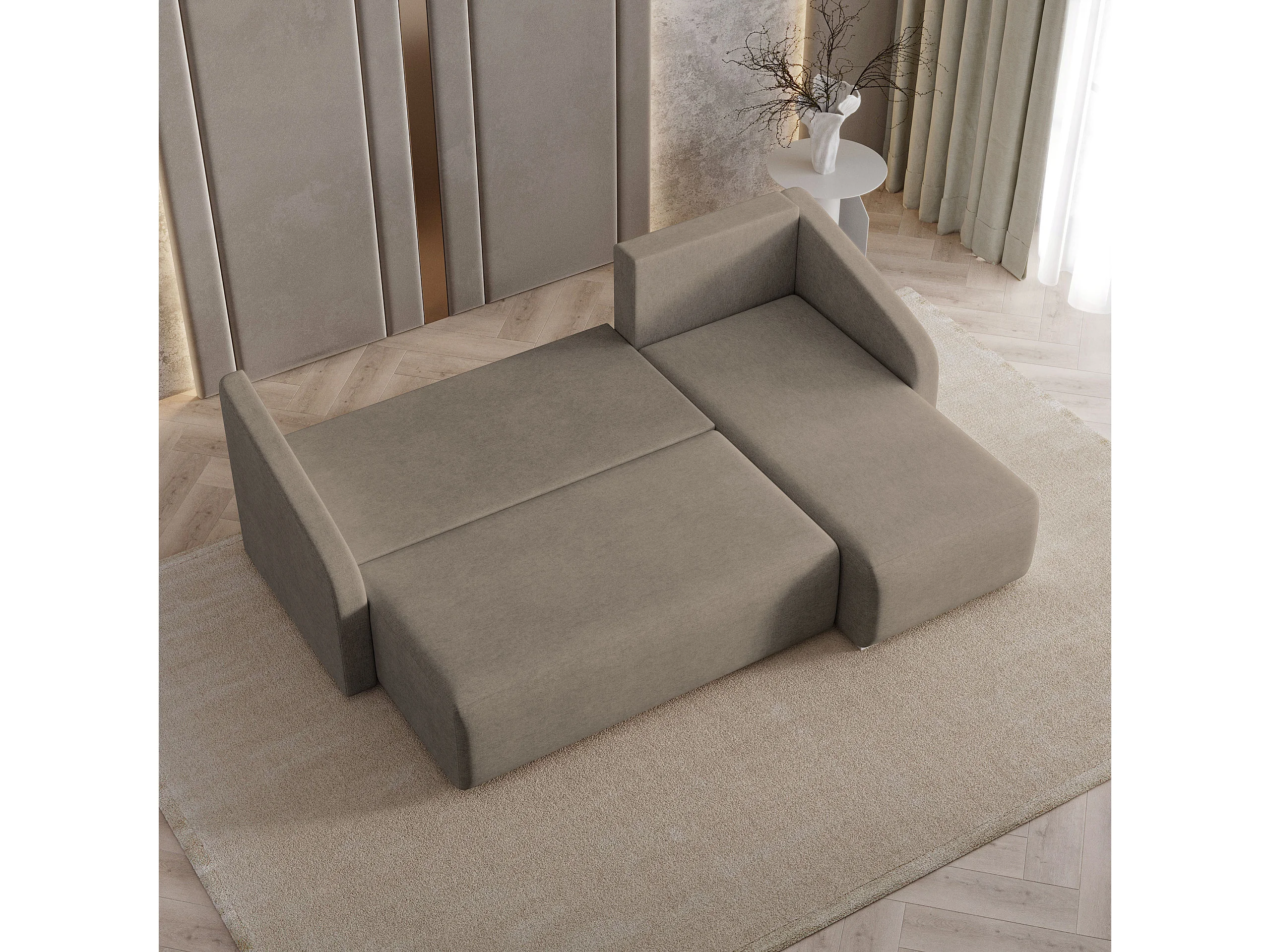 Hoekbank MARELLO van fluweel met slaapfunctie Braun