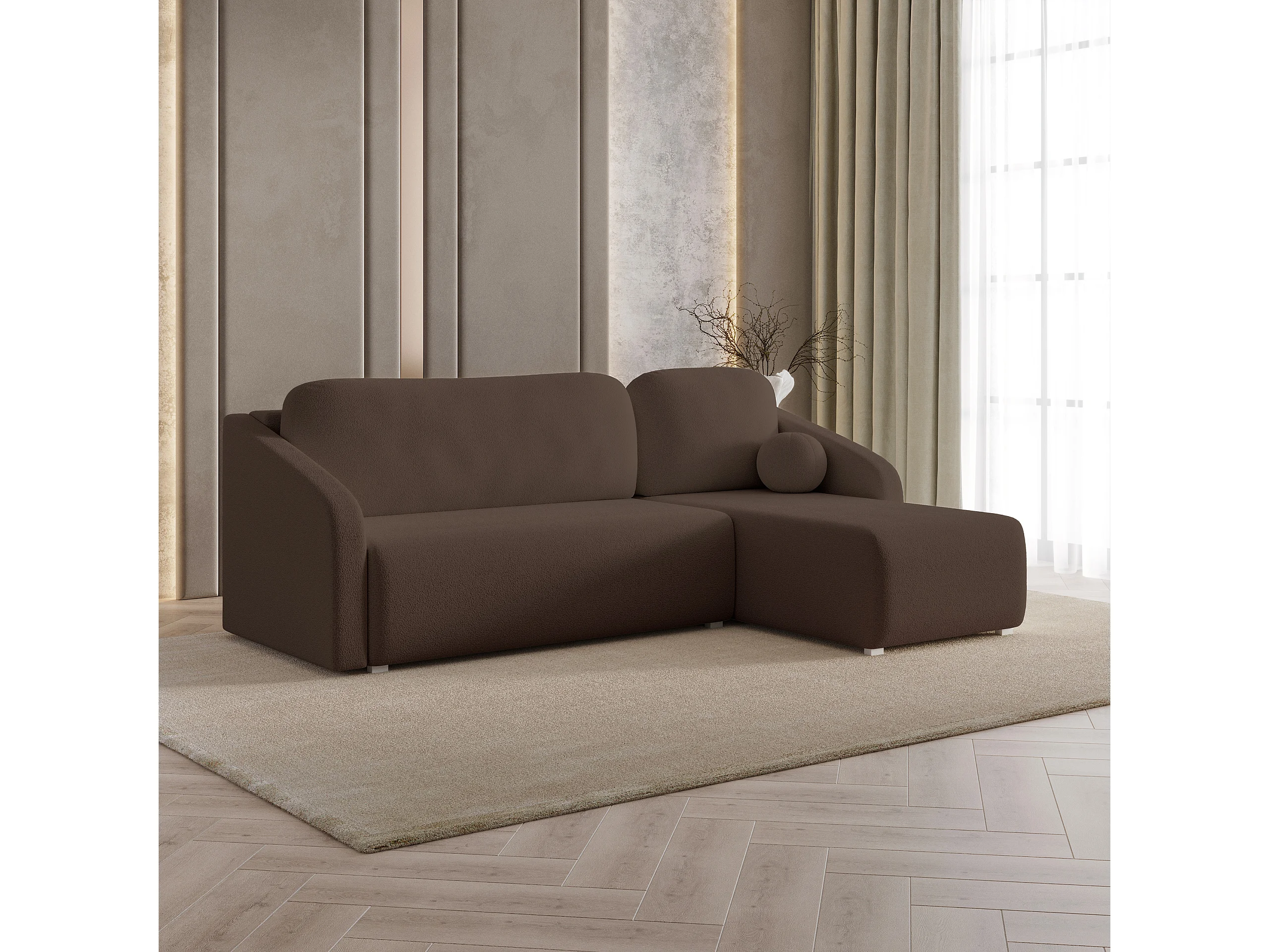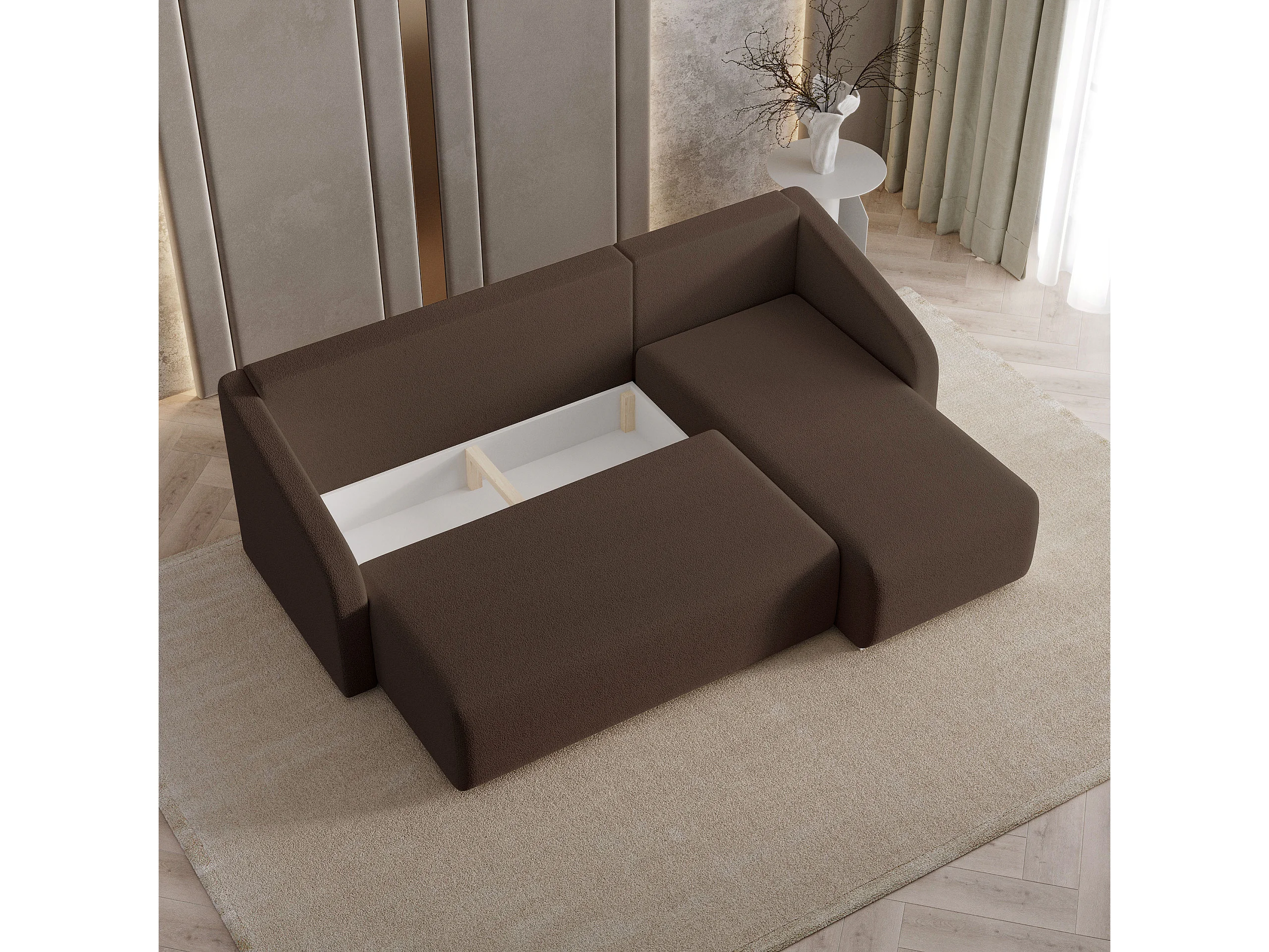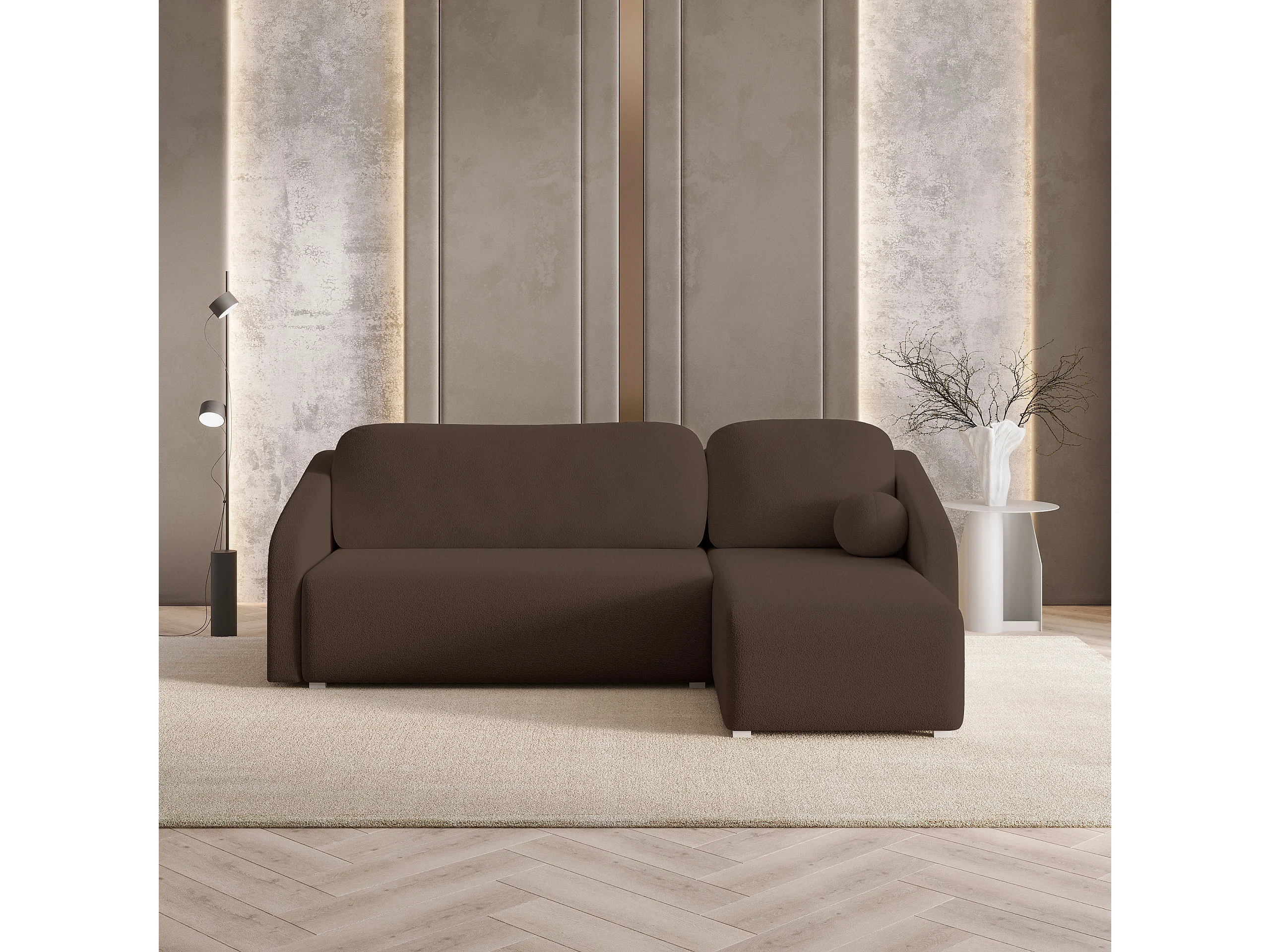 Hoekbank MARELLO van fluweel met slaapfunctie Braun