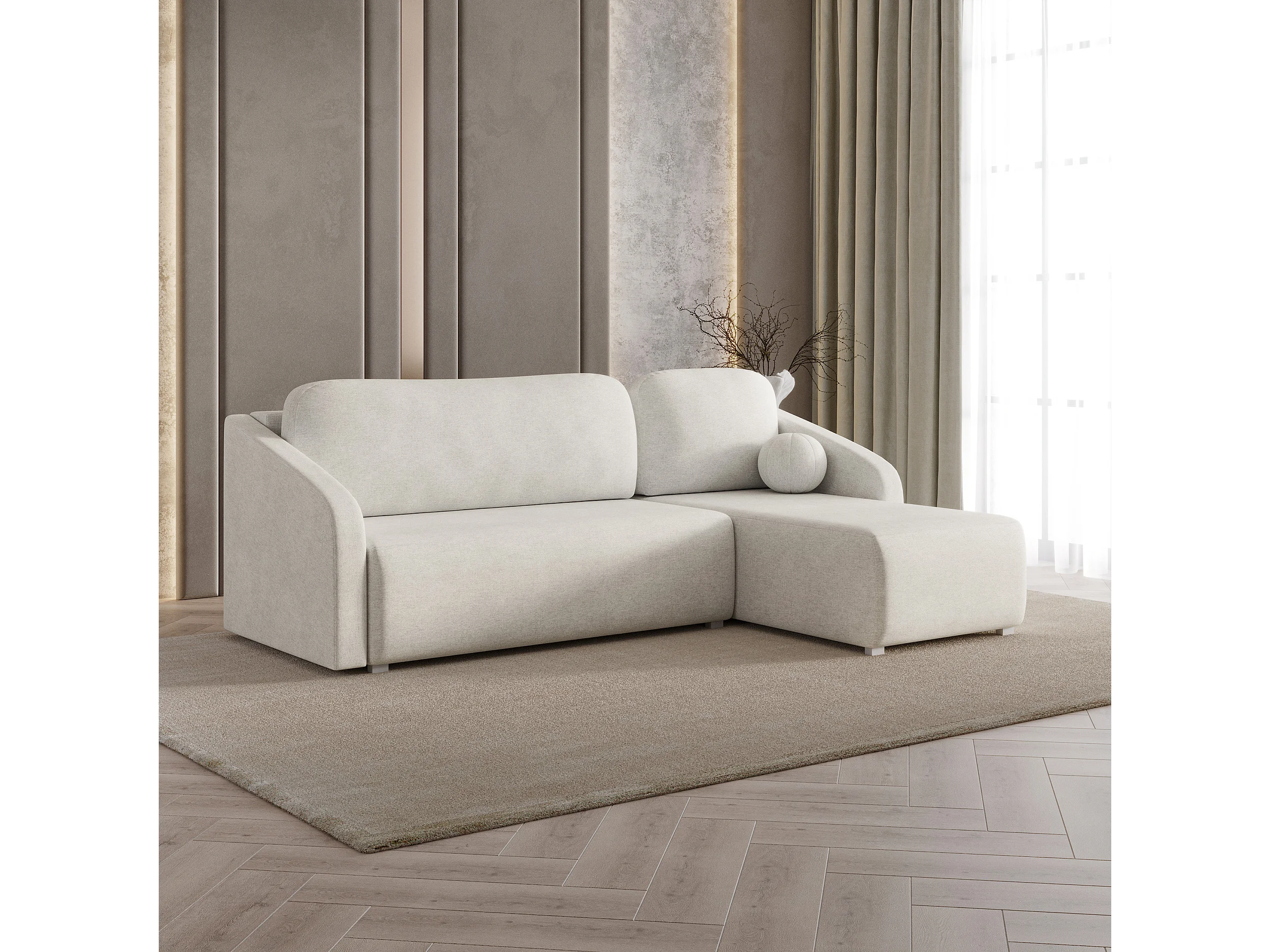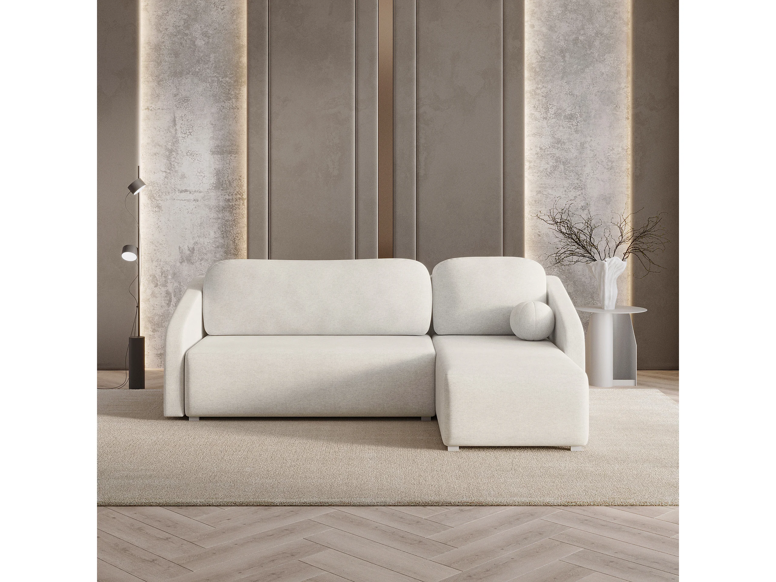 Hoekbank MARELLO van fluweel met slaapfunctie Creme