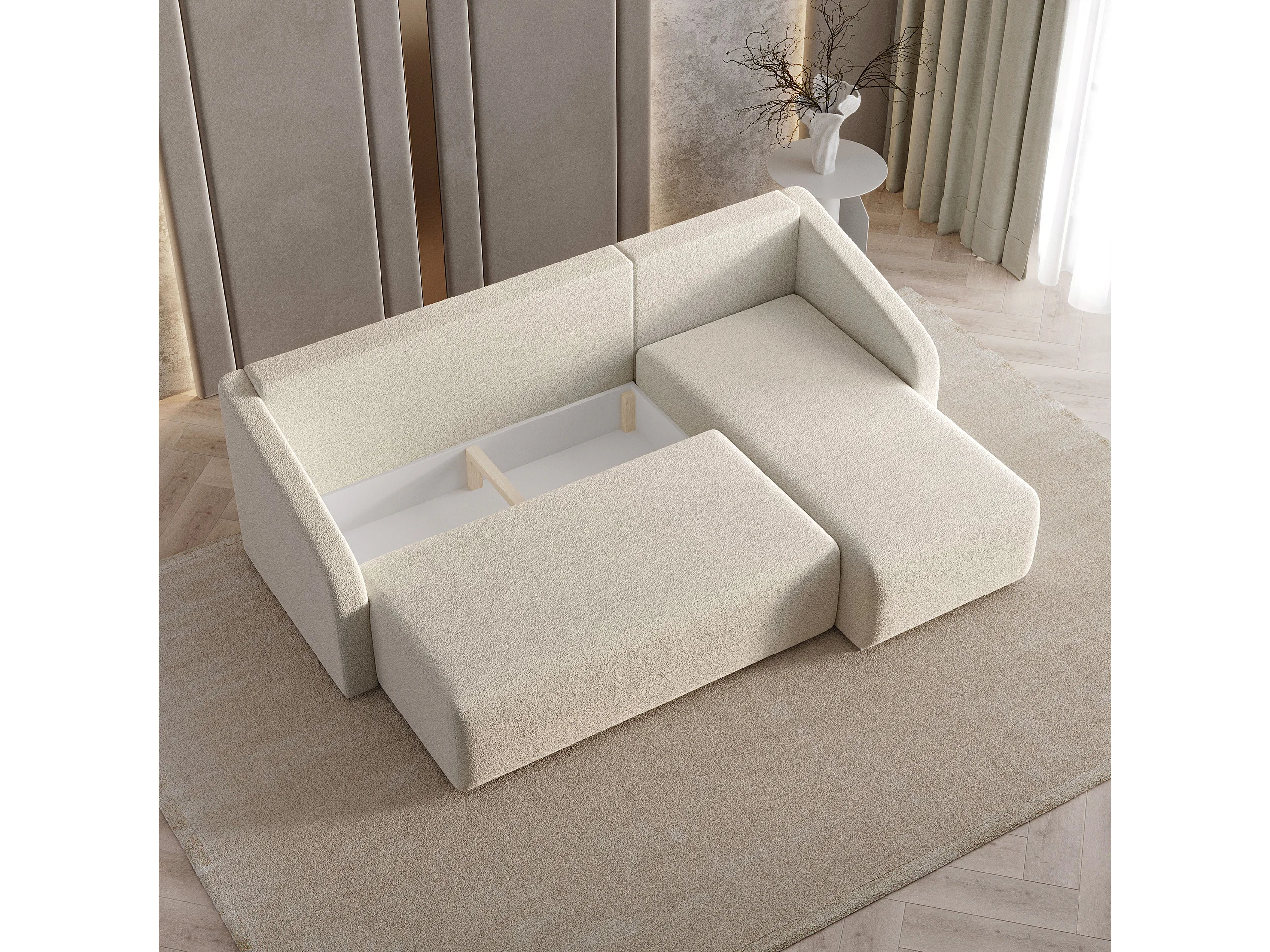 Hoekbank MARELLO van fluweel met slaapfunctie Creme