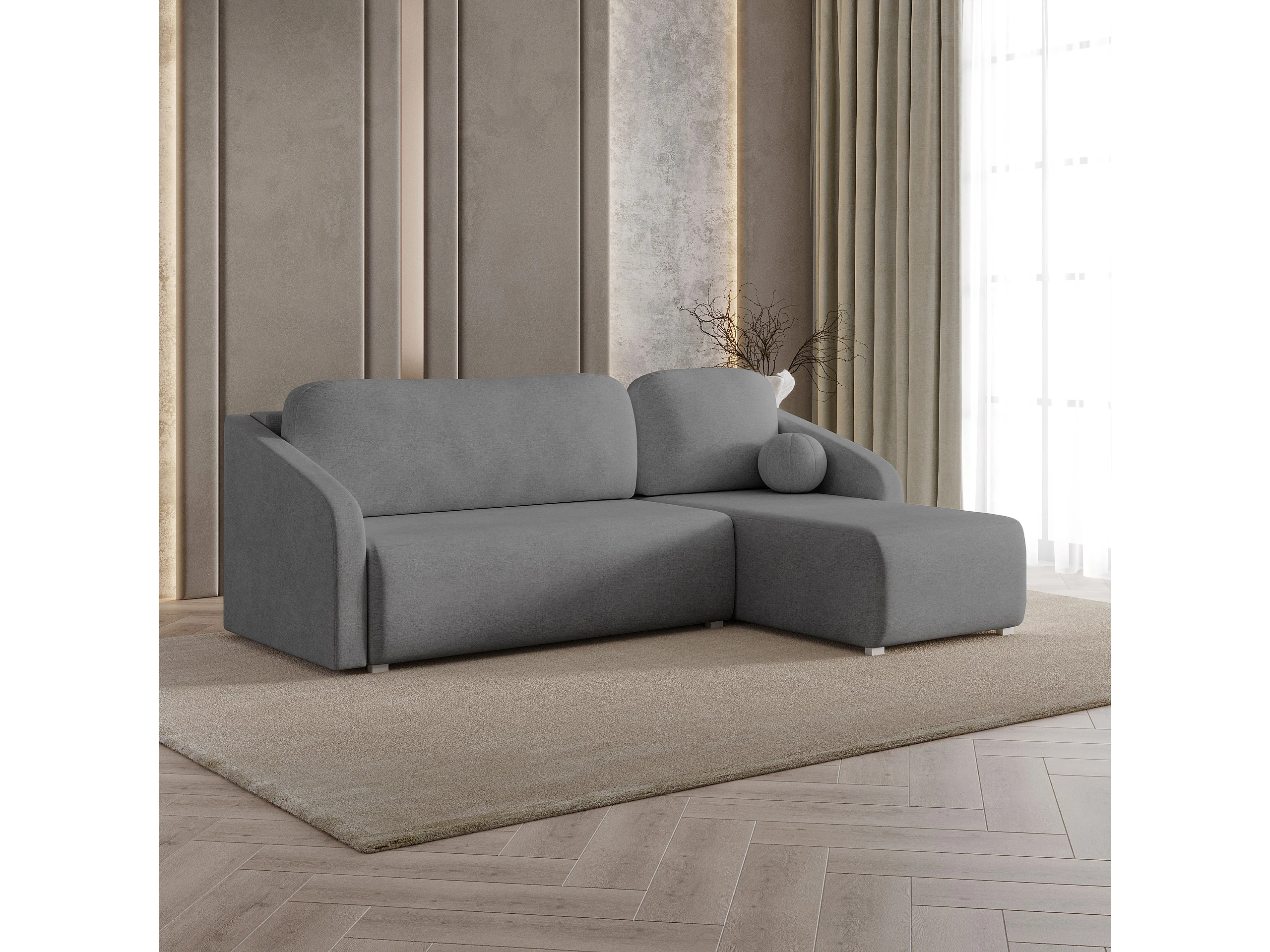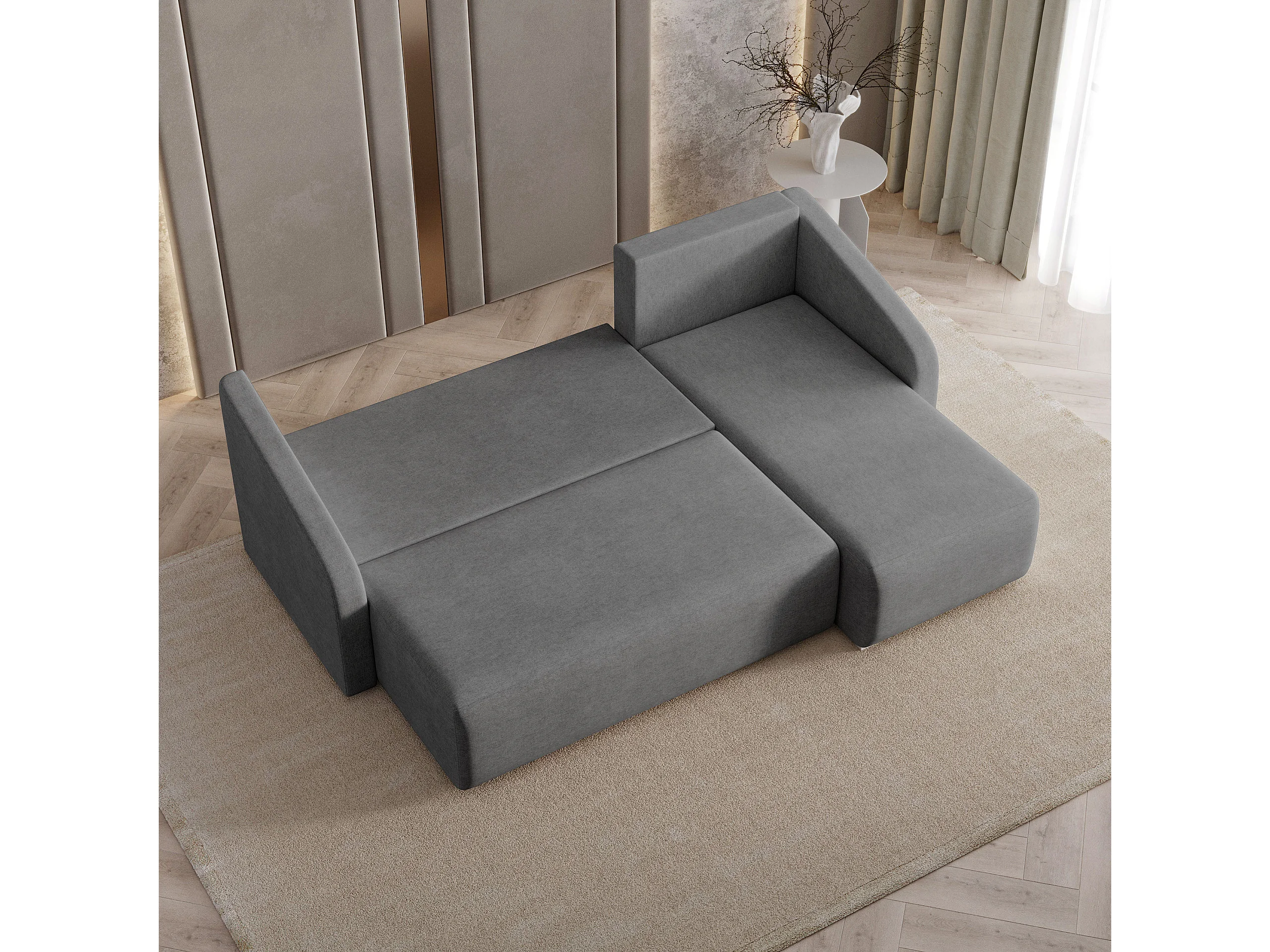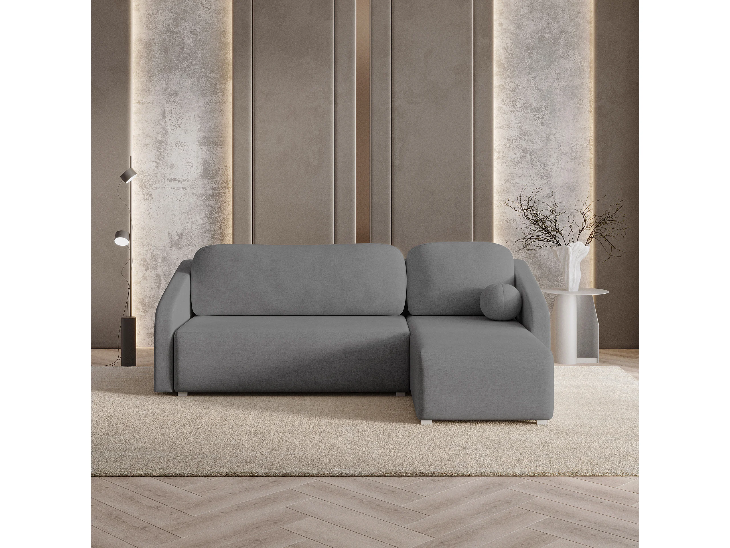 Hoekbank MARELLO van fluweel met slaapfunctie Grau