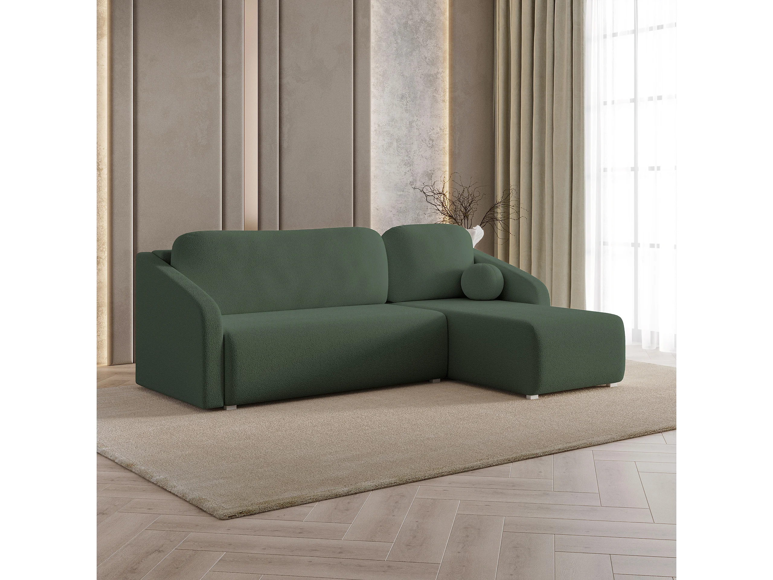 Hoekbank MARELLO van fluweel met slaapfunctie Grün