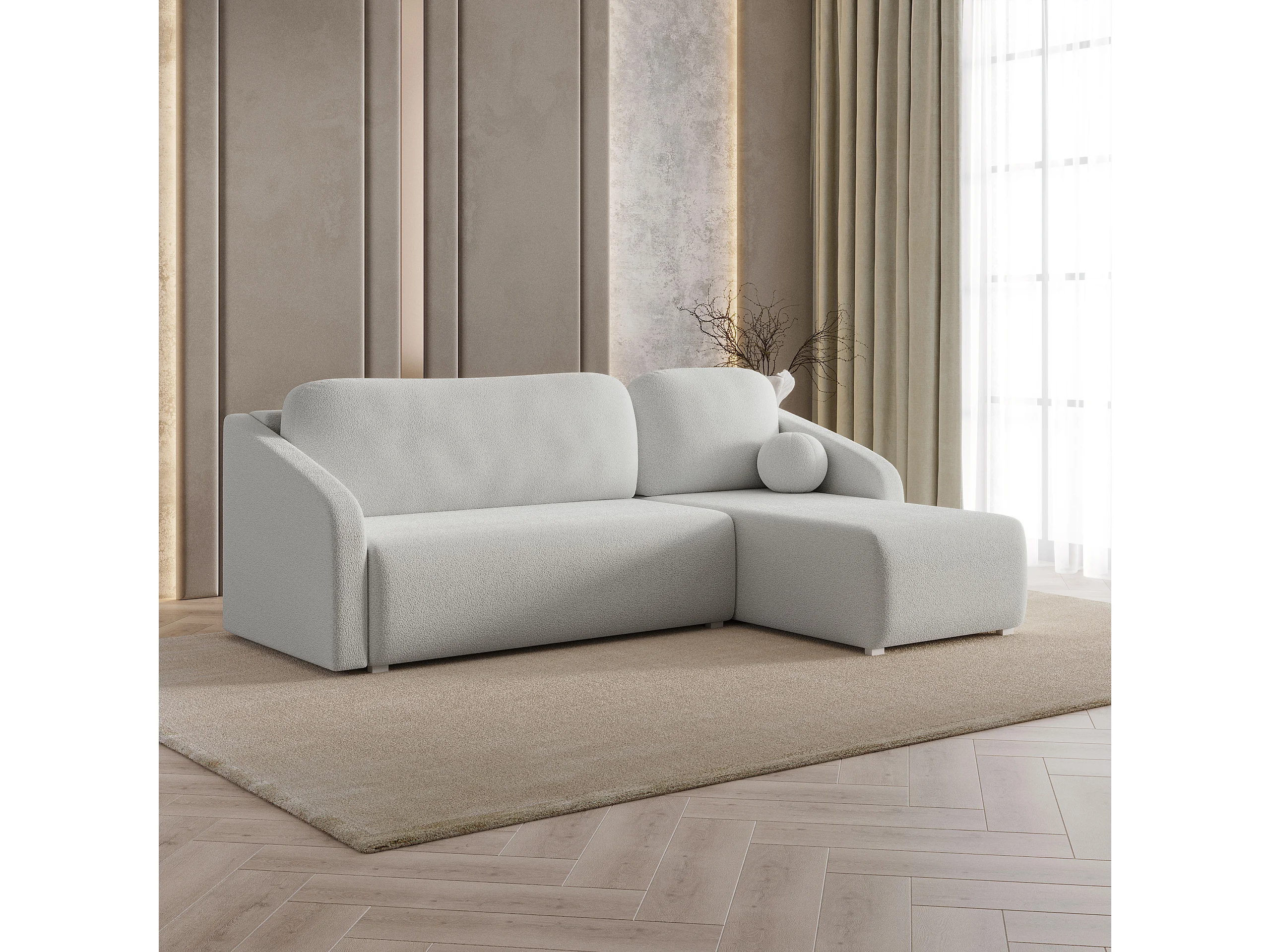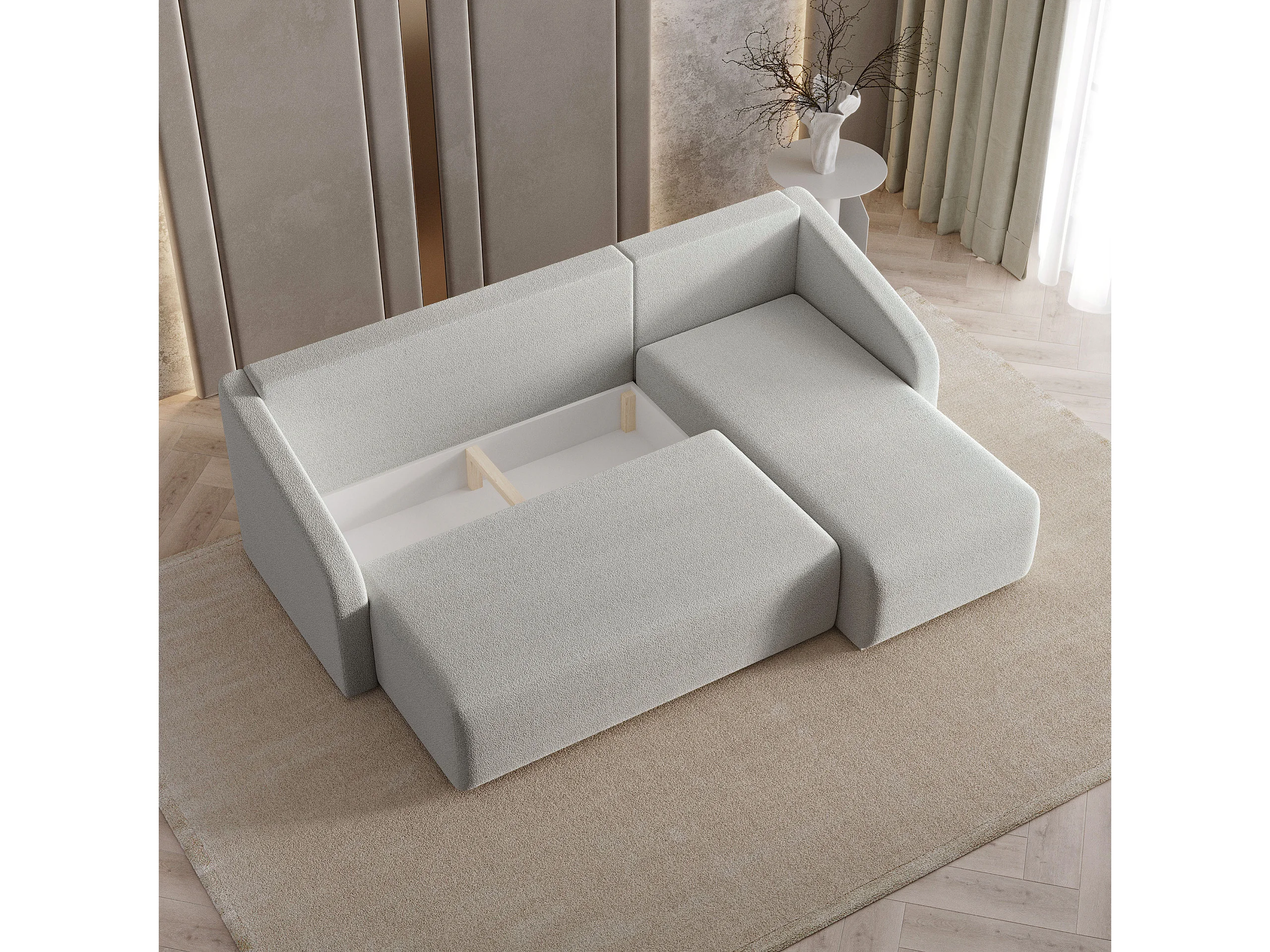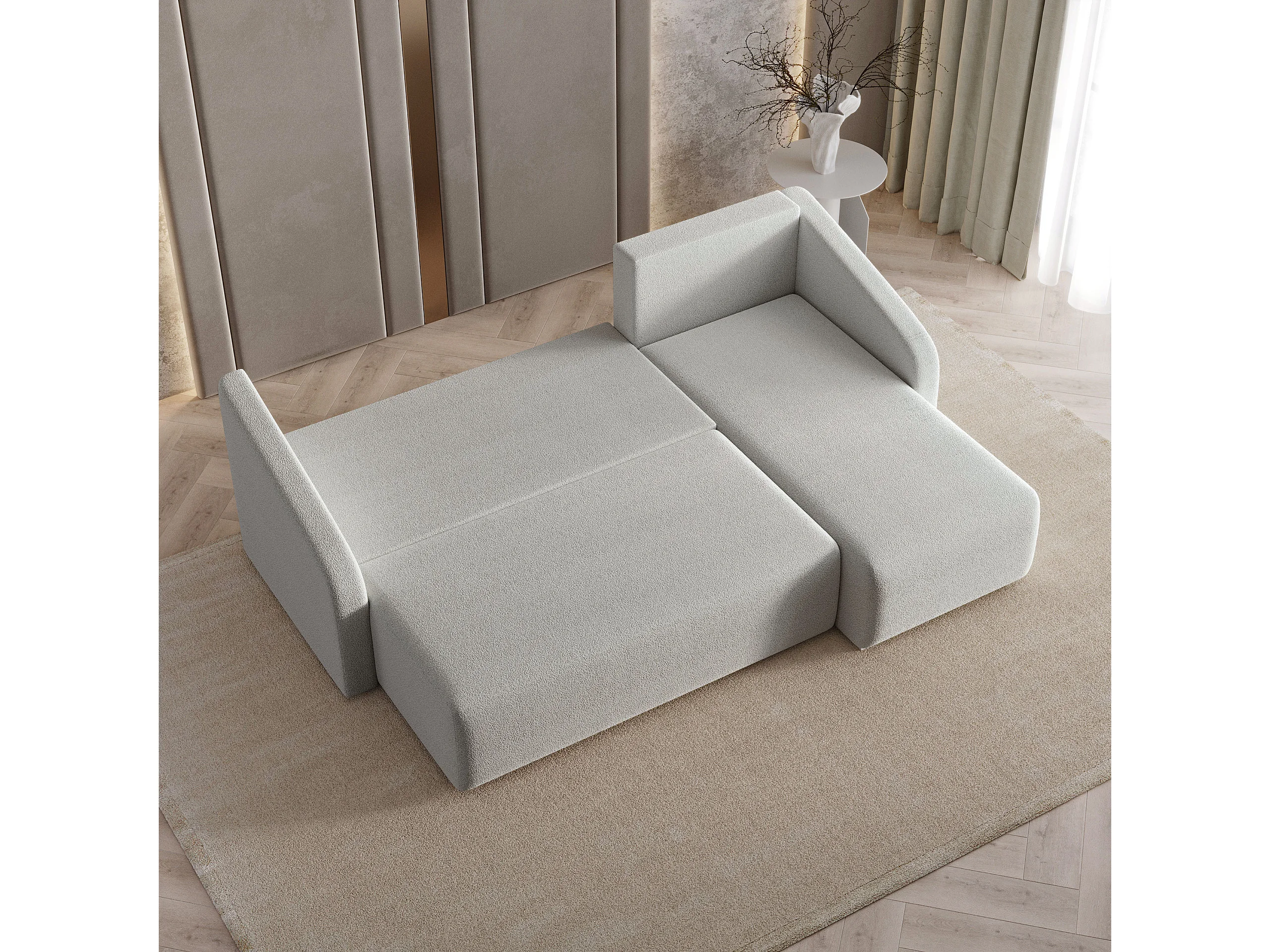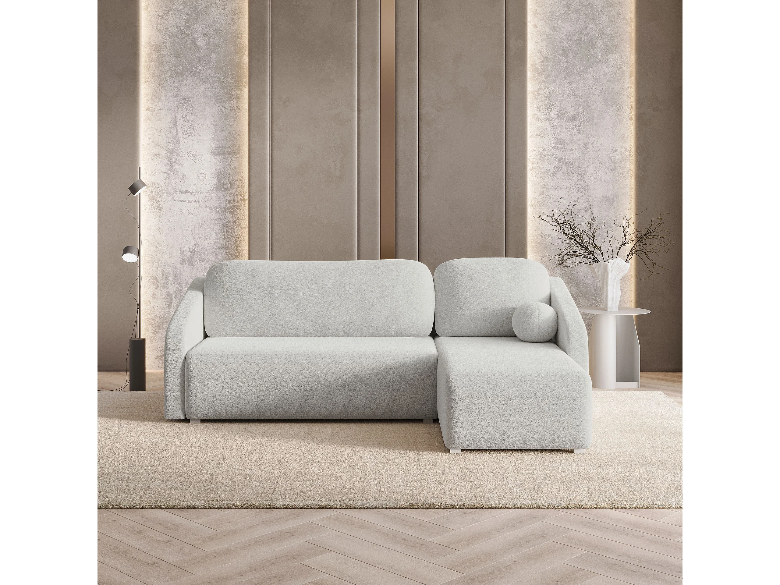 Hoekbank MARELLO van fluweel met slaapfunctie Hellgrau