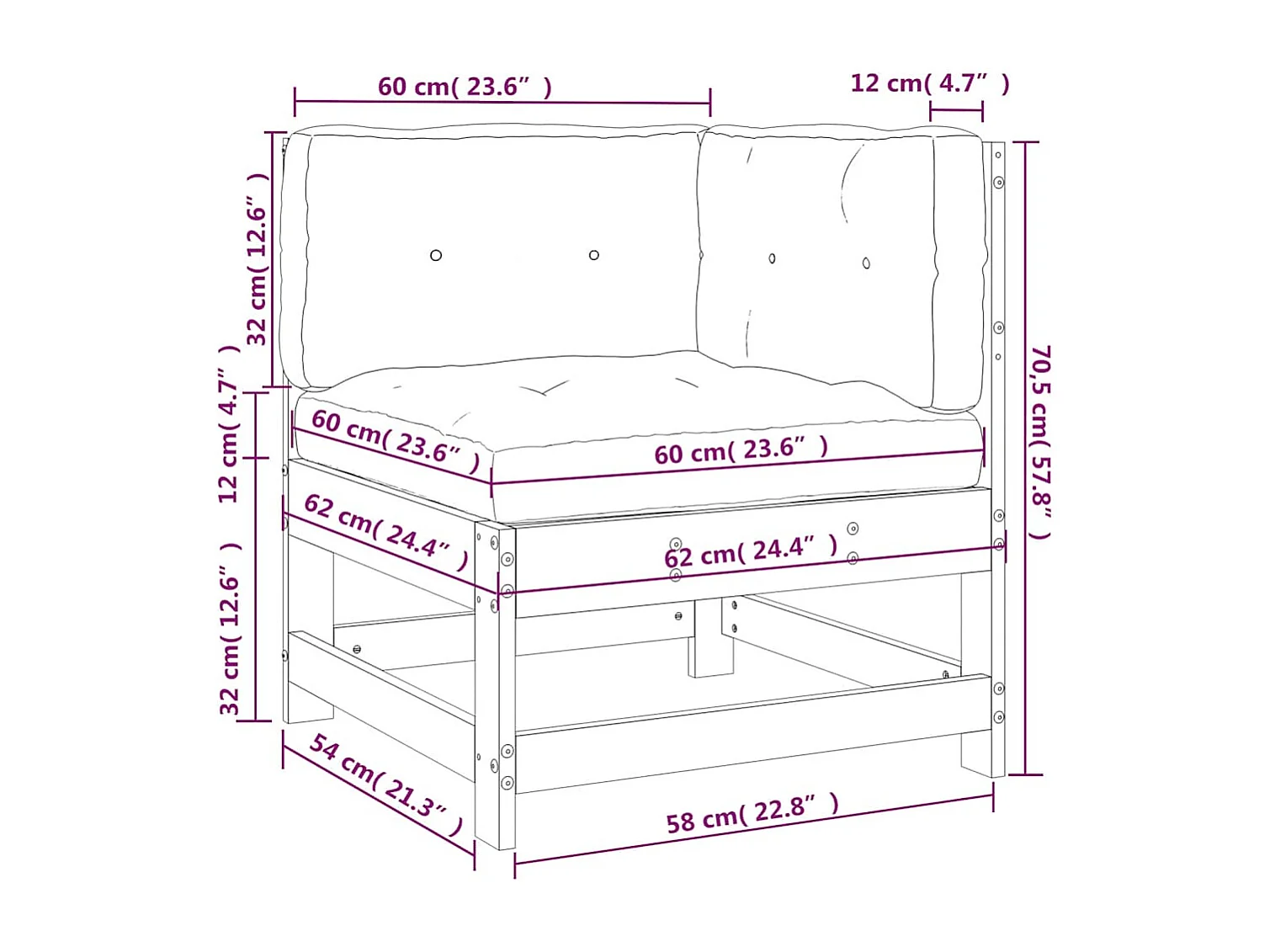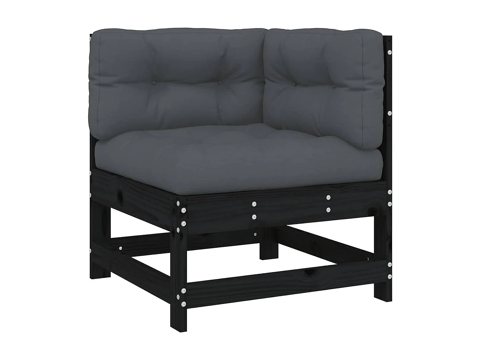 Hoekbank met kussens massief grenenhout zwart