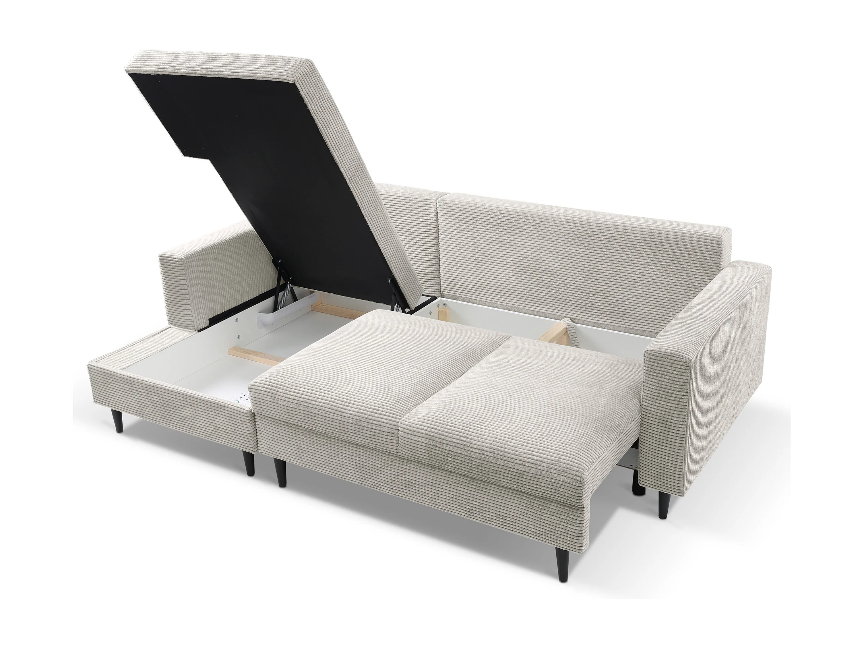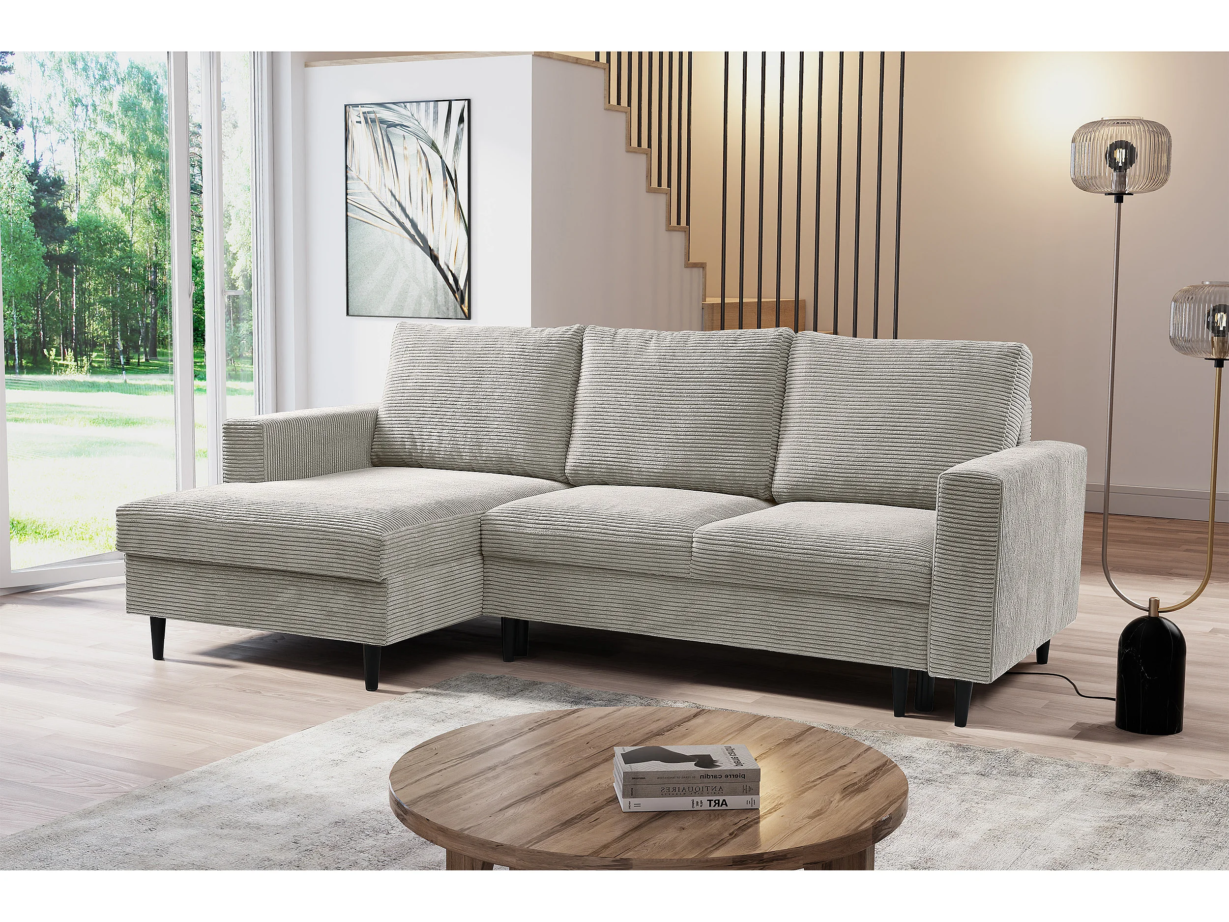 Hoekbank - met L-vormige slaapfunctie - lichtgrijs corduroy - linkerzijde - NALIKA