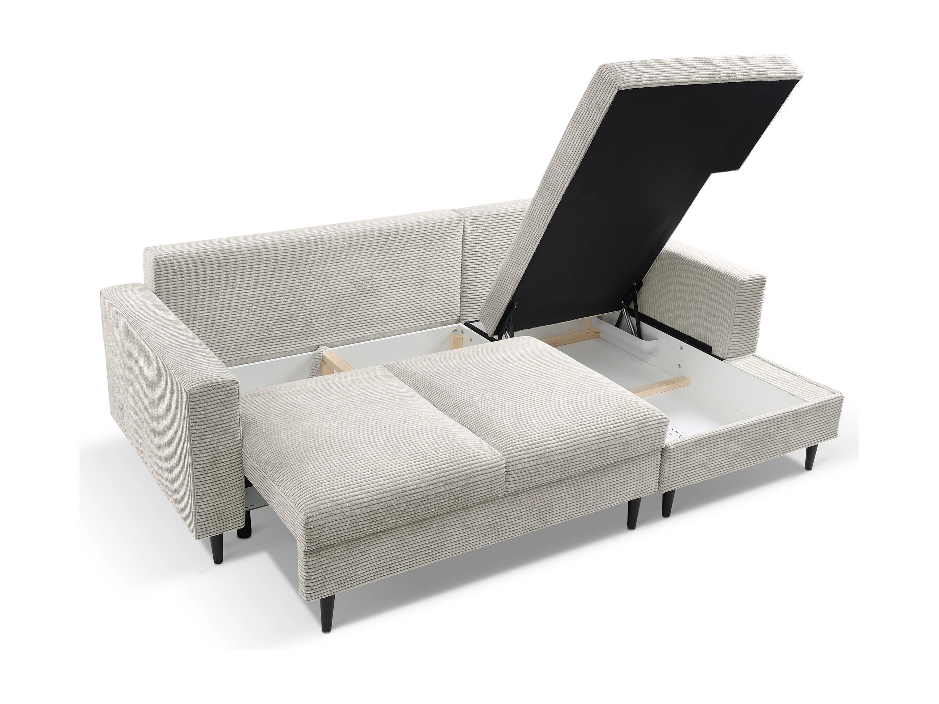 Hoekbank - met L-vormige slaapfunctie - lichtgrijs corduroy - rechterkant - NALIKA
