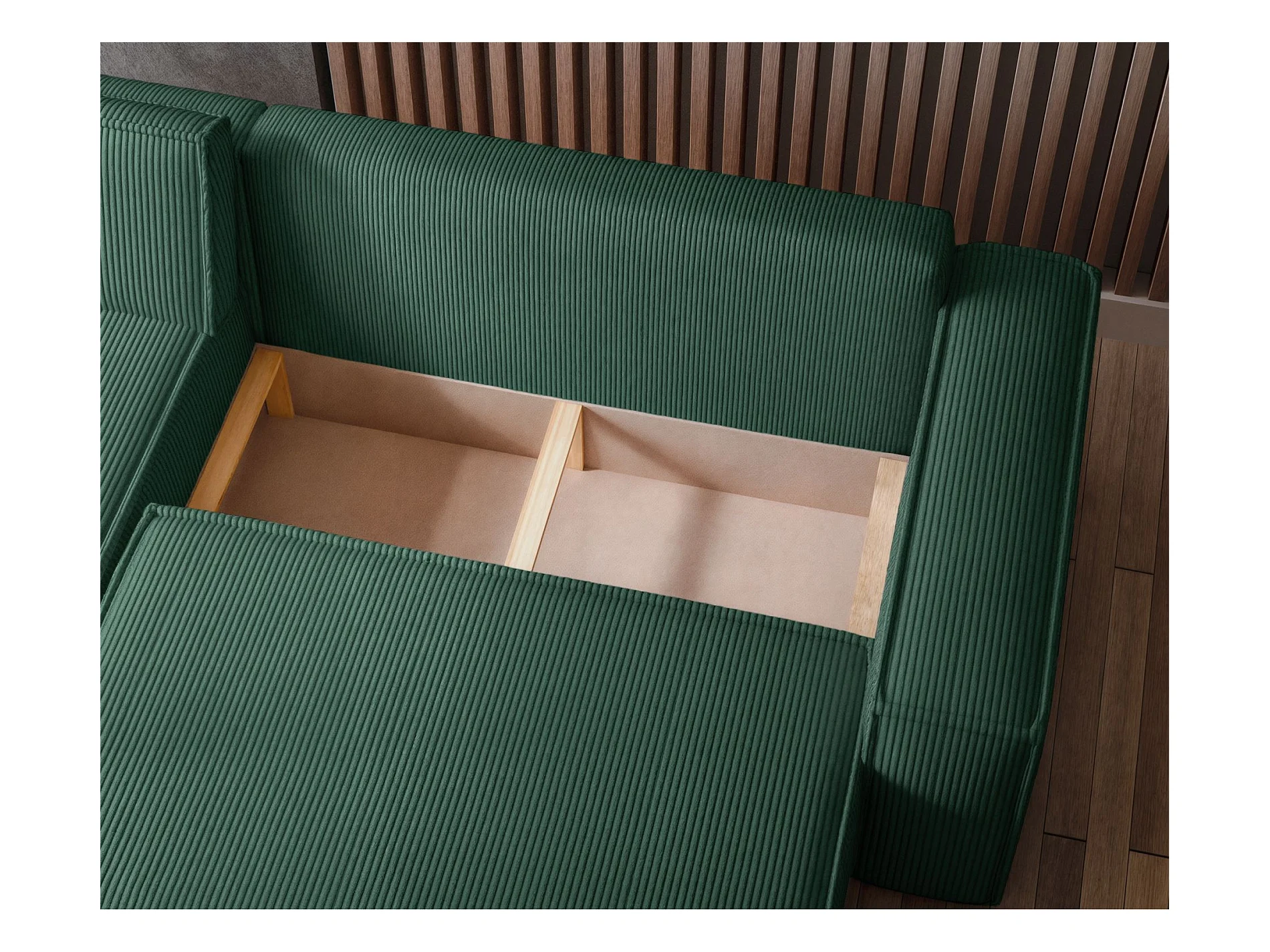 Hoekbedbank met corduroybekleding – slaapfunctie en opbergruimte – olijfgroen – links – OVO CORD