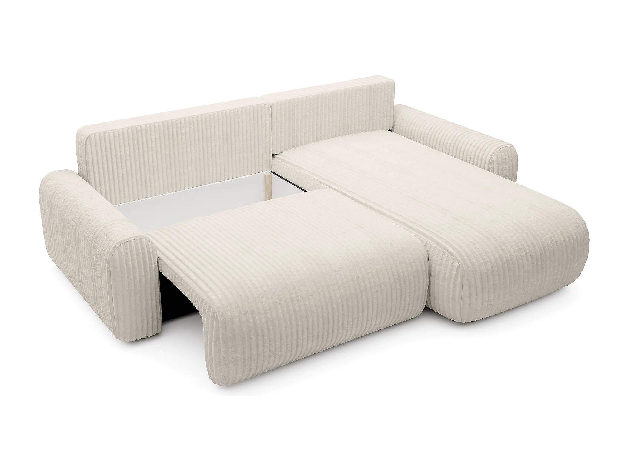 Hoekbank met ribfluweel – slaapfunctie en opbergruimte – Crème – omkeerbaar – LELU