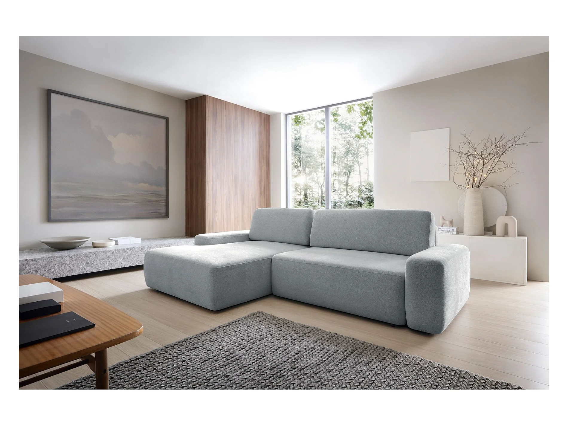 Hoekbank met slaapbank - lichtgrijs chenille - linkerzijde - BALEO