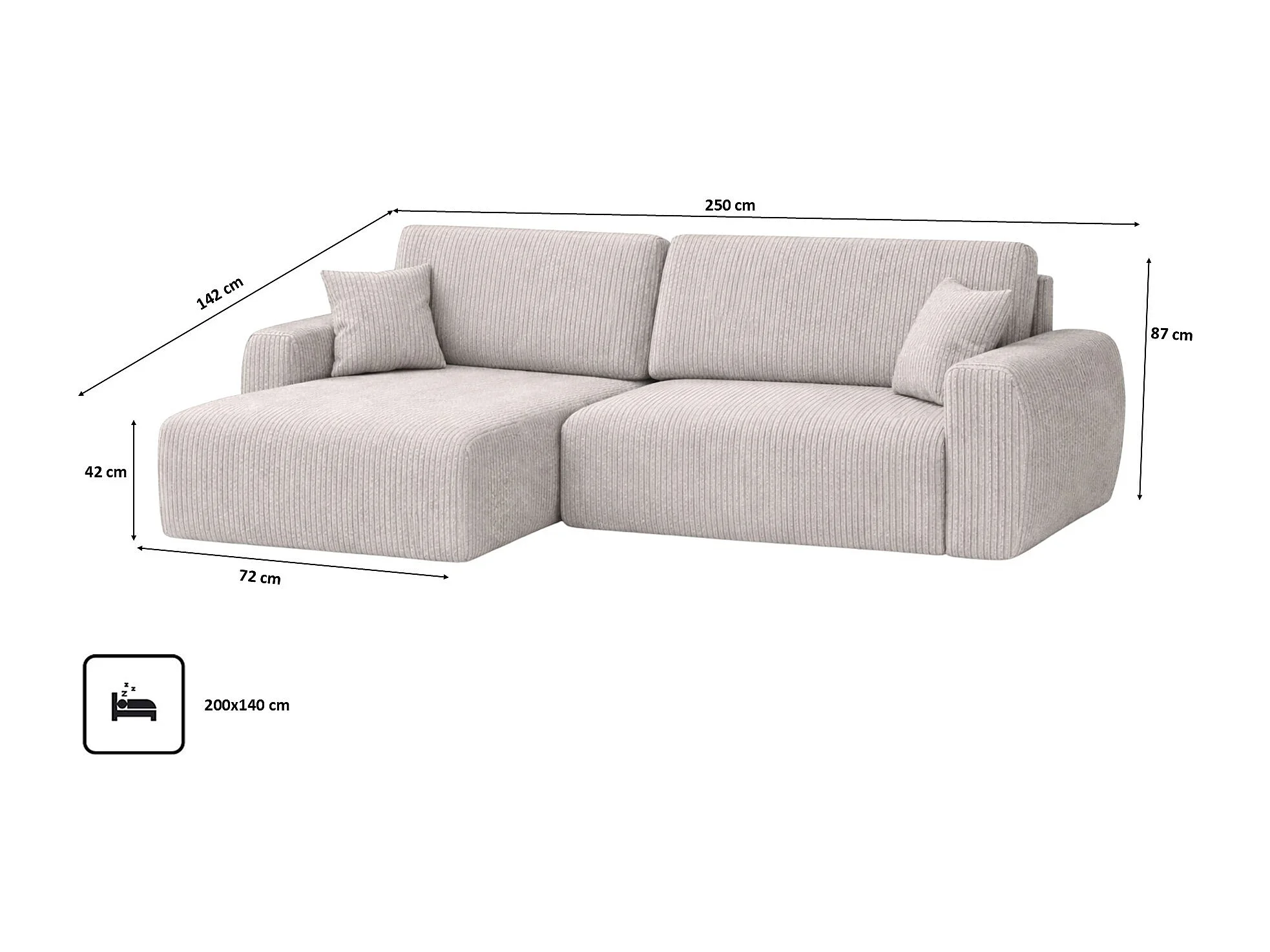 Hoekbank met slaapfunctie en opbergruimte Ariel L, corduroy stof, Poso stof, beige, links