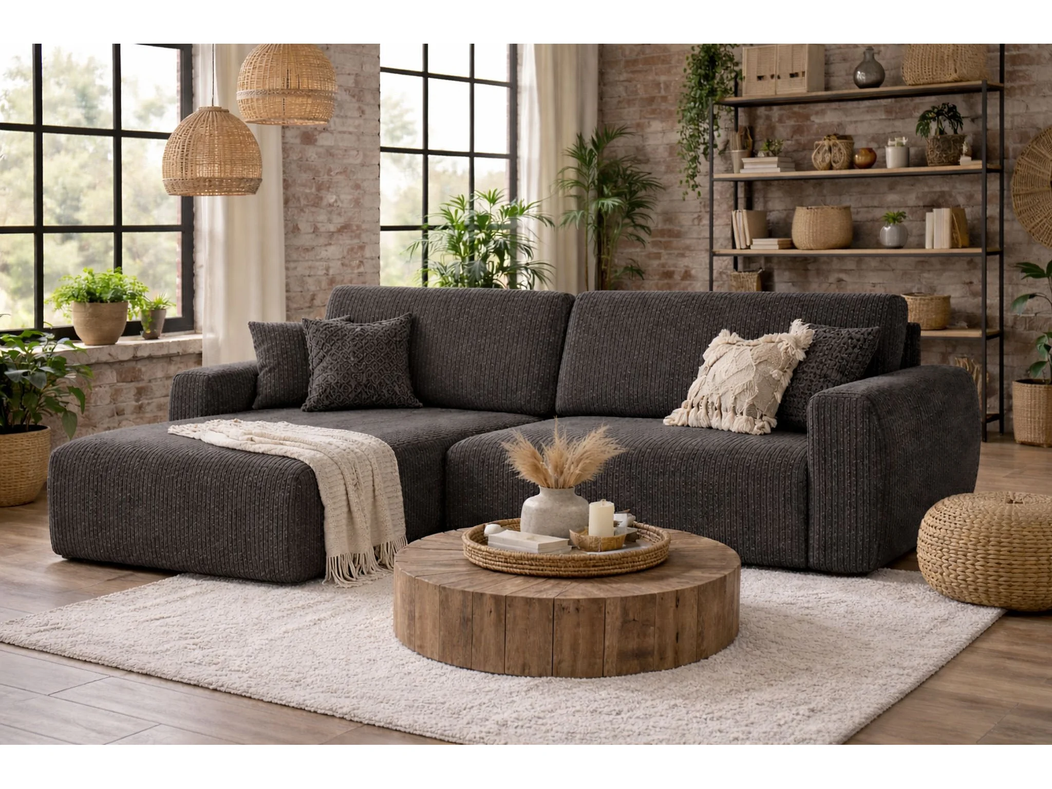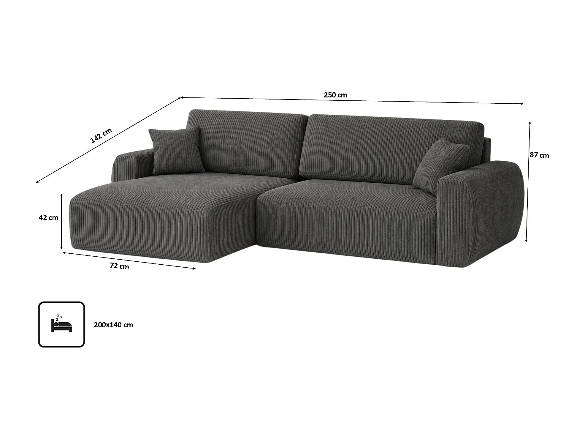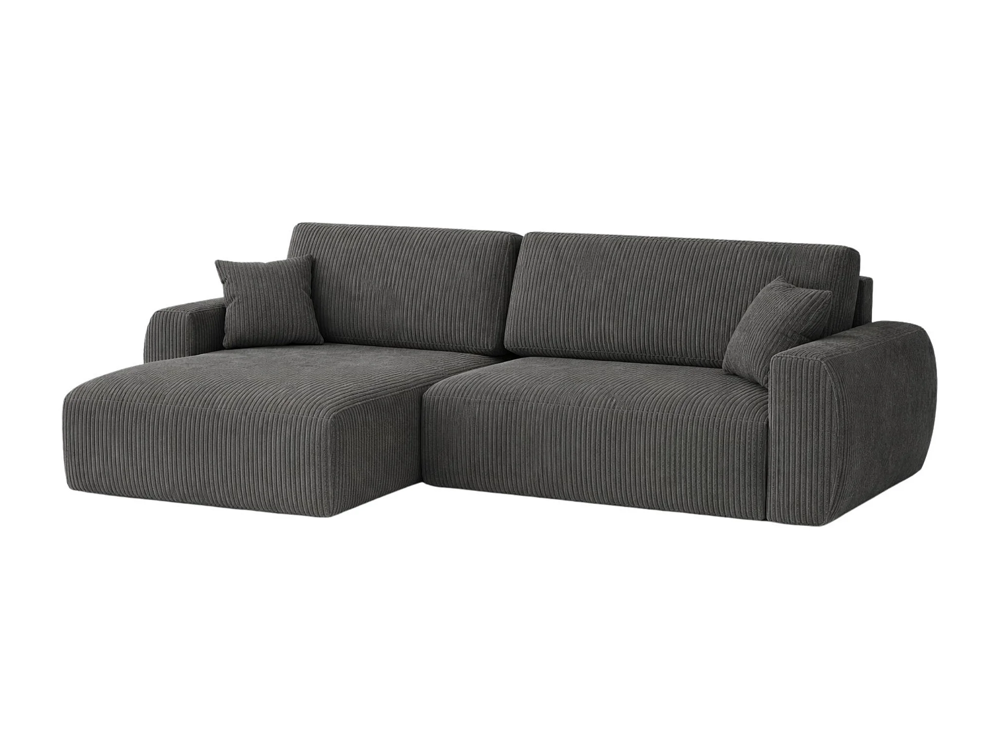 Hoekbank met slaapfunctie en opbergruimte Ariel L, corduroy stof, Poso stof, grijs, links