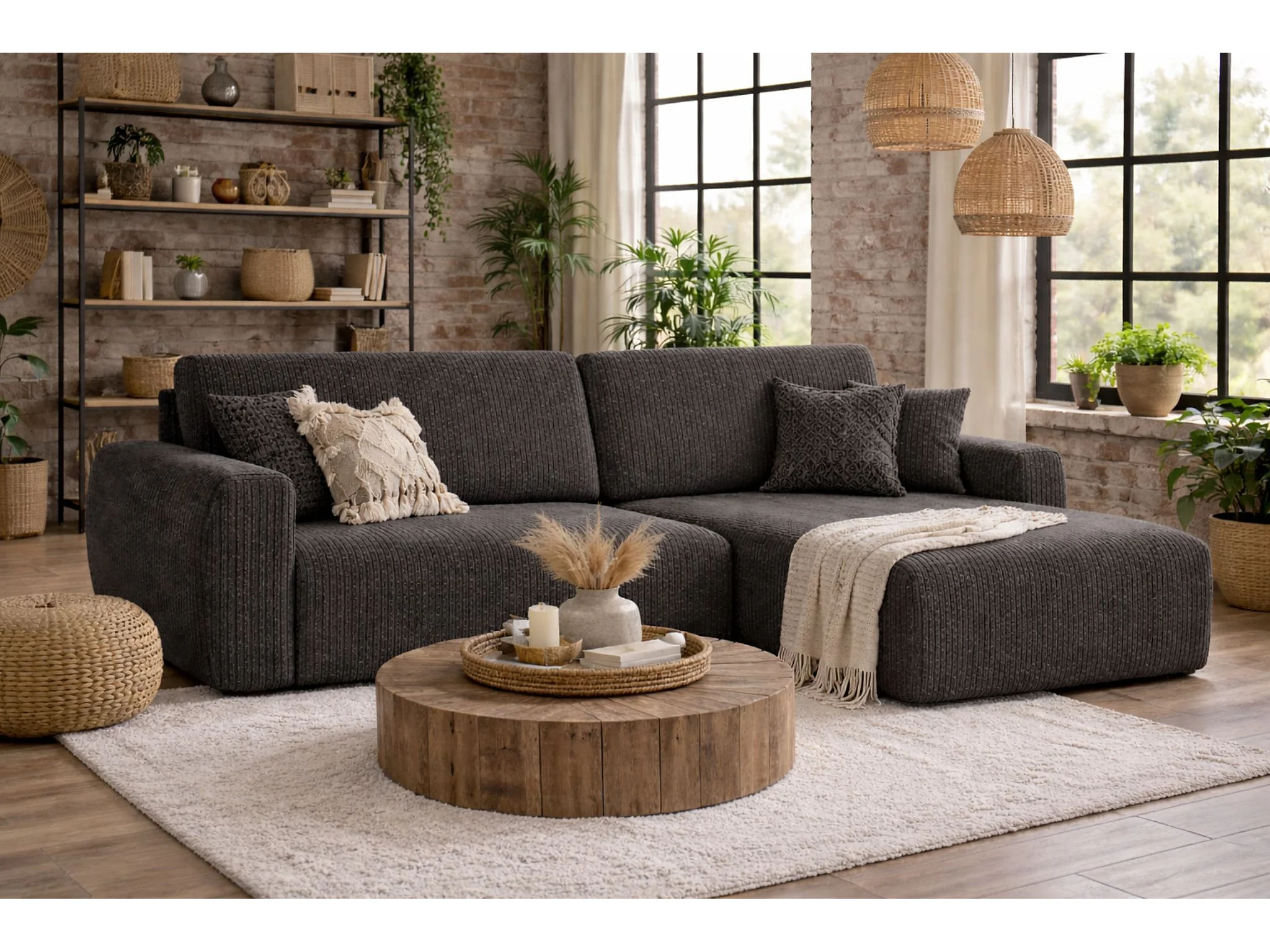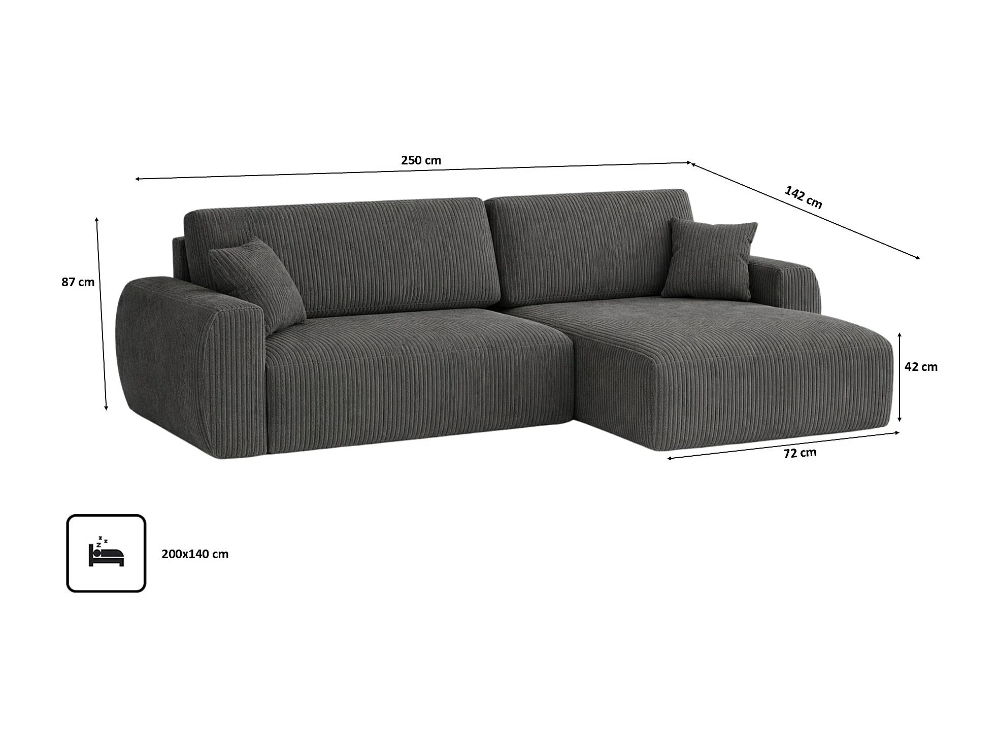 Hoekbank met slaapfunctie en opbergruimte Ariel L, corduroy stof, Poso stof, grijs, rechts