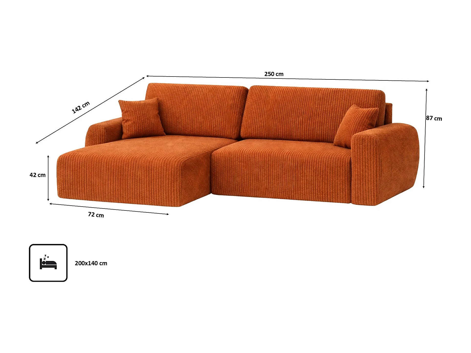 Hoekbank met slaapfunctie en opbergruimte Ariel L, corduroy stof, Poso stof, koper, links
