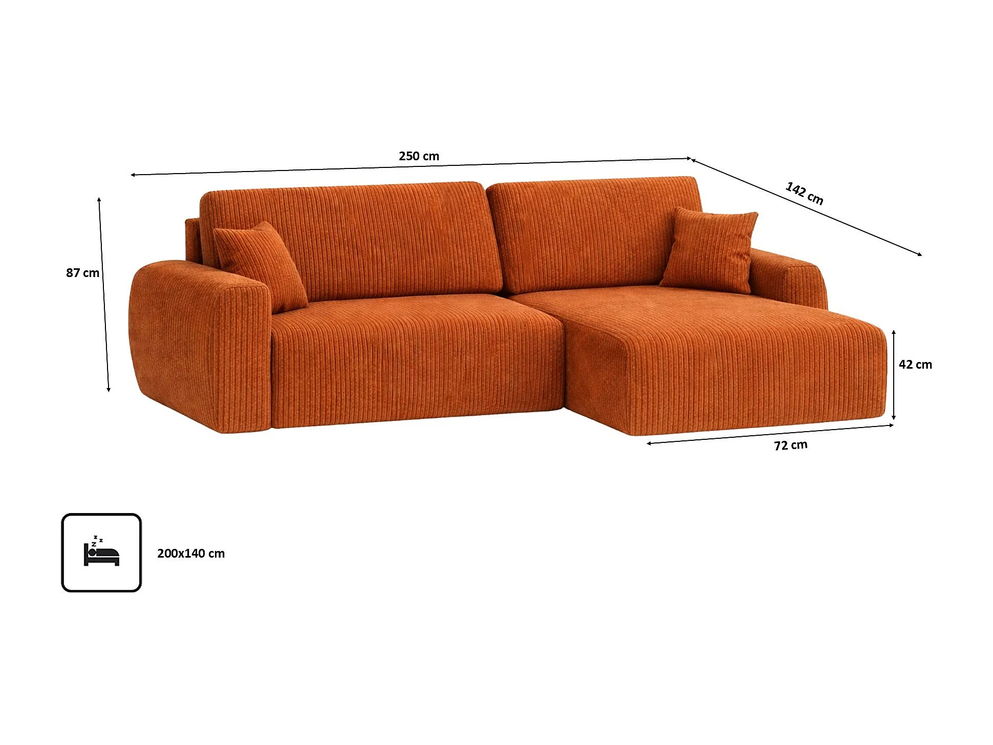 Hoekbank met slaapfunctie en opbergruimte Ariel L, corduroy stof, Poso stof, koper, rechts