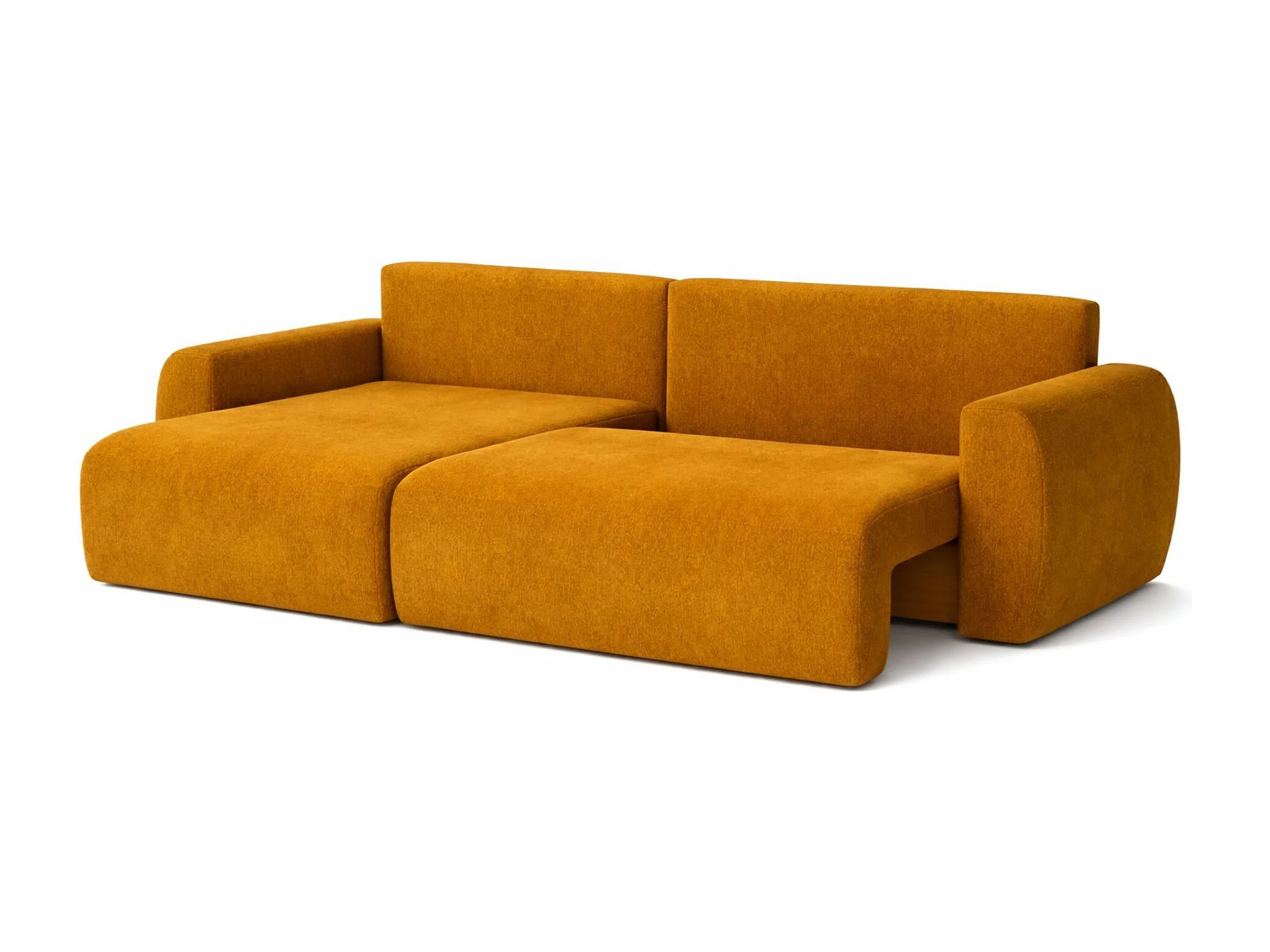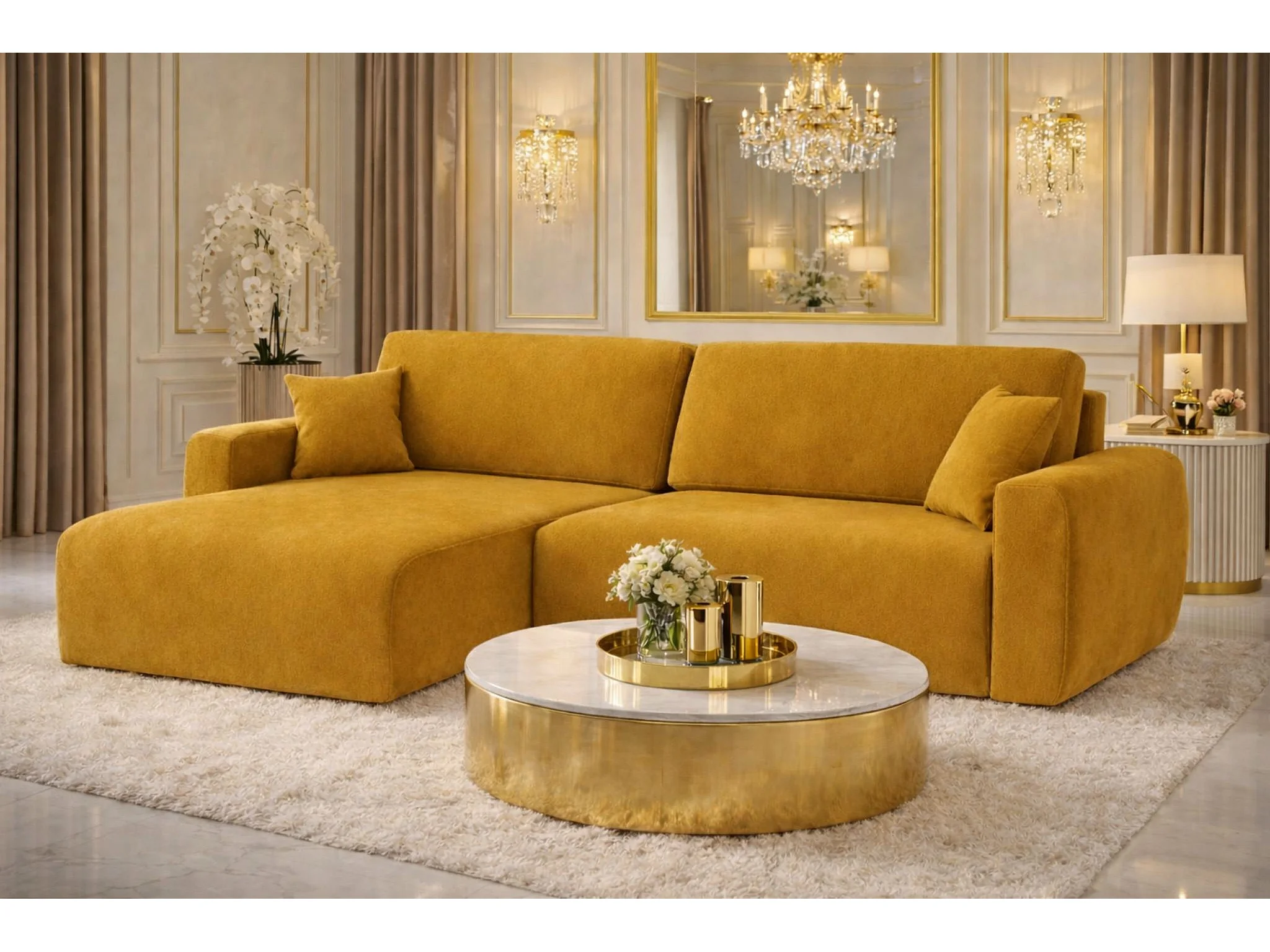 Hoekbank met slaapfunctie en opbergruimte Ariel L, velours, stof Salvador, geel, links