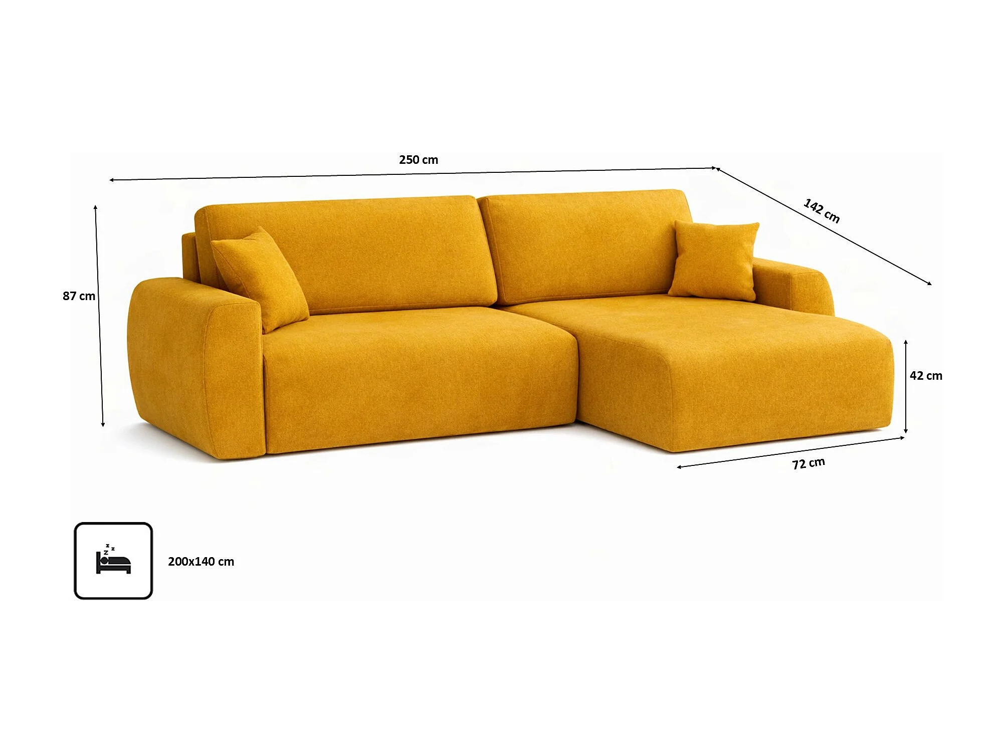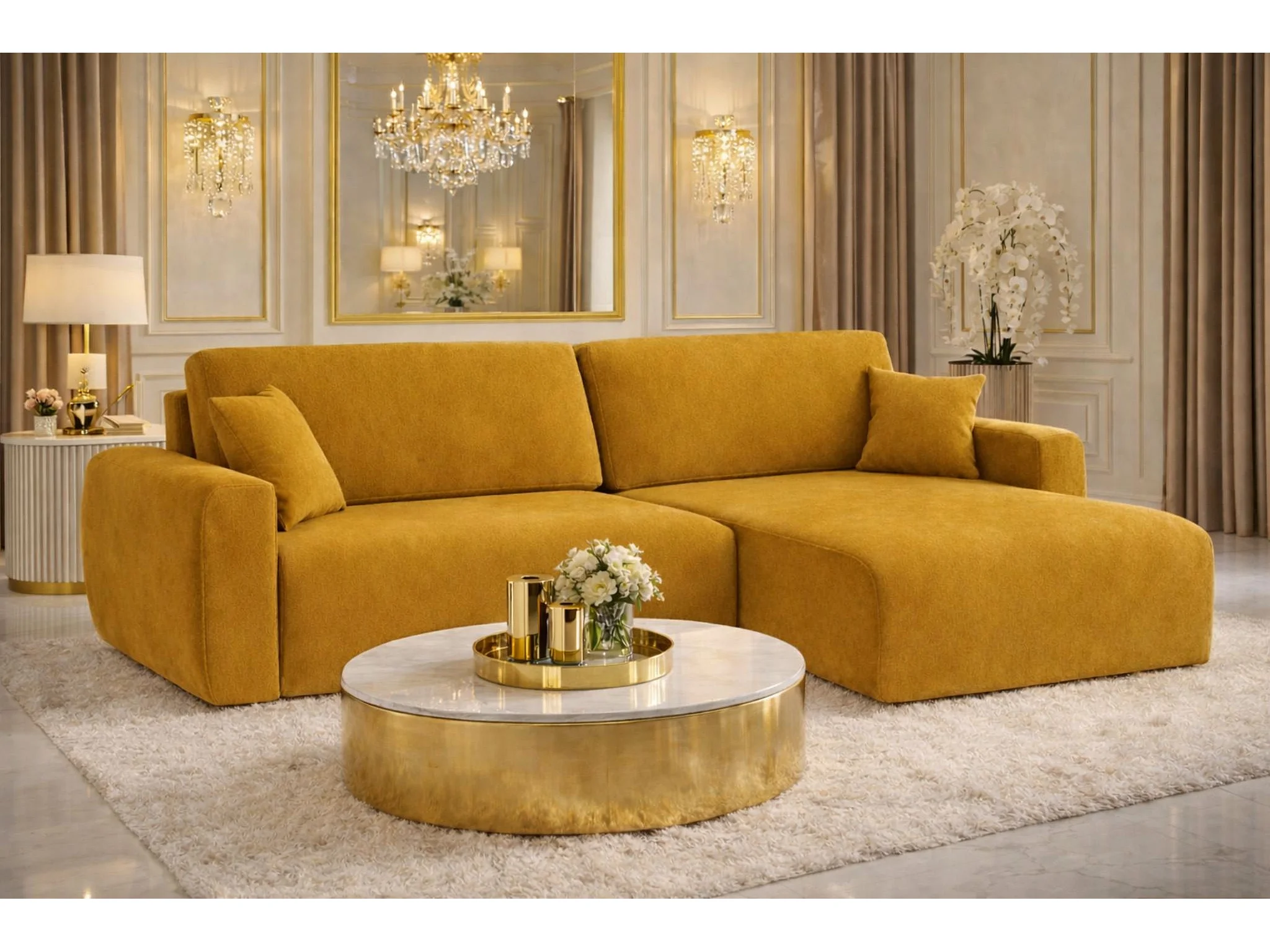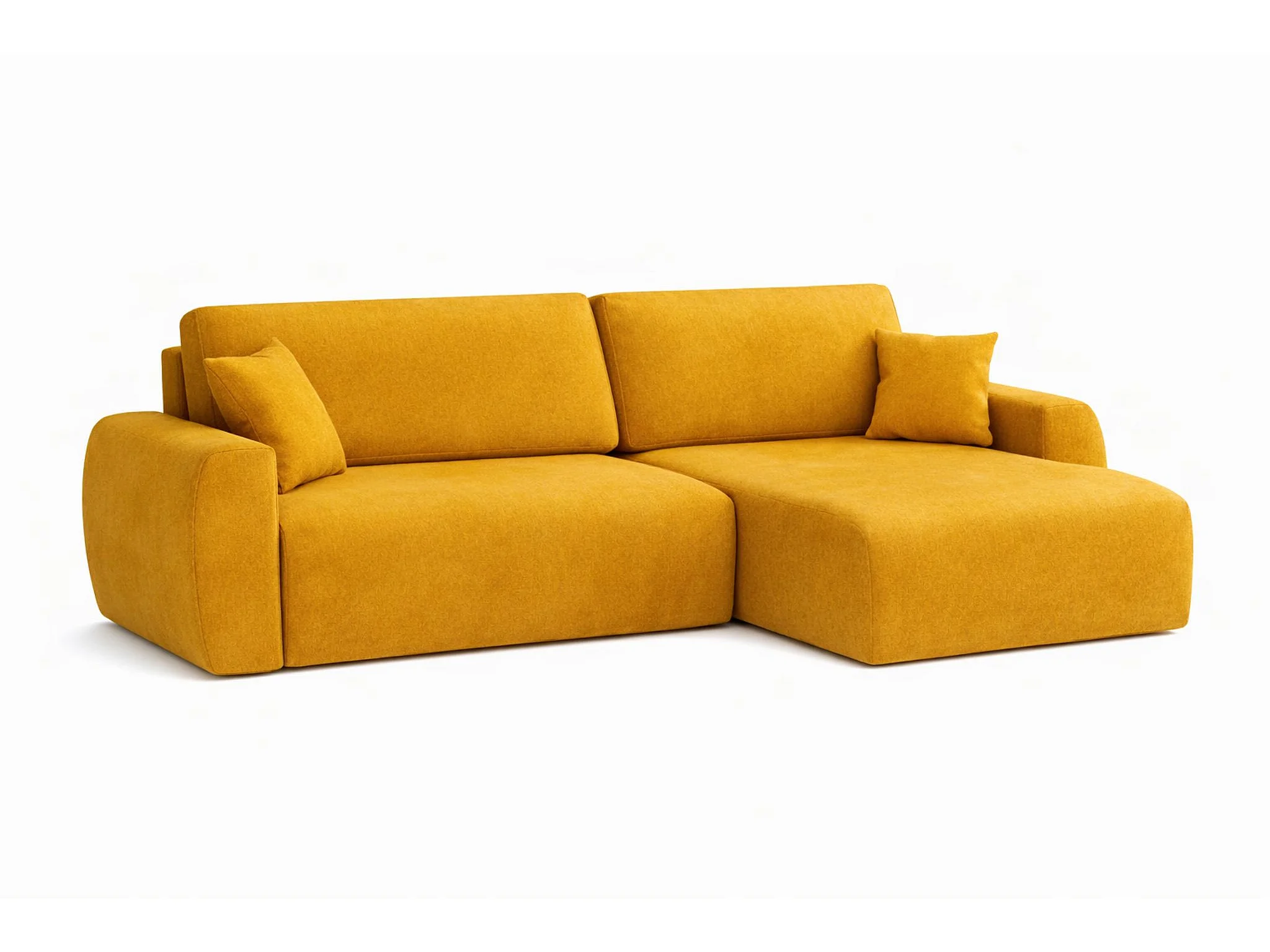 Hoekbank met slaapfunctie en opbergruimte Ariel L, velours, stof Salvador, geel, rechts