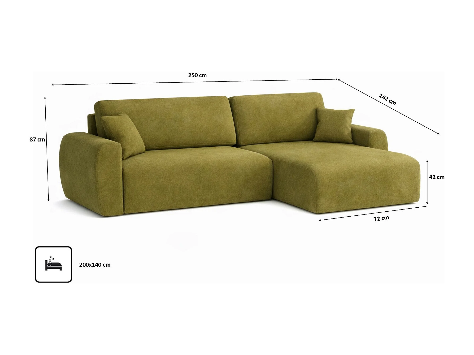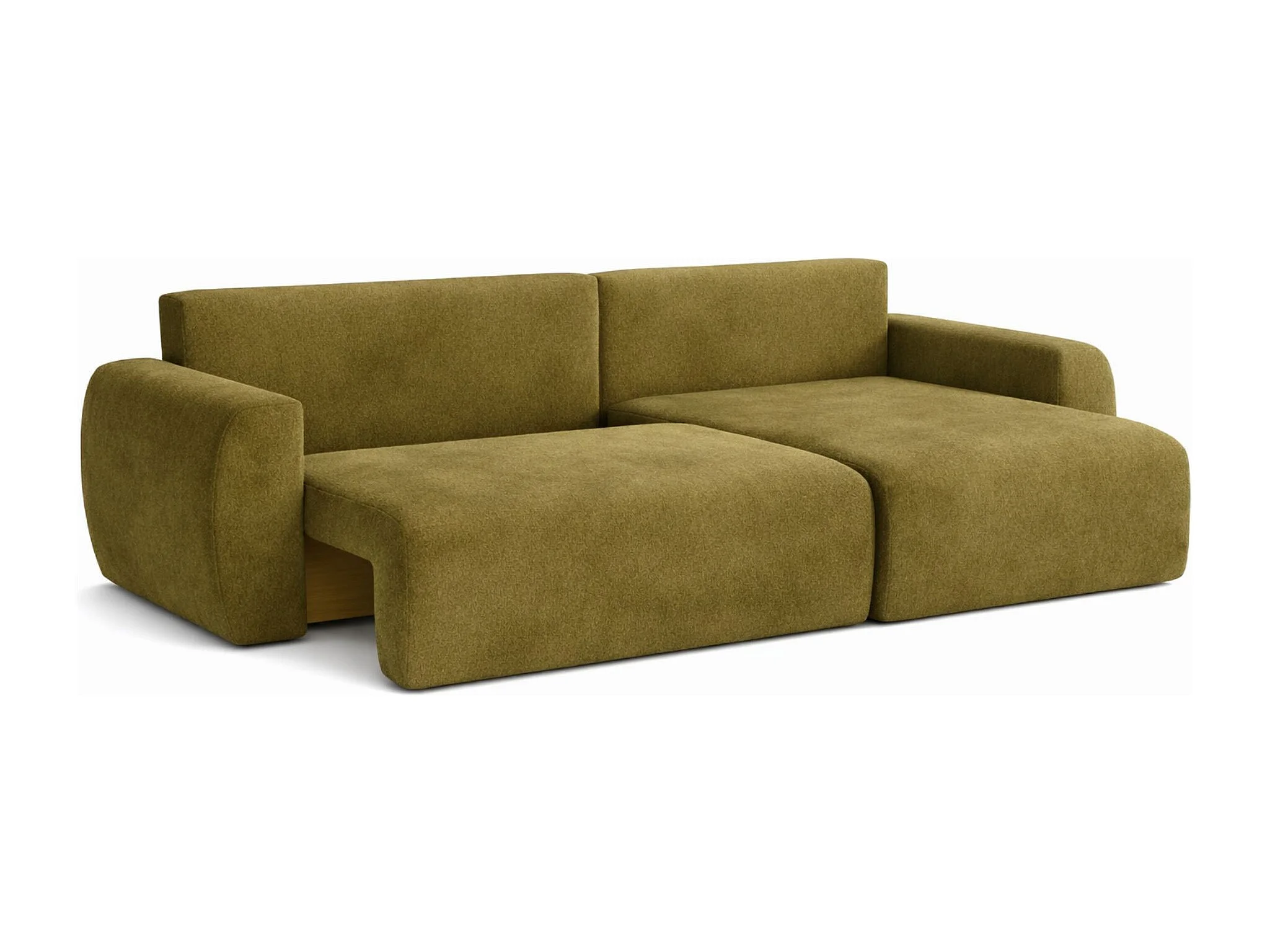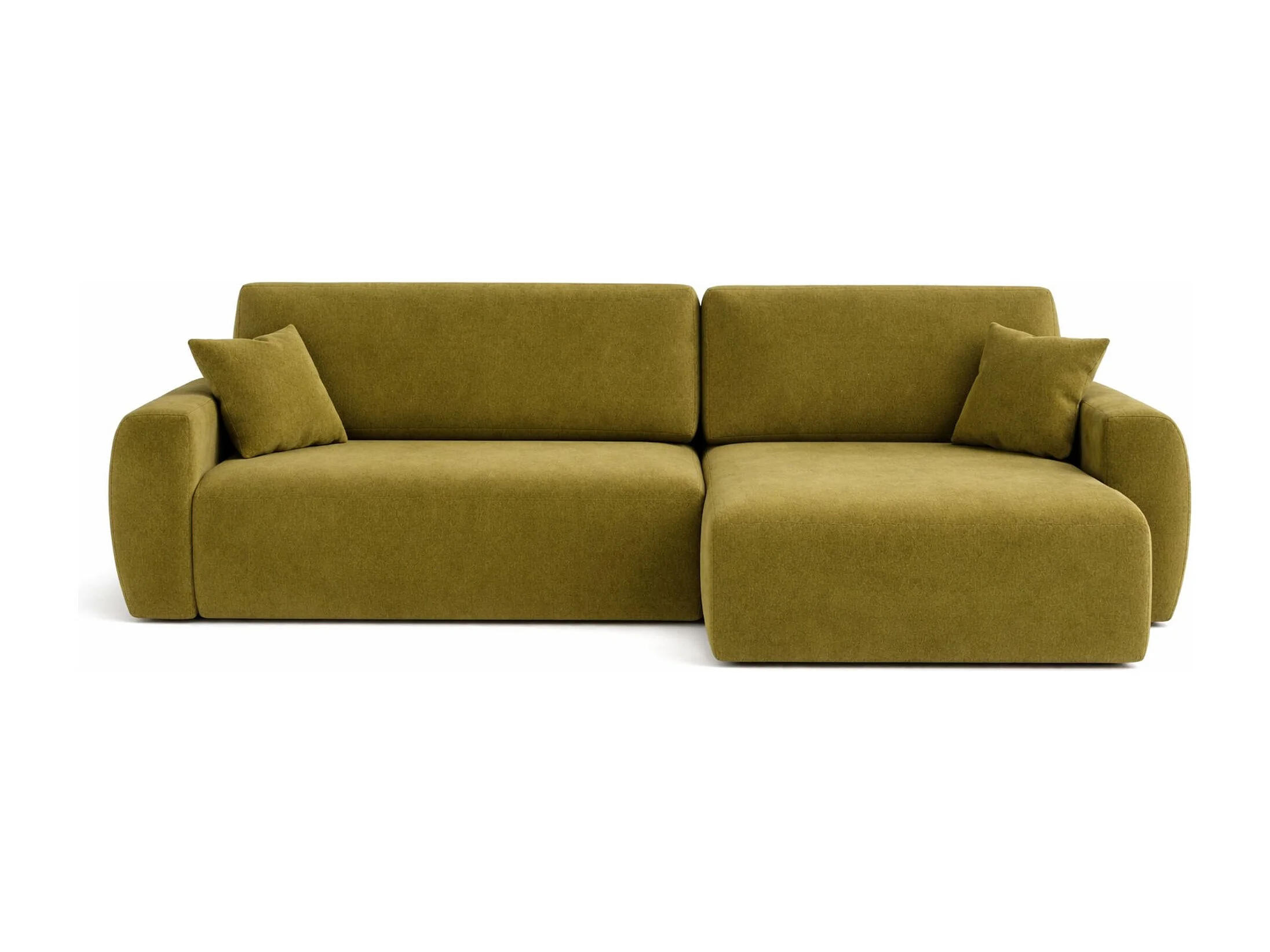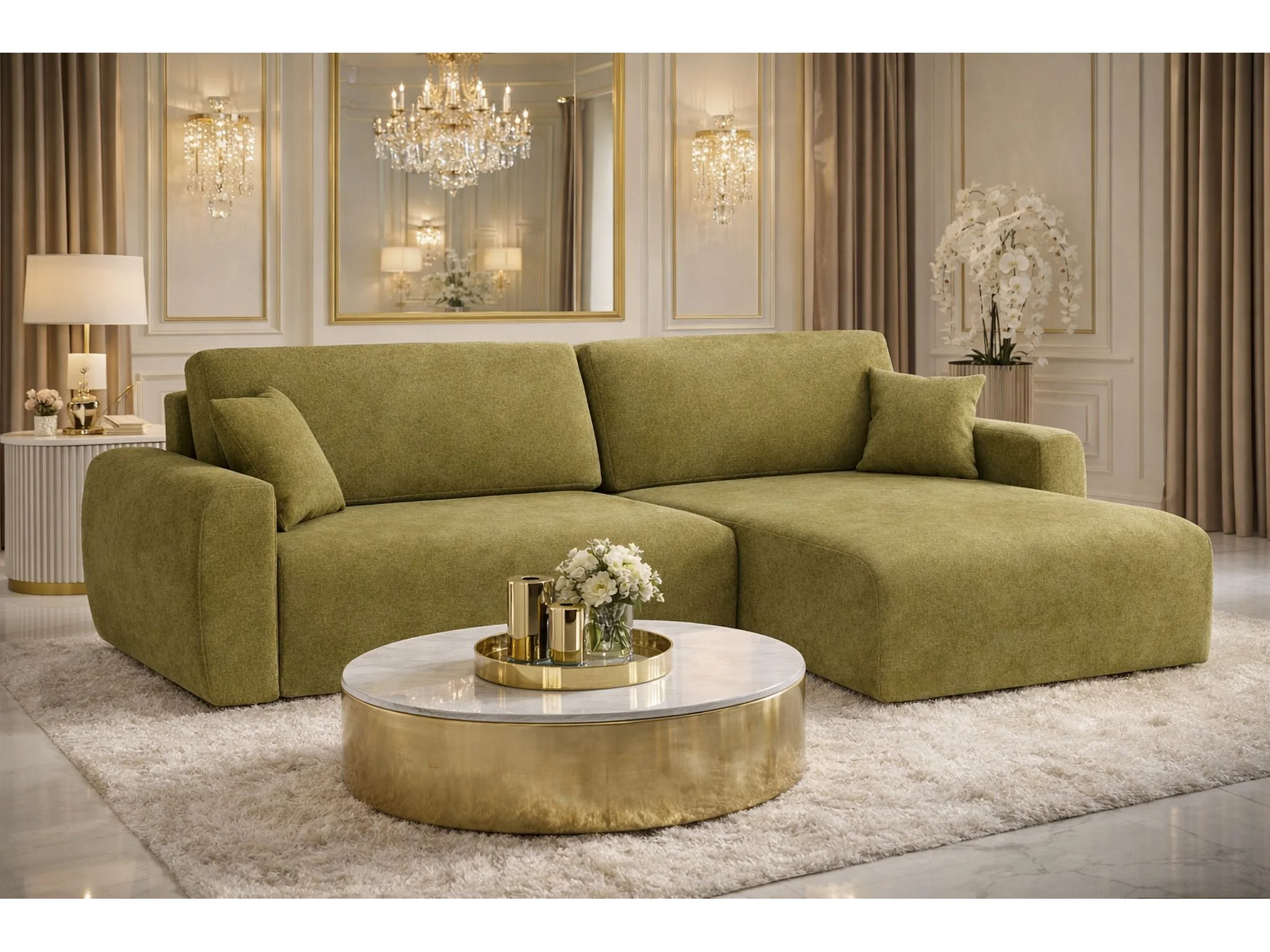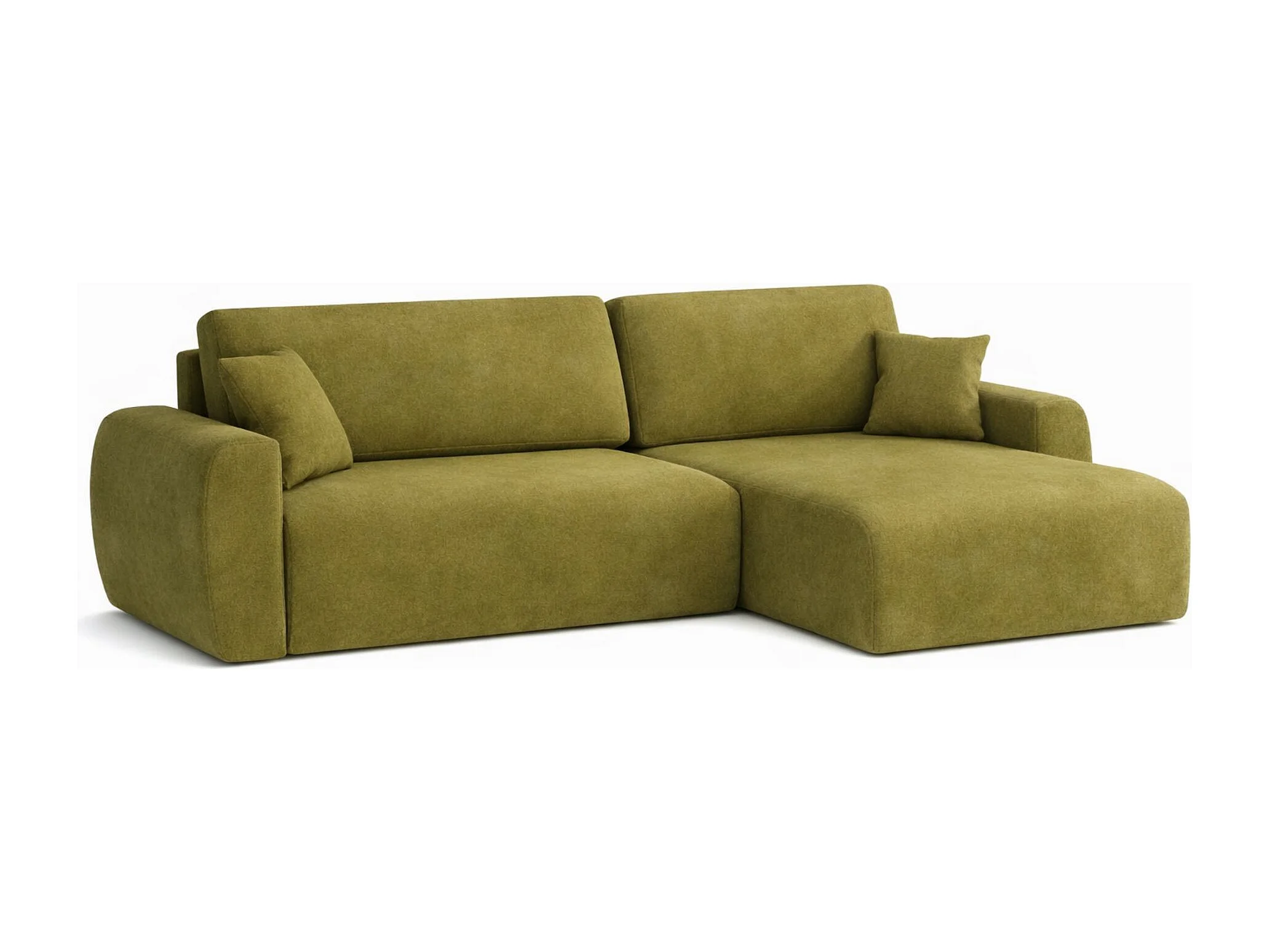 Hoekbank met slaapfunctie en opbergruimte Ariel L, velours, stof Salvador, olijfgroen, rechts