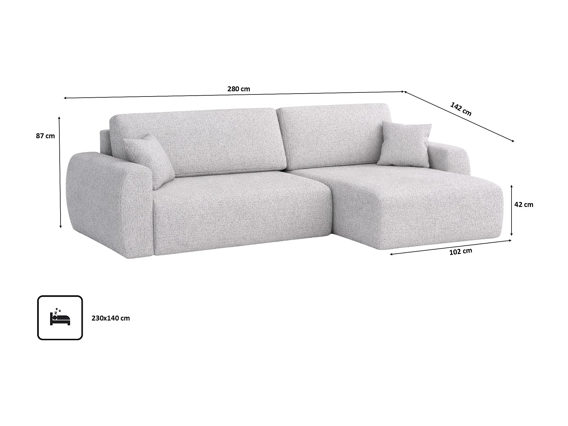 Hoekbank met slaapfunctie en opbergvak, Ariel XL, chenille stof, Artico stof, Cement, rechts
