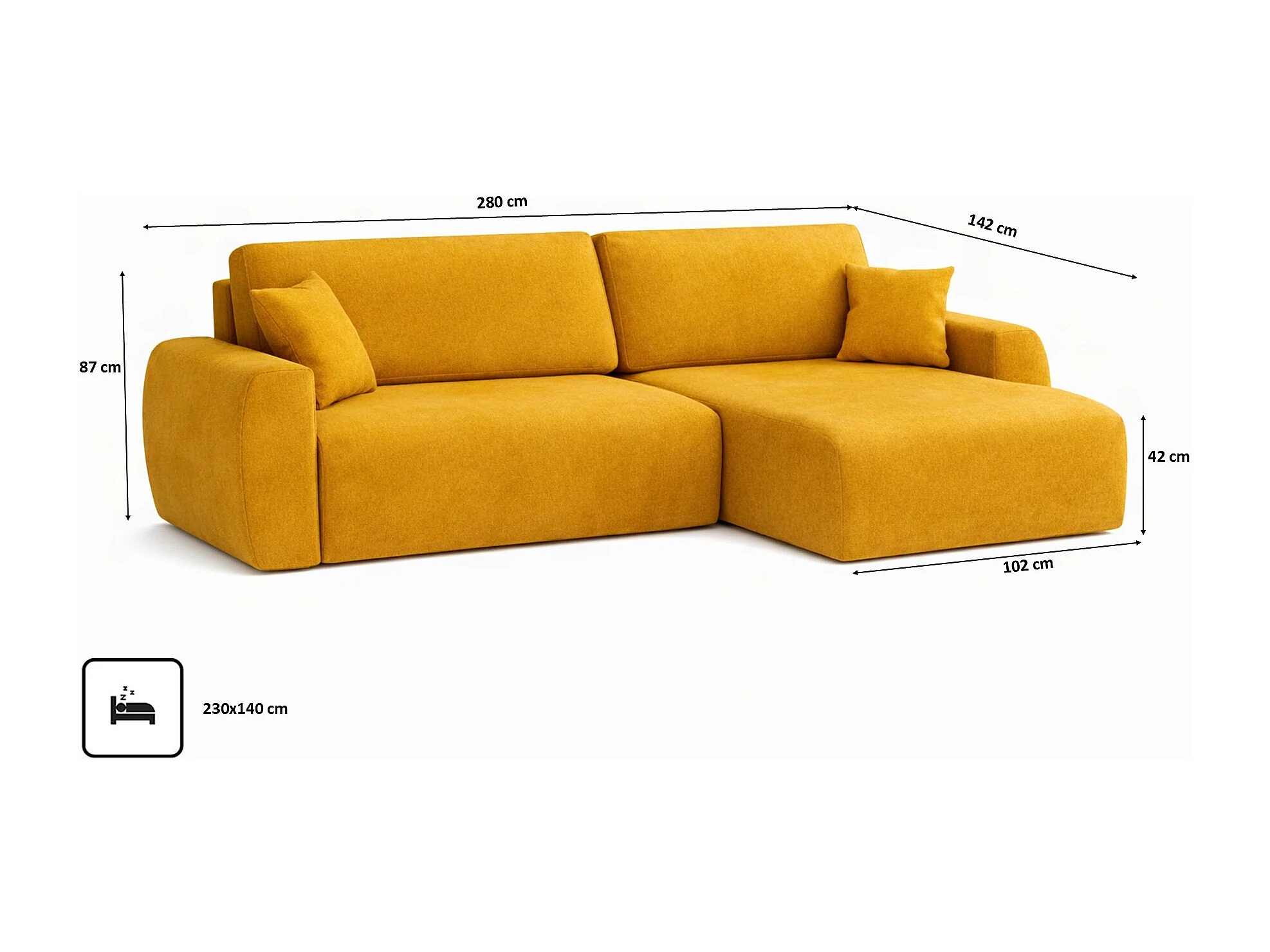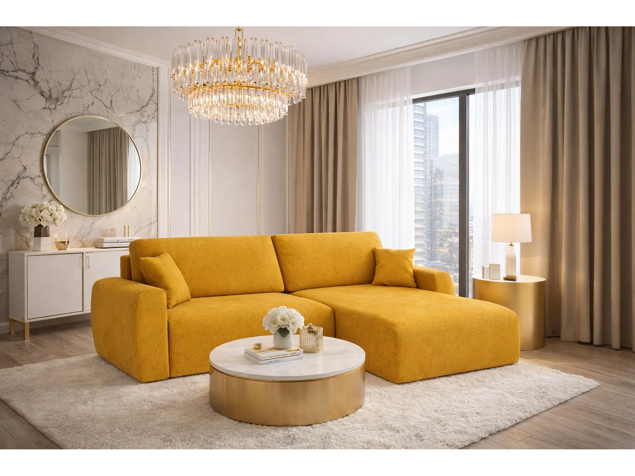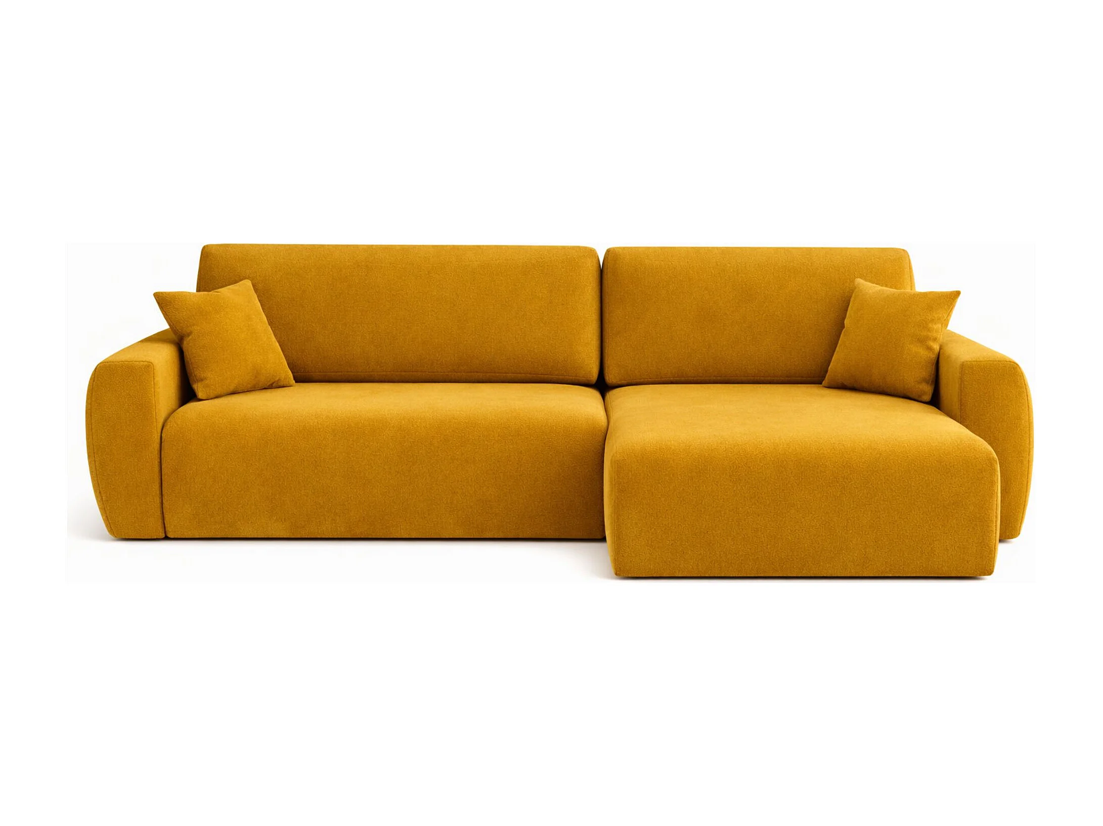 Hoekbank met slaapfunctie en opbergvak, Ariel XL, velours, stof Salvador, geel, rechts