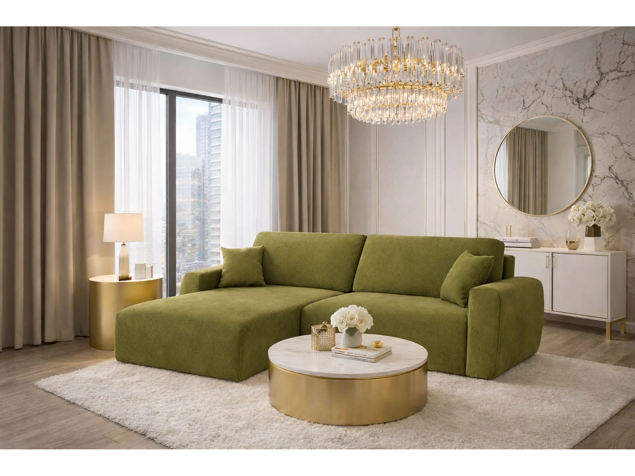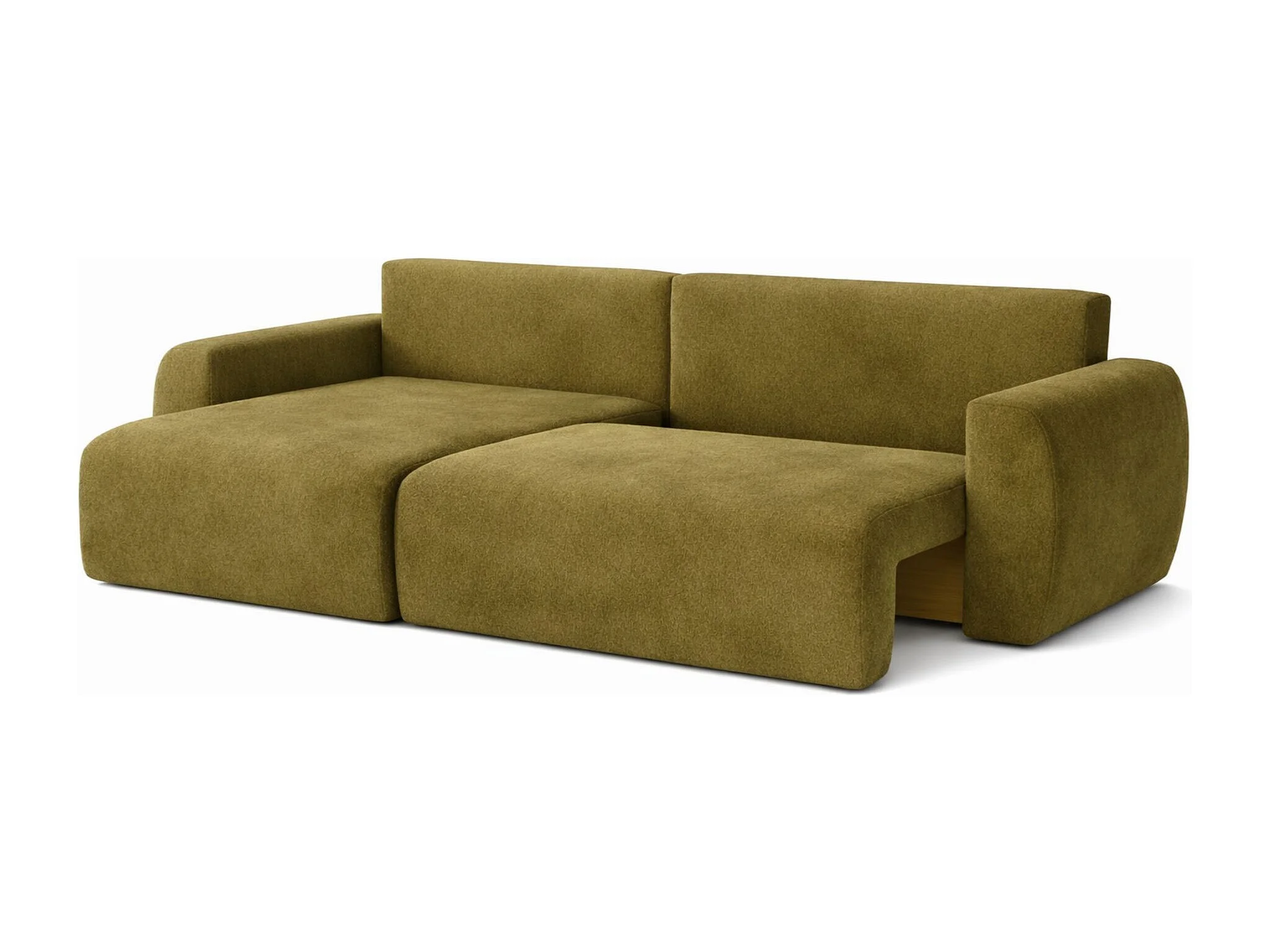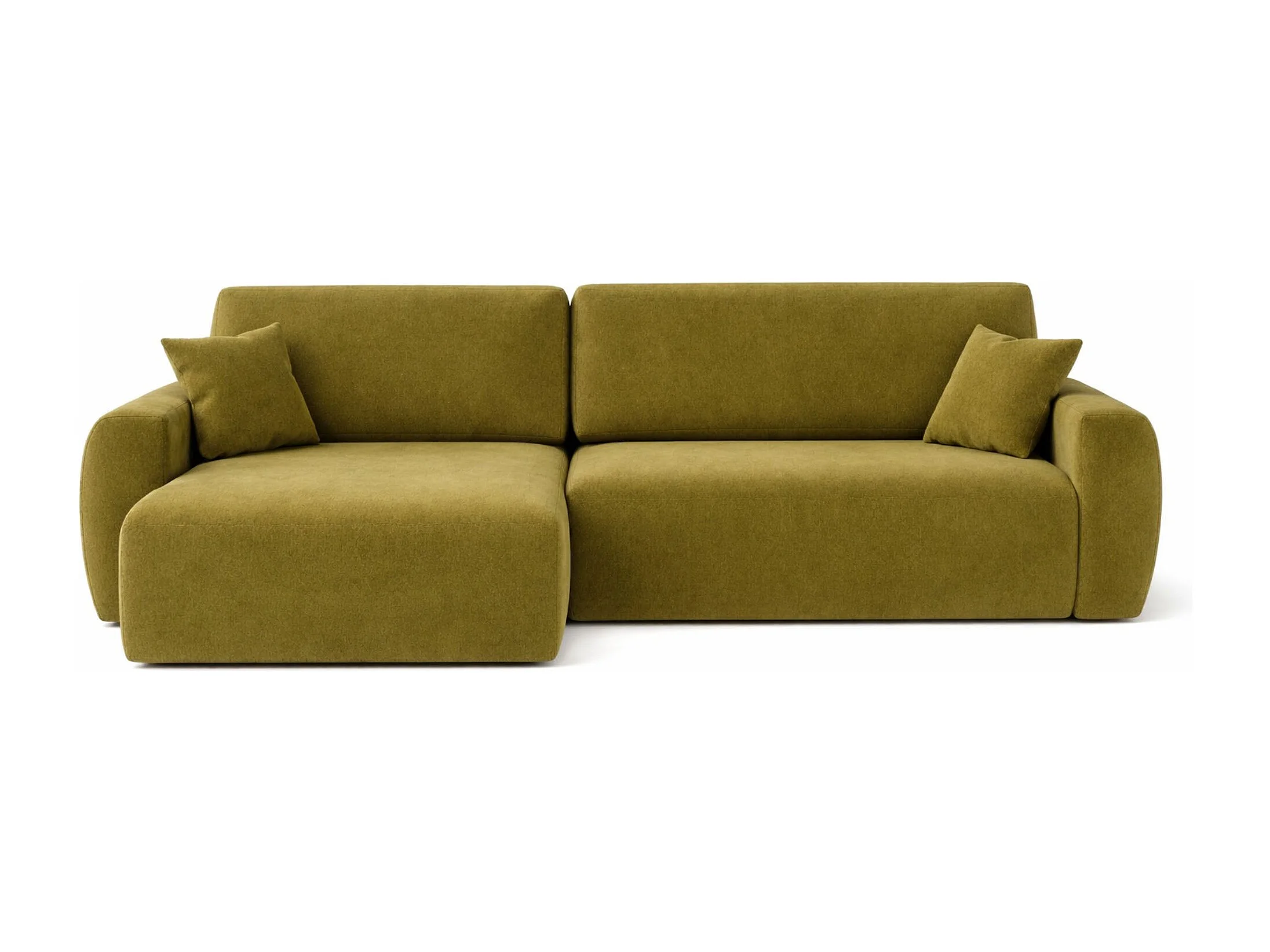 Hoekbank met slaapfunctie en opbergvak, Ariel XL, velours, stof Salvador, olijfgroen, links