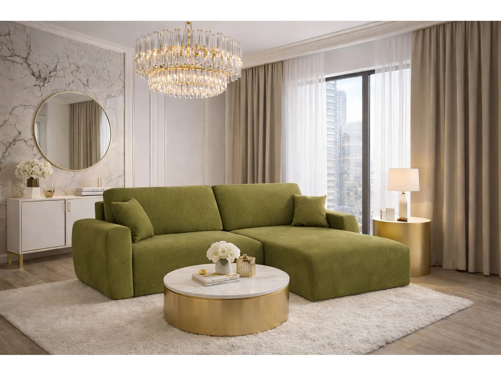 Hoekbank met slaapfunctie en opbergvak, Ariel XL, velours, stof Salvador, olijfgroen, rechts