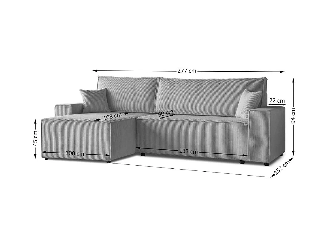 Hoekslaapbank Gavi grafiet fluweel rechts
