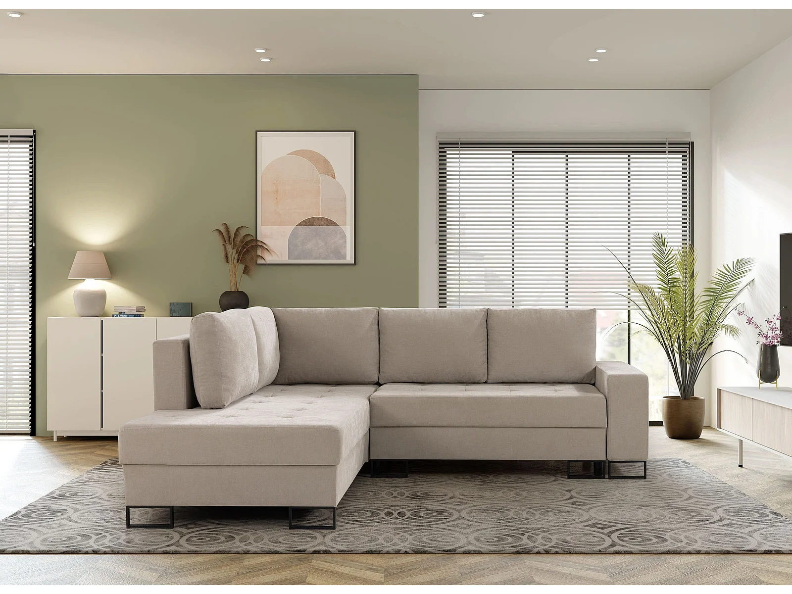 Hoekbank met Slaapfunctie Links Trevi - Chenille Beige Wind 05 - Metalen Poten