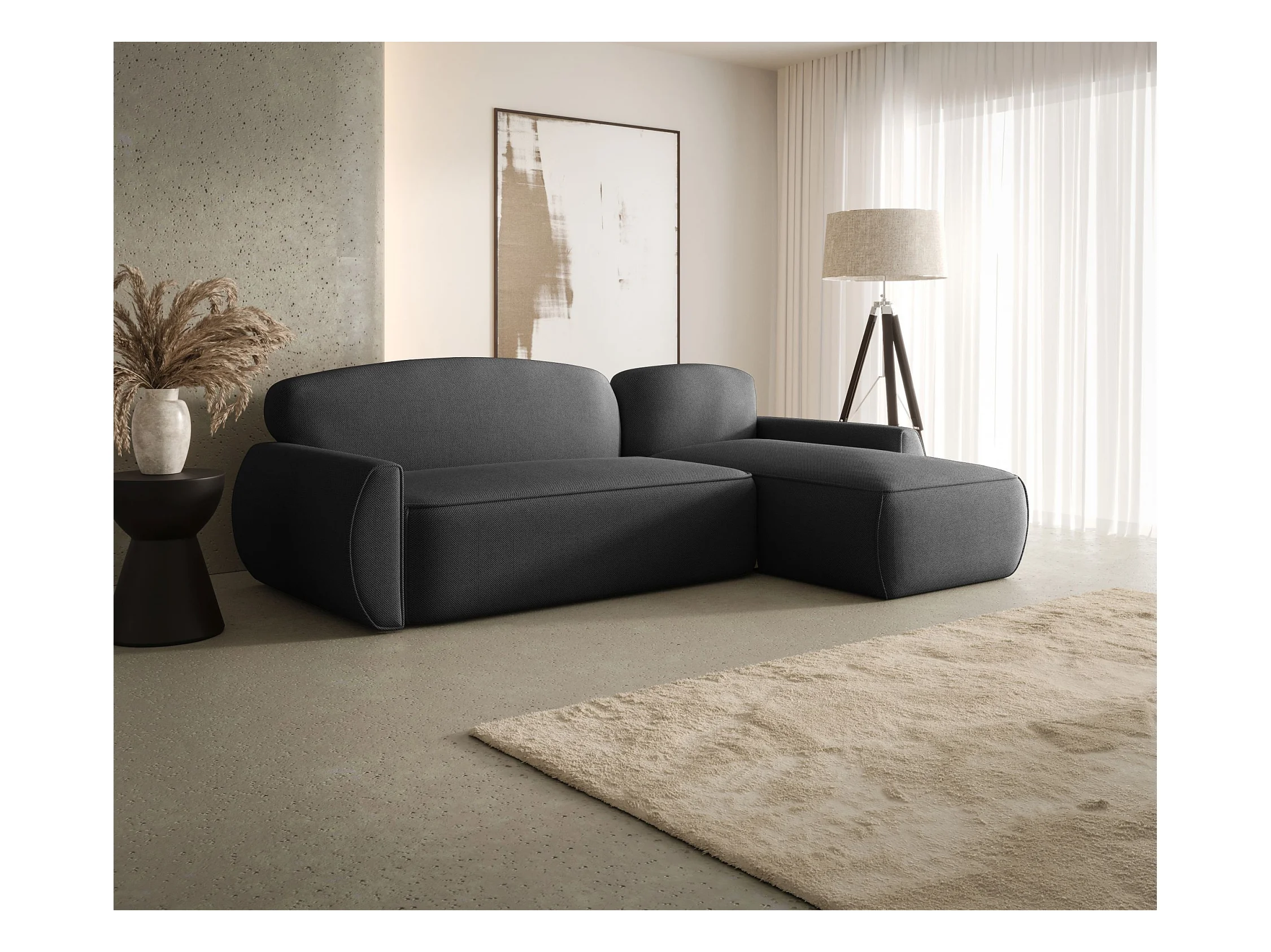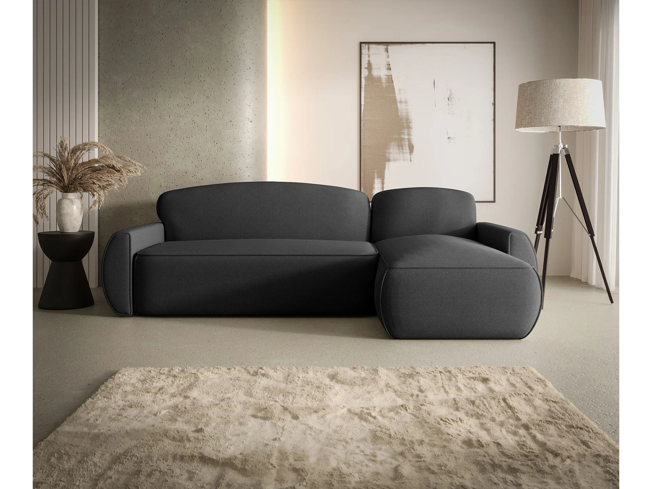 HOEKBANK EMILY met slaapfunctie Monolith 84 Grijs Rechts L-vorm bank met opbergruimte, slaapbank, woonkamerbank