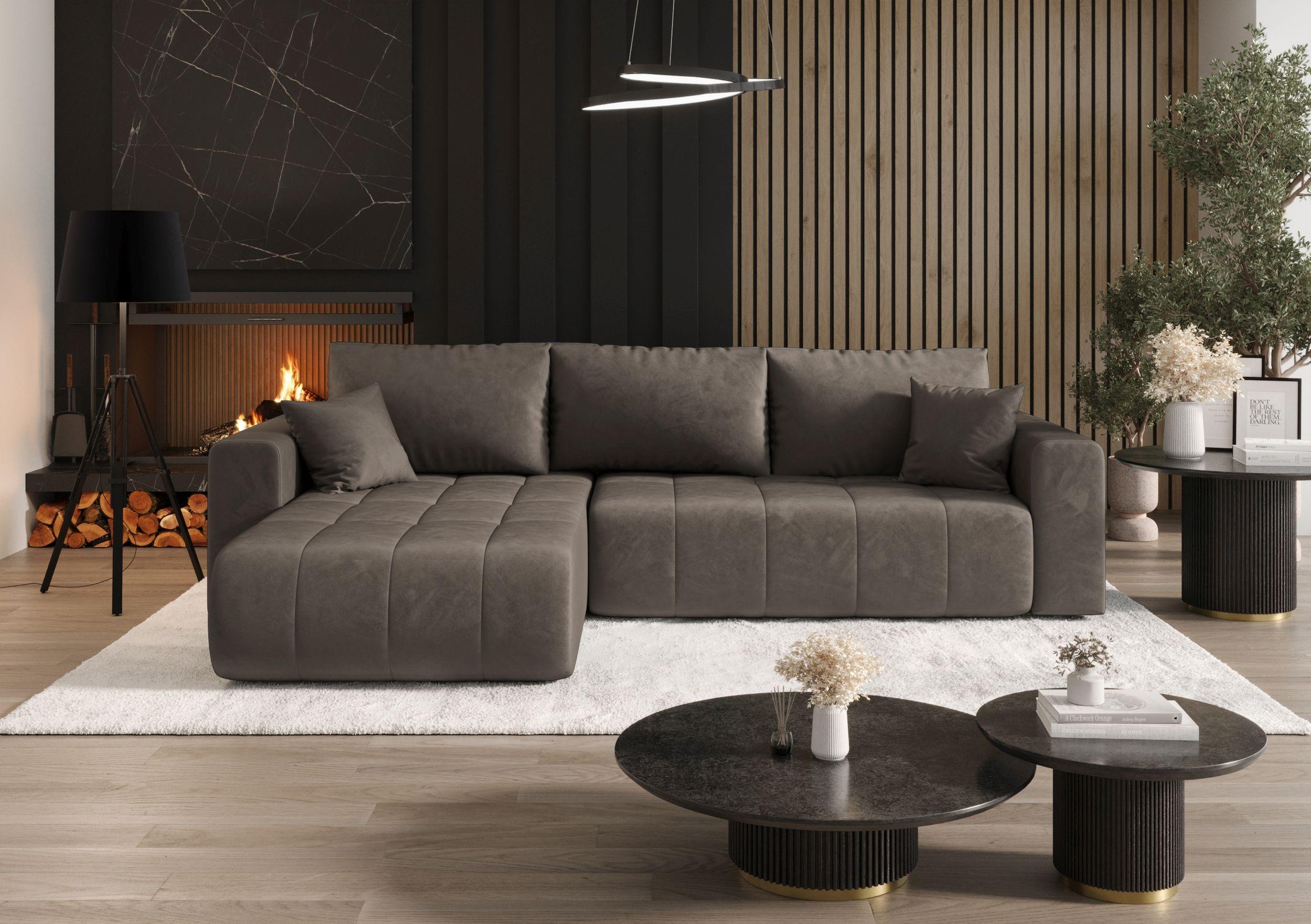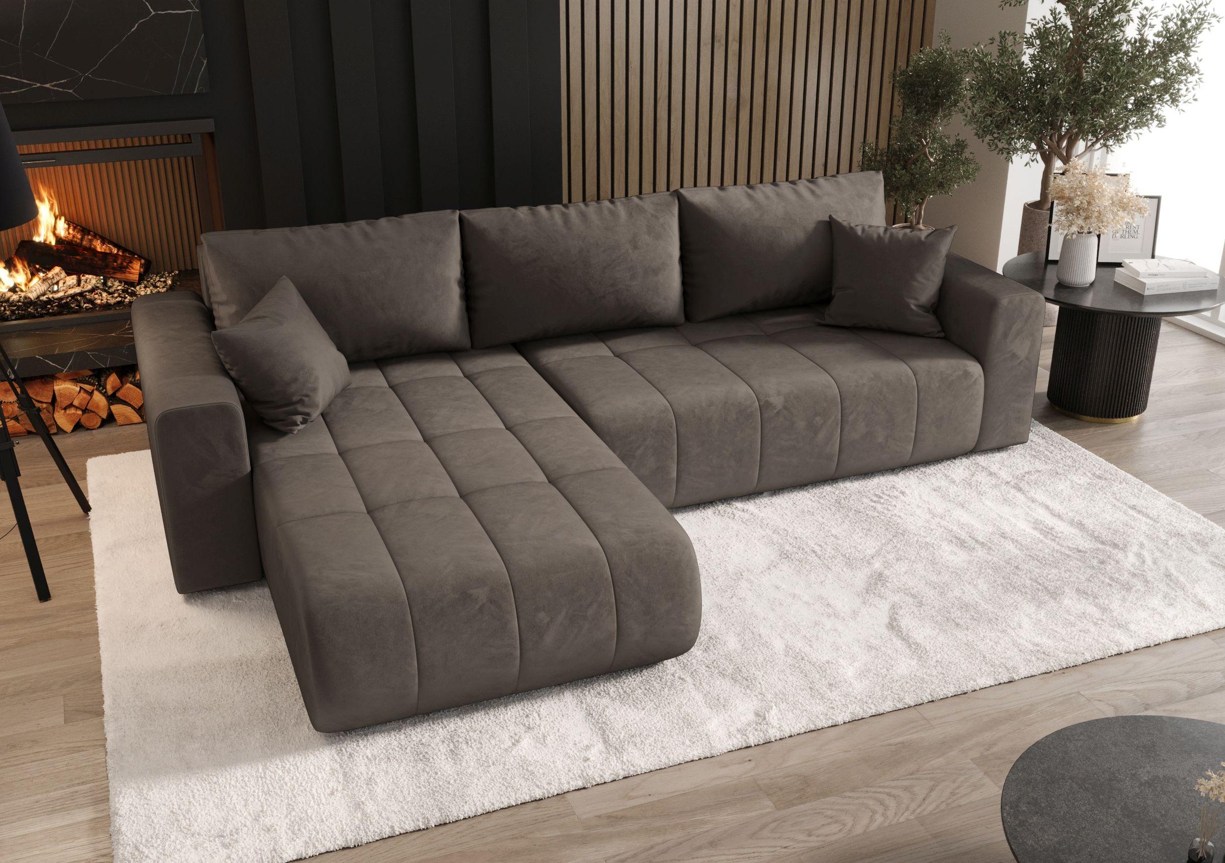 Hoekbank met slaapfunctie MILO Monolith 15 bruin links L-vormige bank met opbergruimte woonkamerbank, slaapbank, bank met opbergruimte