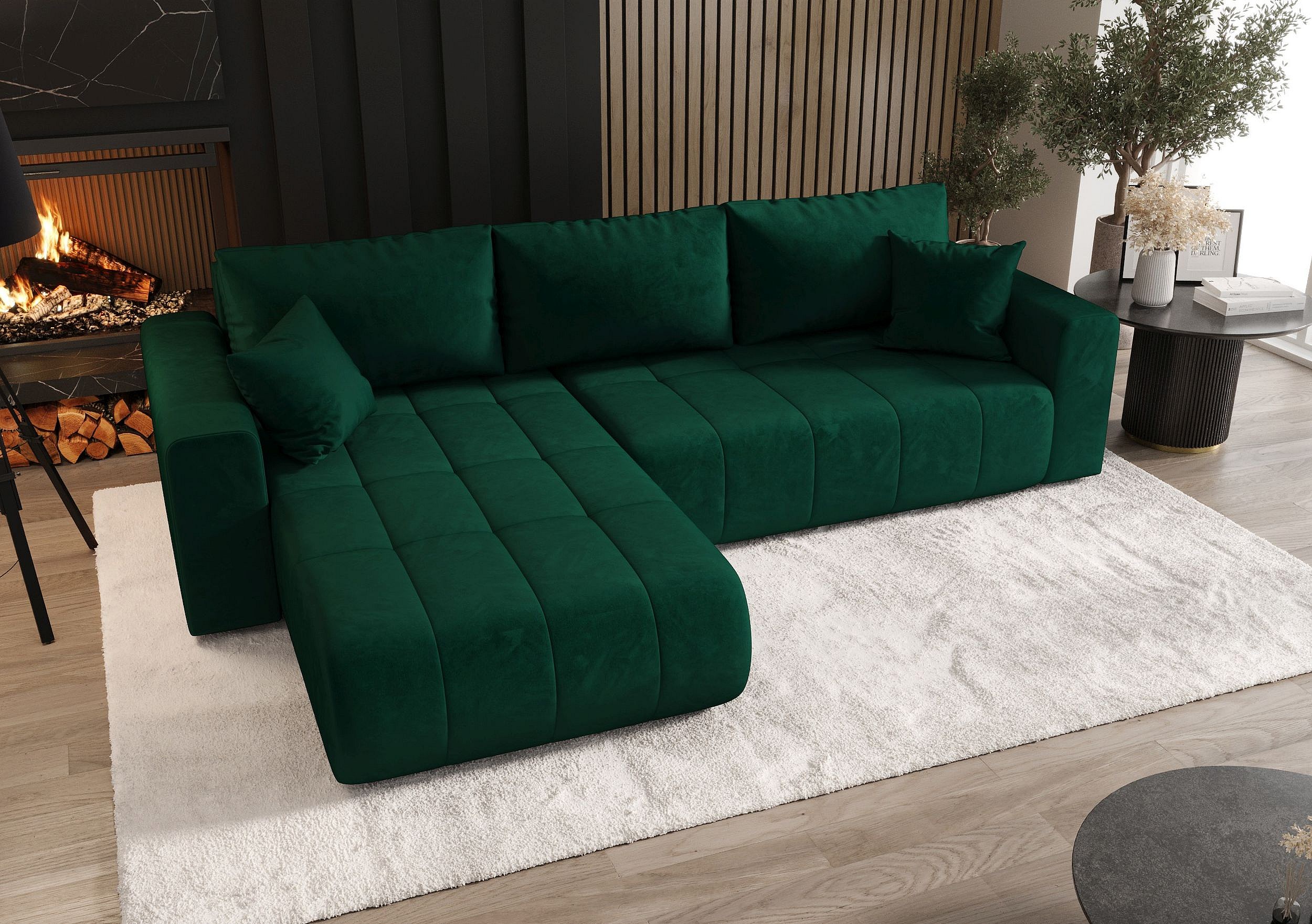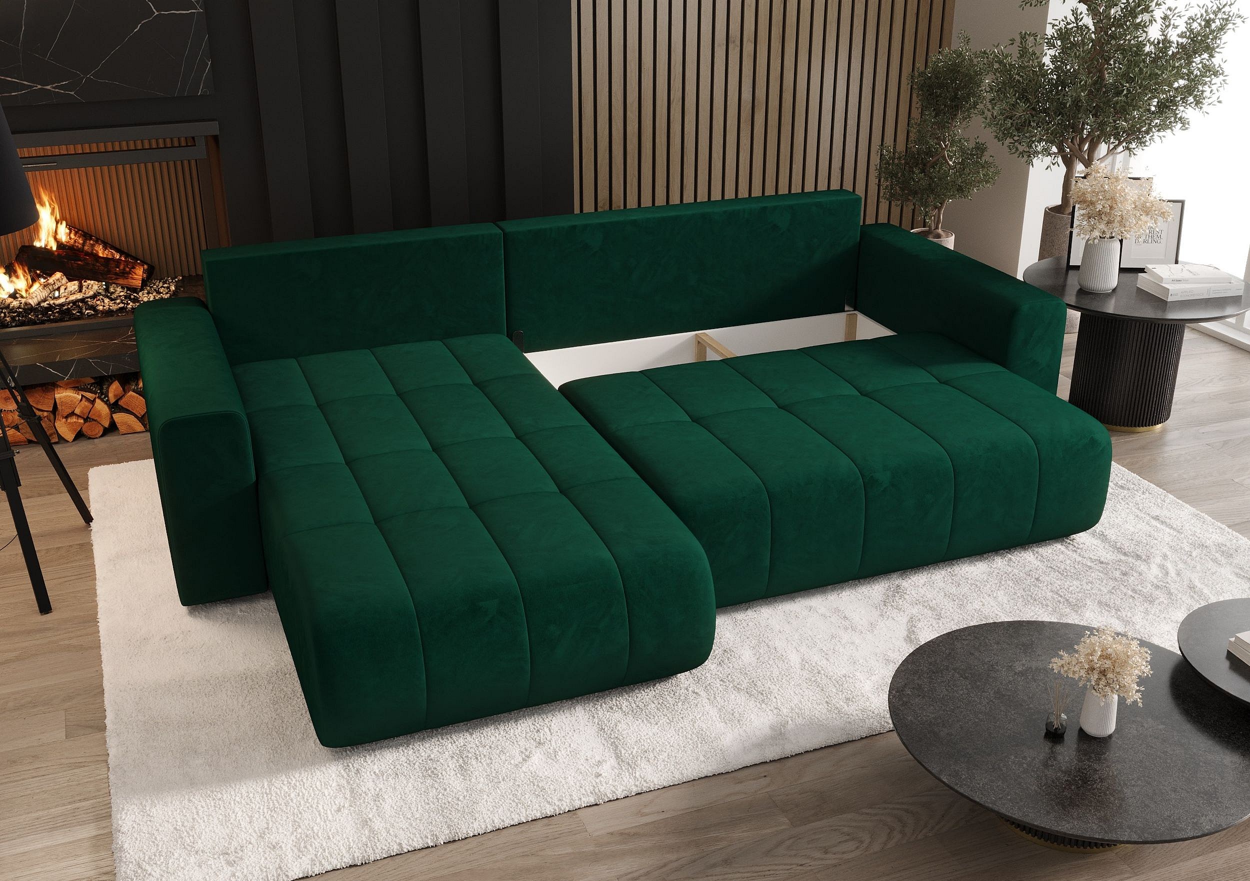 Hoekbank met slaapfunctie MILO Monolith 37 groen links L-vormige bank met opbergruimte woonkamerbank, slaapbank, bank met opbergruimte