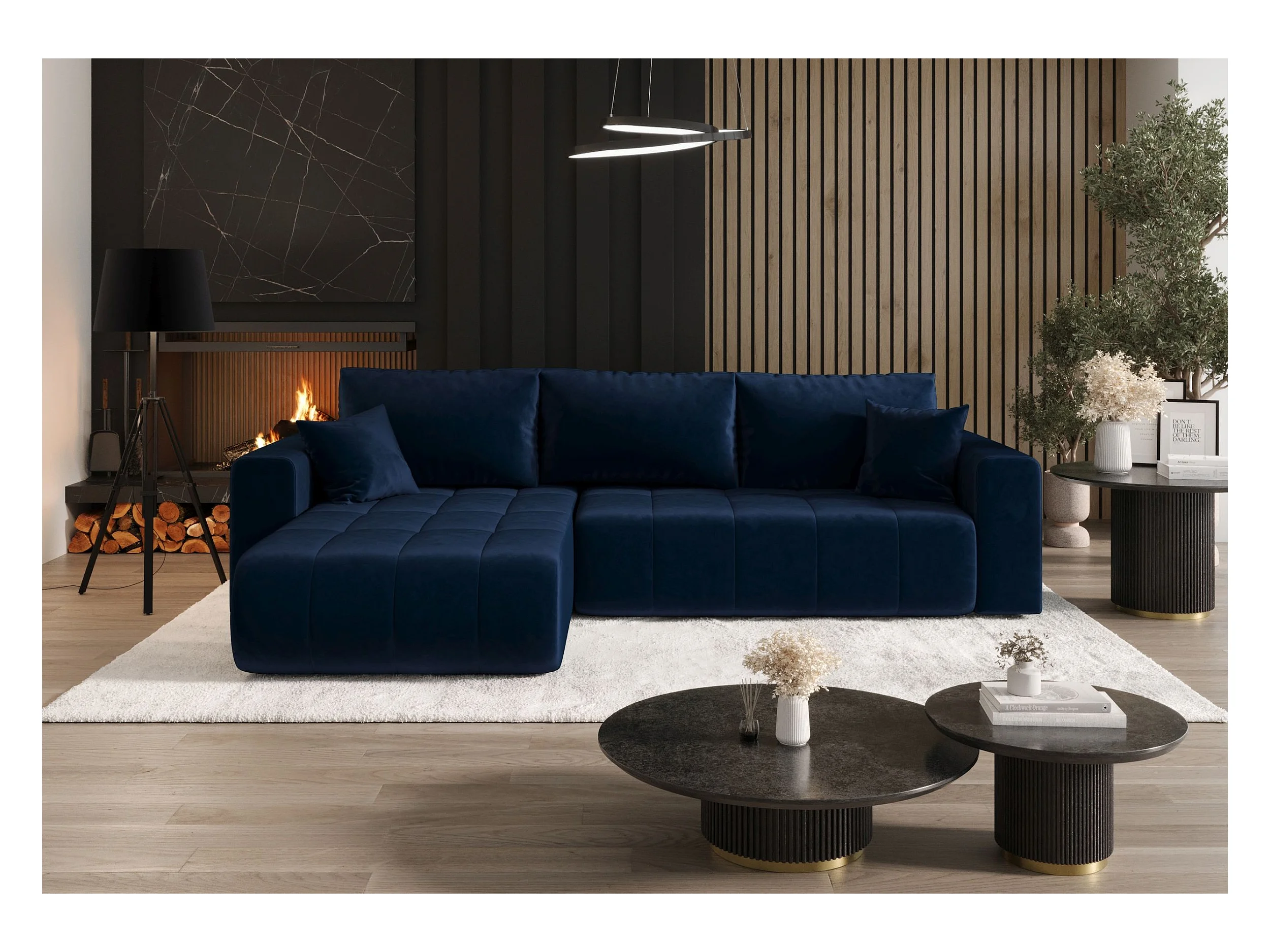 Hoekbank met slaapfunctie MILO Monolith 77 donkerblauw links L-vormige bank met opbergruimte woonkamerbank, slaapbank, bank met opbergruimte