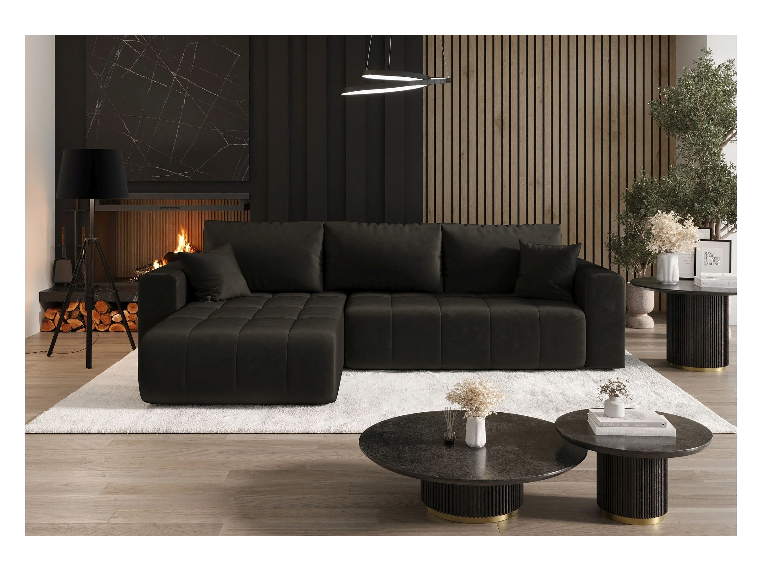 Hoekbank met slaapfunctie MILO Monolith 95 zwart links L-vormige bank met opbergruimte woonkamerbank, slaapbank, bank met opbergruimte