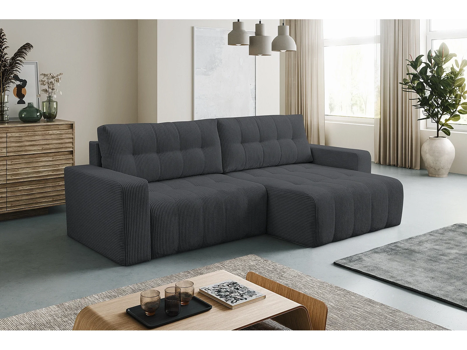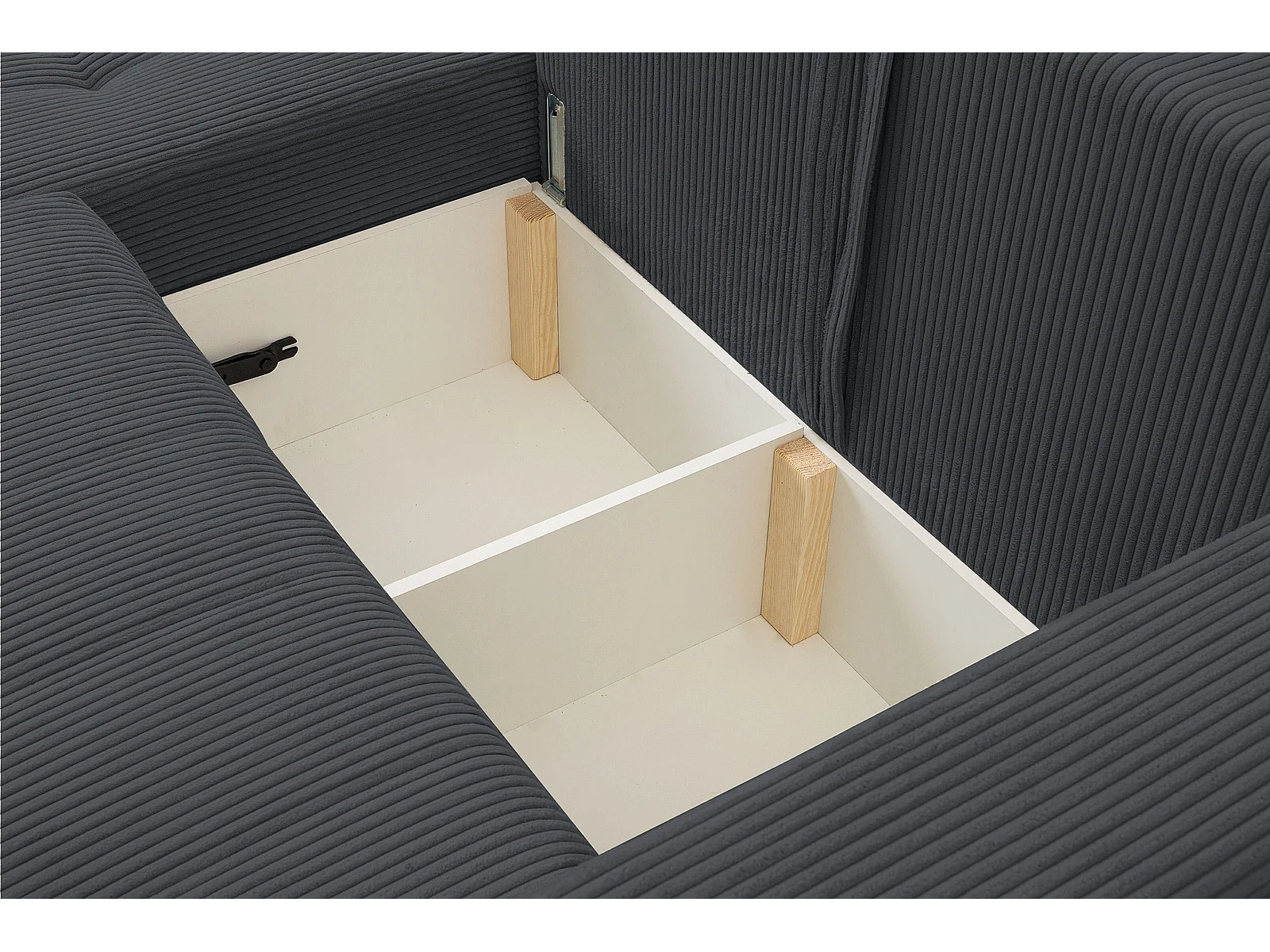 Hoekbank met Slaapfunctie Palermo - Ribfluweel Donkergrijs Poso 34 - Opbergruimte