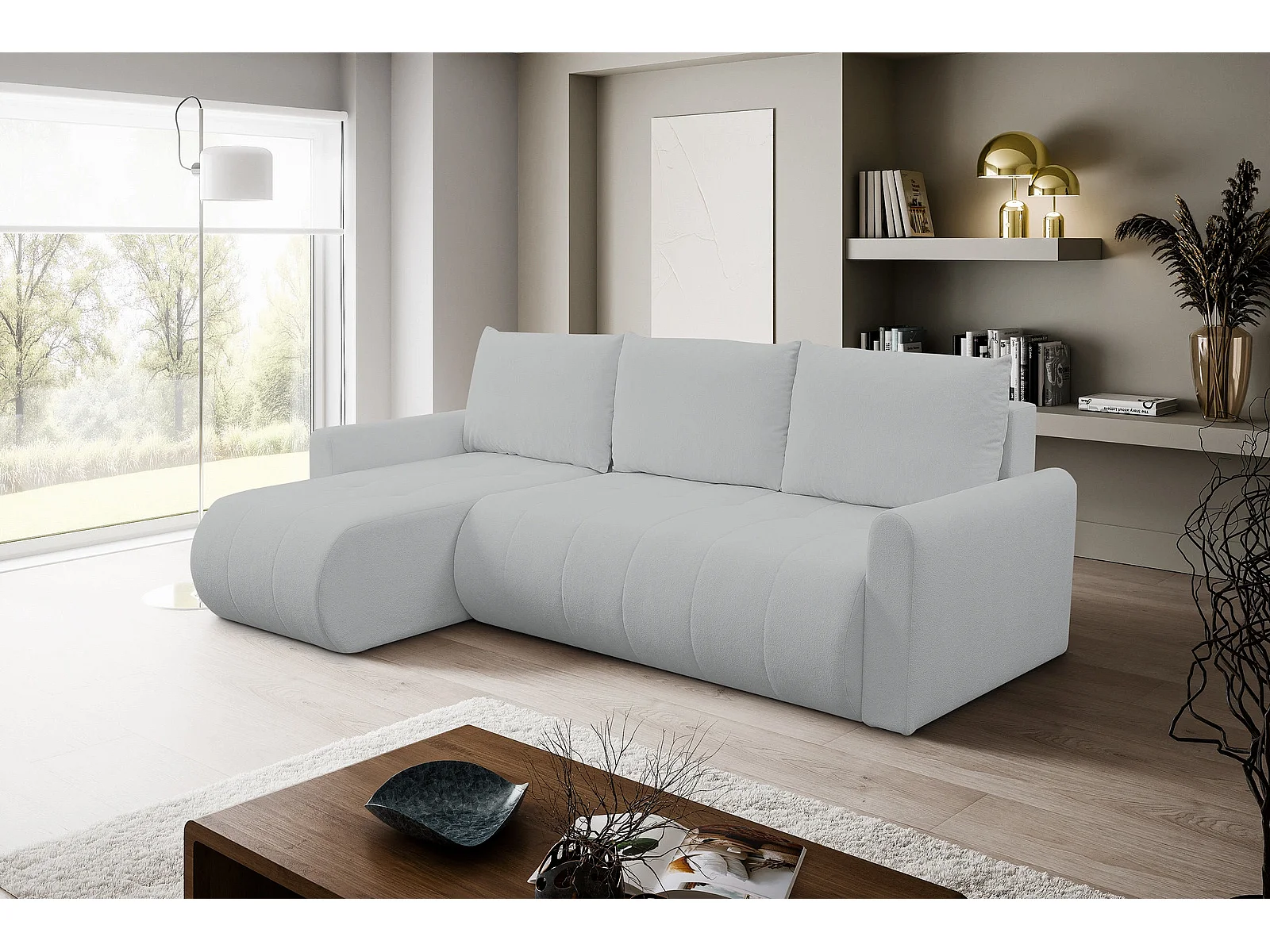 Hoekbank met Slaapfunctie Primo - Geweven Stof Grijs Gerra 65 - Opbergruimte