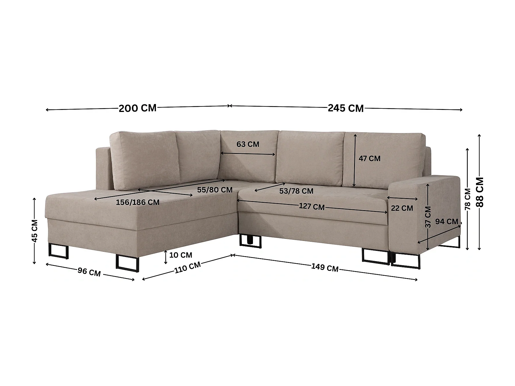 Hoekbank met Slaapfunctie Rechts Trevi - Chenille Beige Wind 05 - Metalen Poten