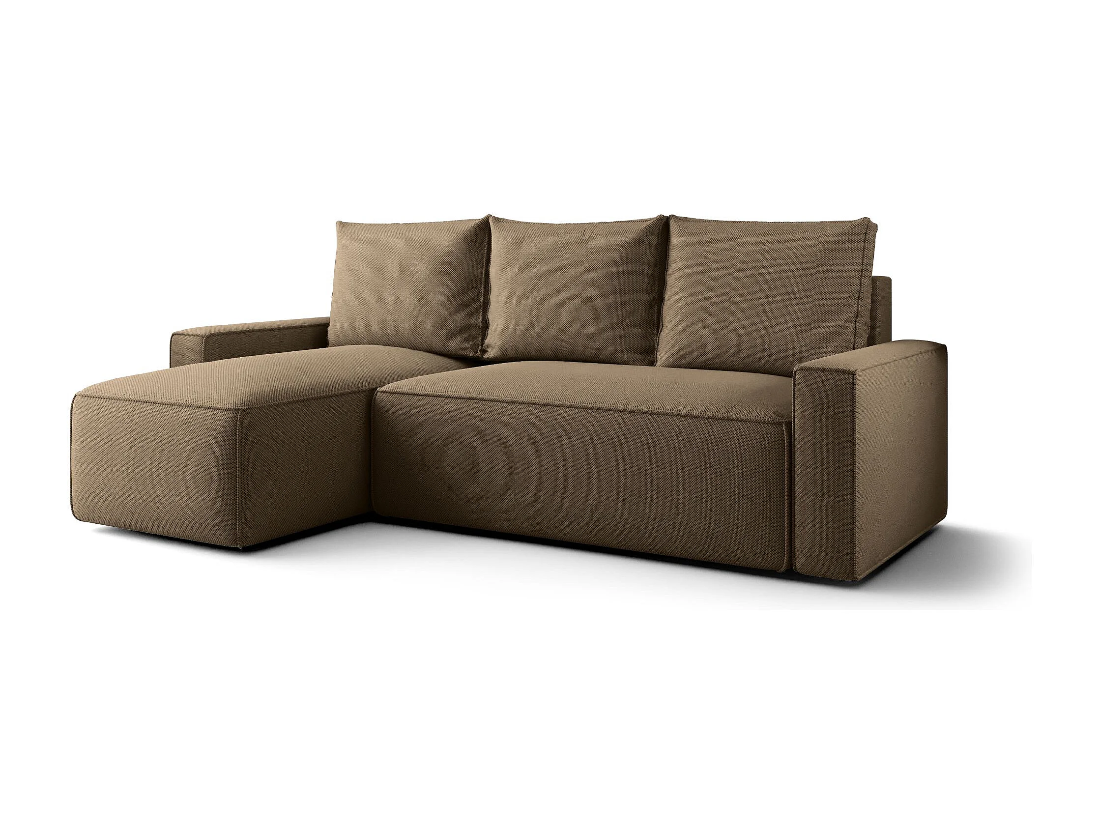 HOEKBANK EMILY met slaapfunctie Poso 02 Lichtbruin Links L-vorm bank met opbergruimte, slaapbank, woonkamerbank