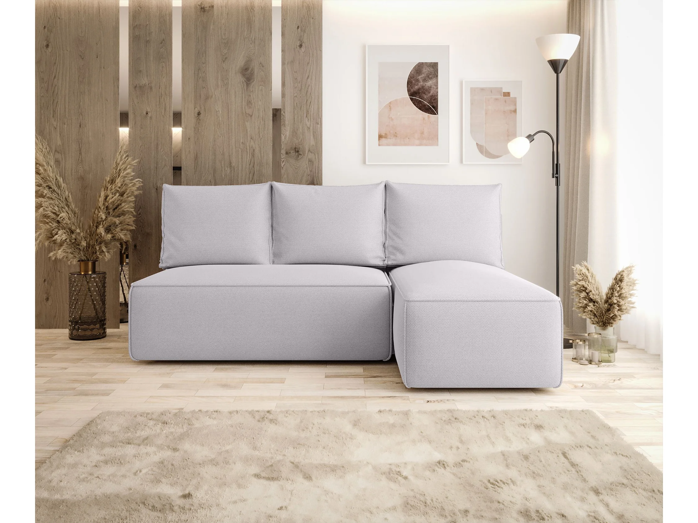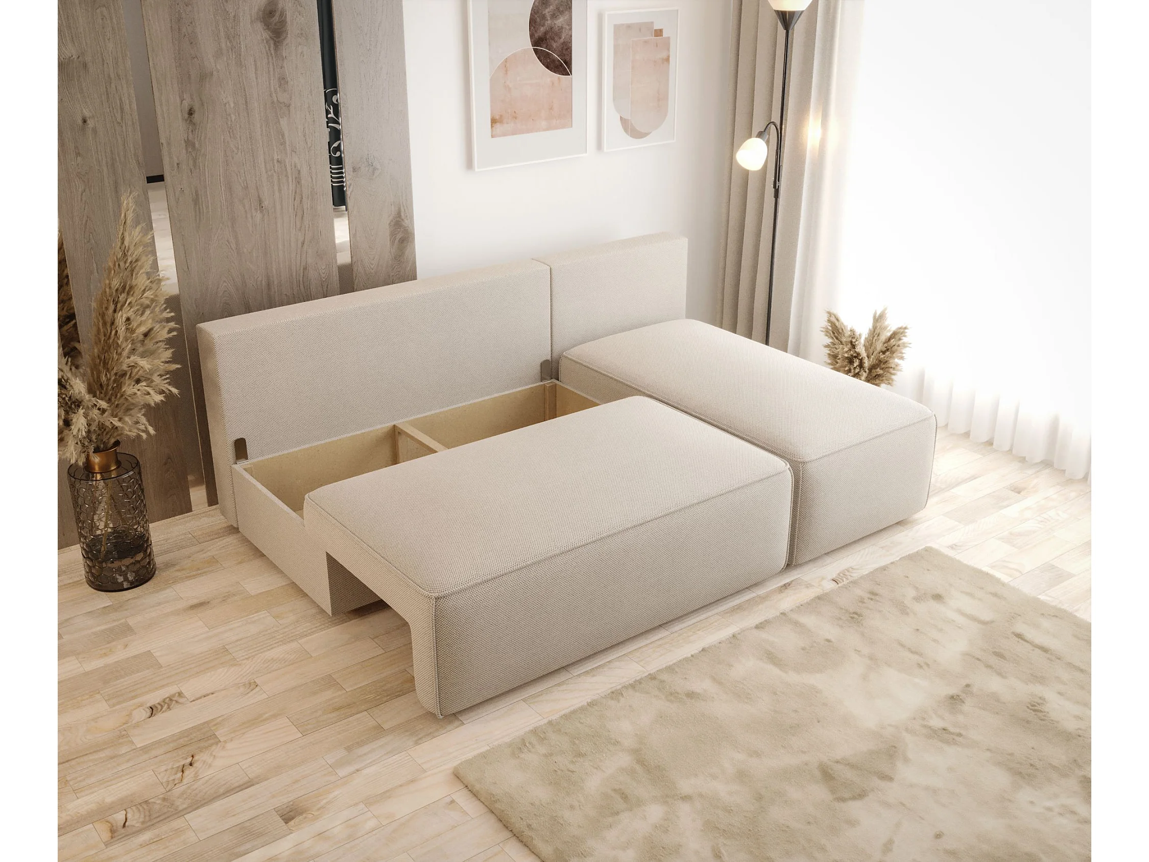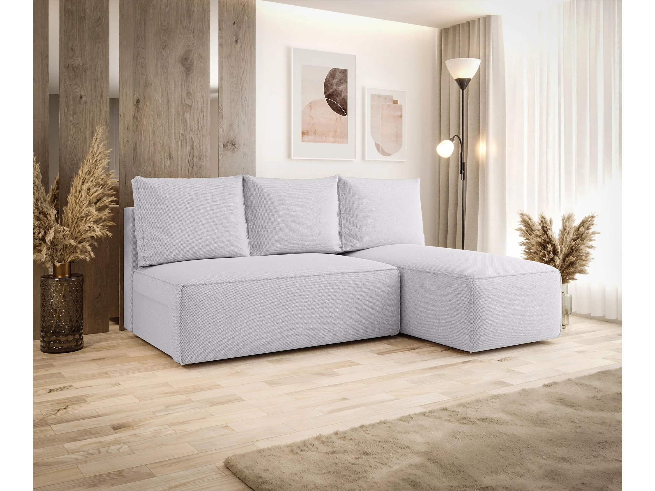 Hoekbank met slaapfunctie SAVIO MINI Curio 80 lichtgrijs rechts L-vormige bank met opbergruimte woonkamerbank, slaapbank, bank met opbergruimte