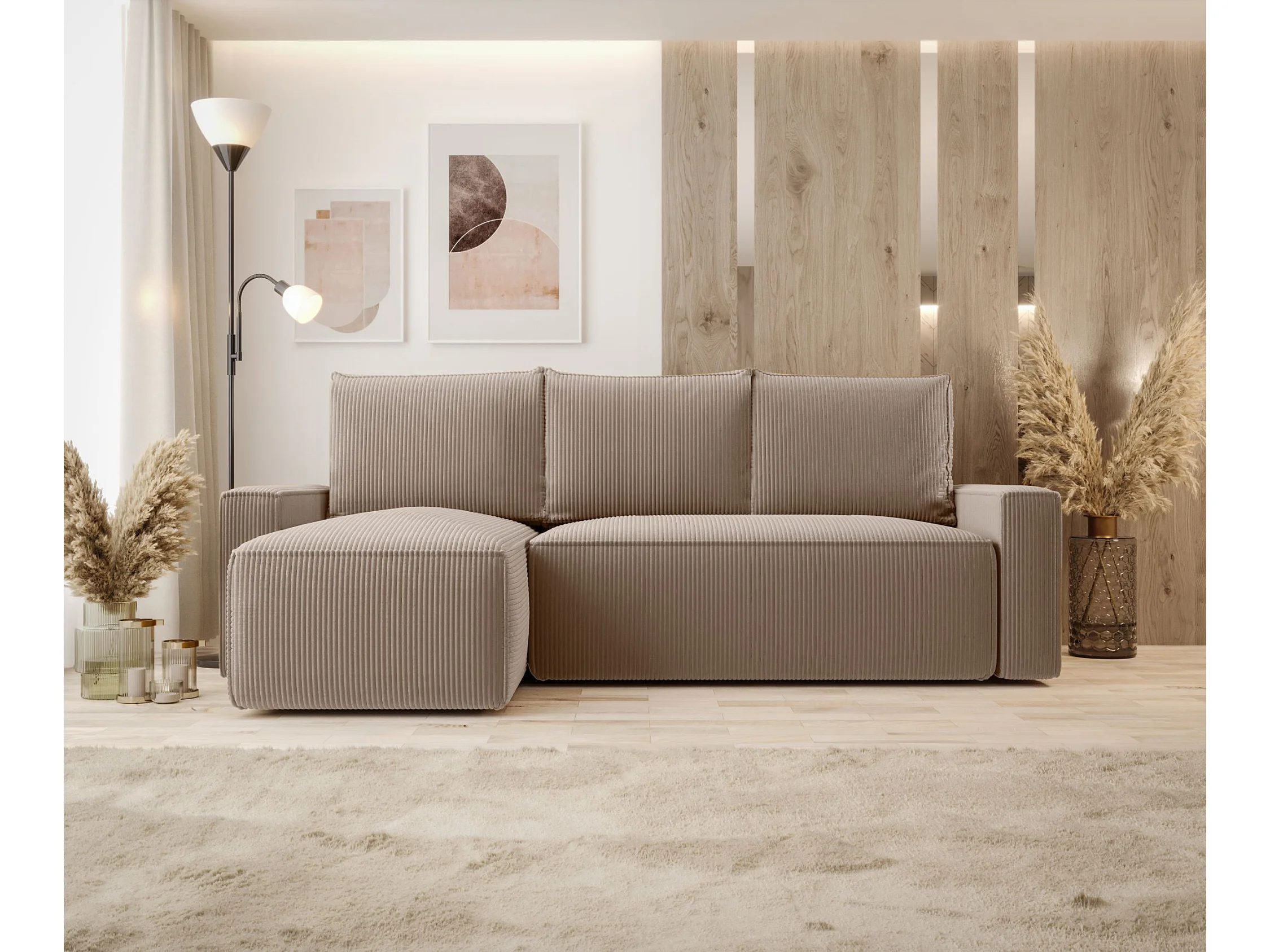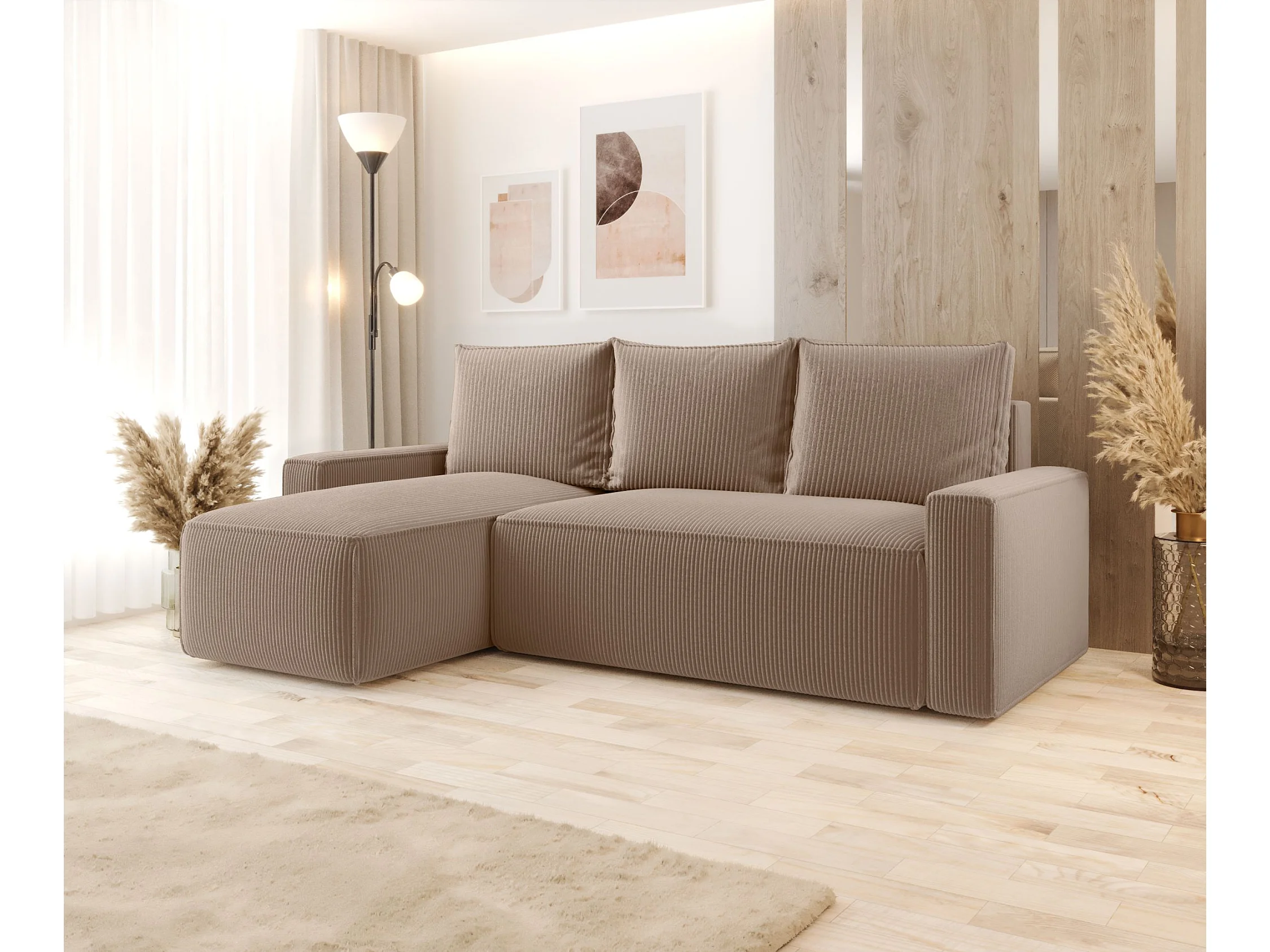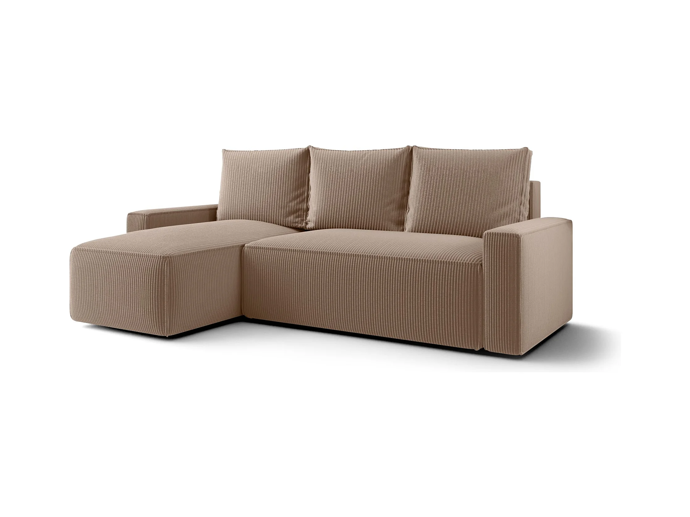 Hoekbank met slaapfunctie SAVIO Poso 02 lichtbruin links L-vormige bank met opbergruimte woonkamerbank, slaapbank, bank met opbergruimte