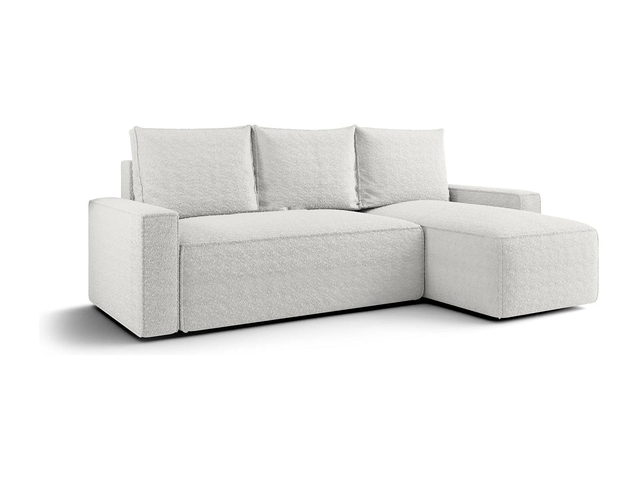 Bohoo L-vormige hoekbank met slaapbank, Raven stof, Ecru, Rechts