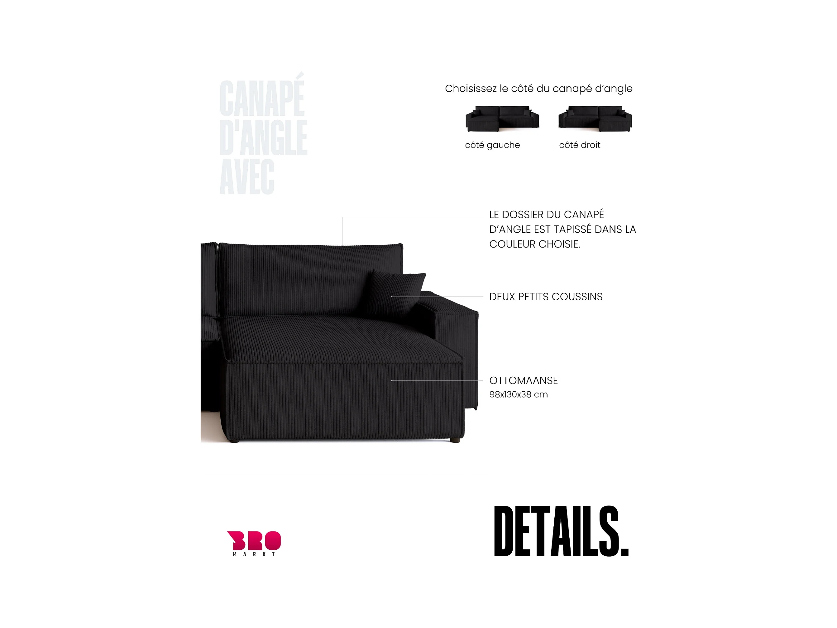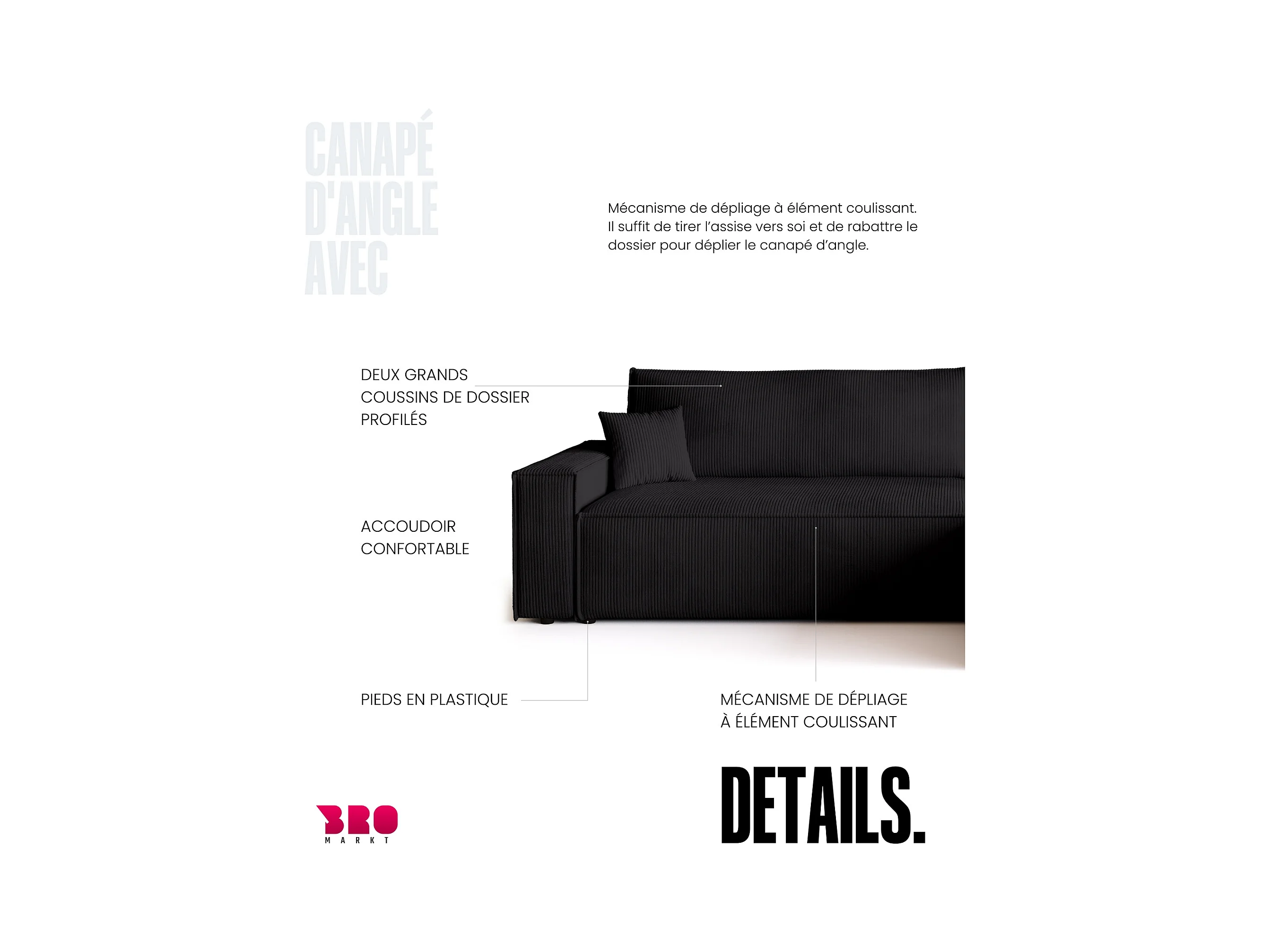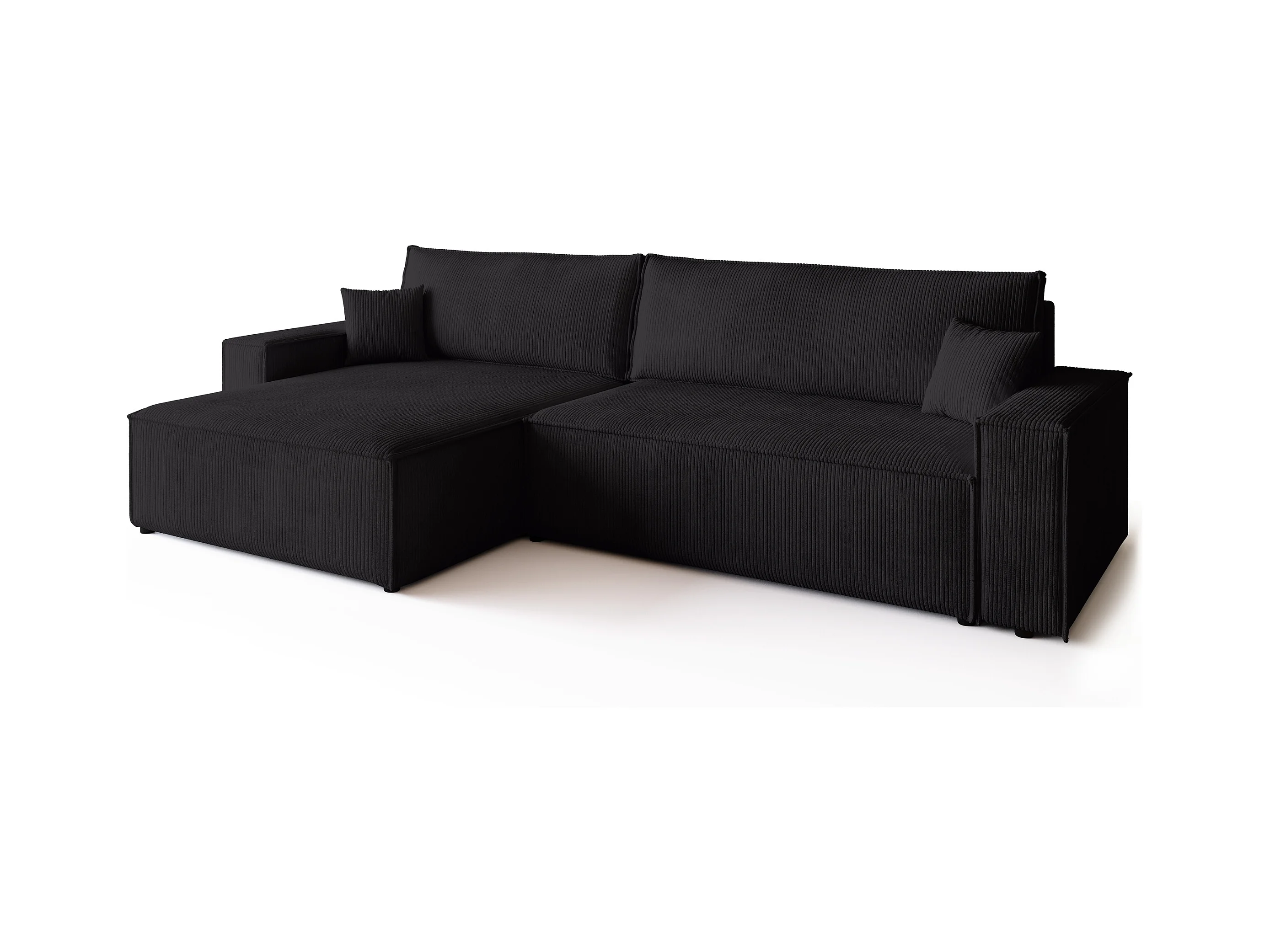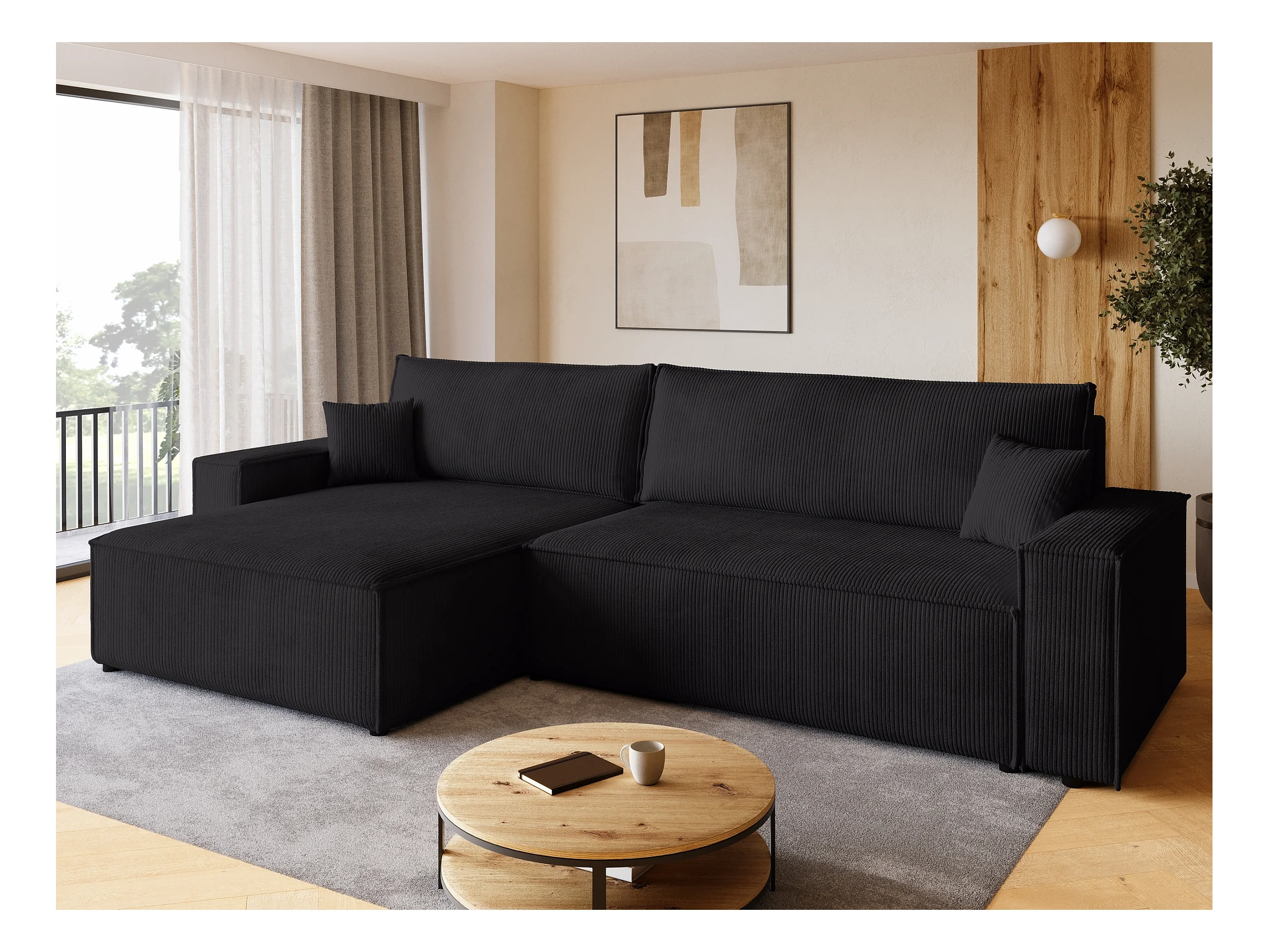 Hoekbankbed in ribfluweel JIMMY Zwart